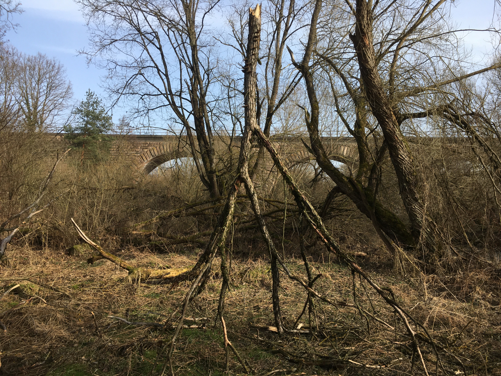 In meinem Rücken befand sich eine alte Weide. An deren Rücken befanden sich zwei Leichen. Sie waren in einen Spalt im Holz geklemmt worden.