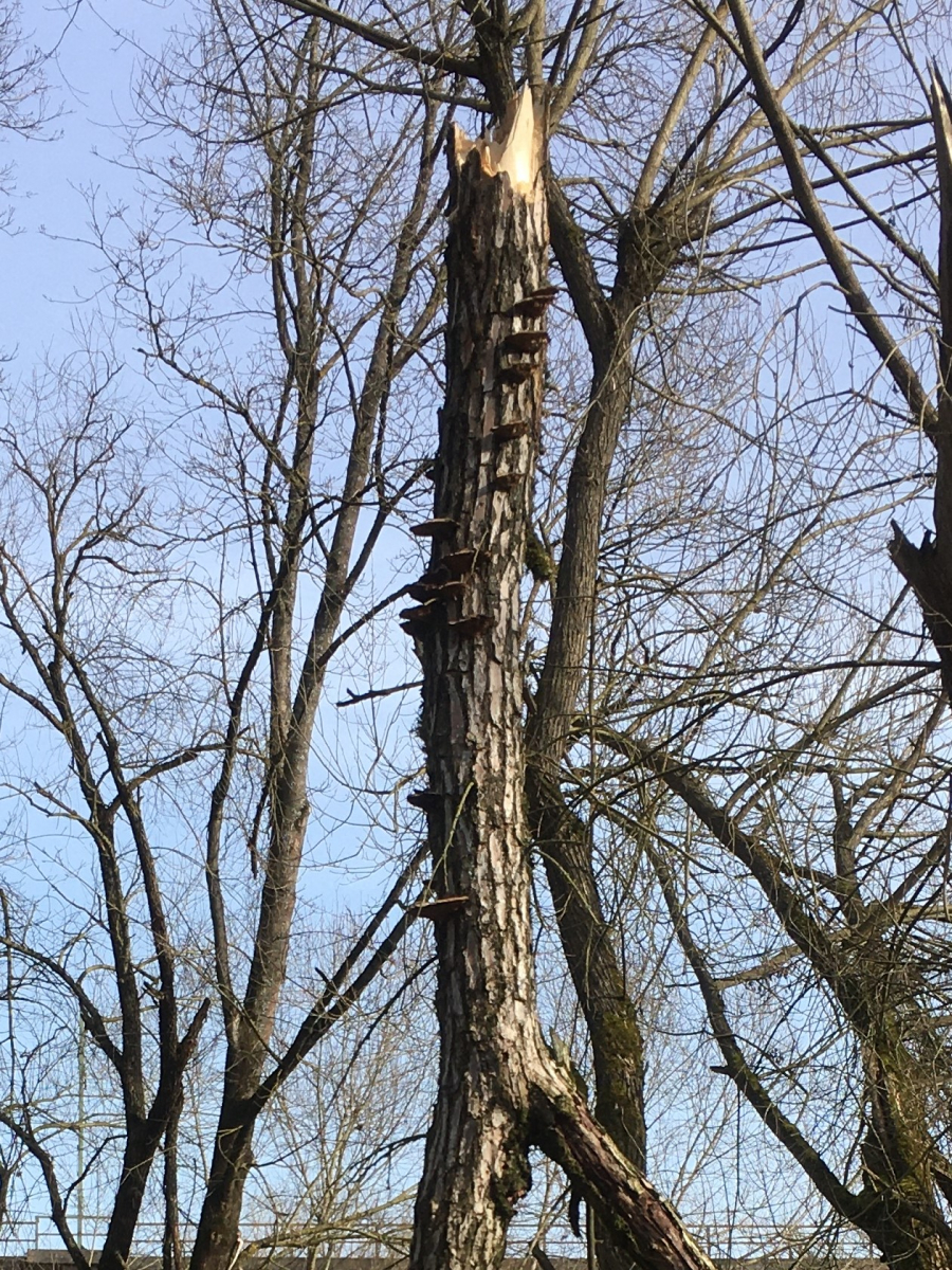 Ich war jedenfalls sehr erstaunt dass die Baumkrone am Anfang nach dem Abbrechen auf dem Kopf stehen geblieben ist. Noch mehr war ich dann erstaunt als ich gesehen hab dass sie vermutlich schon lange so steht. Die Mechanik dahinter dass das genau so klappt muss man sich mal vorstellen, das Teil ist locker 5x5m groß.