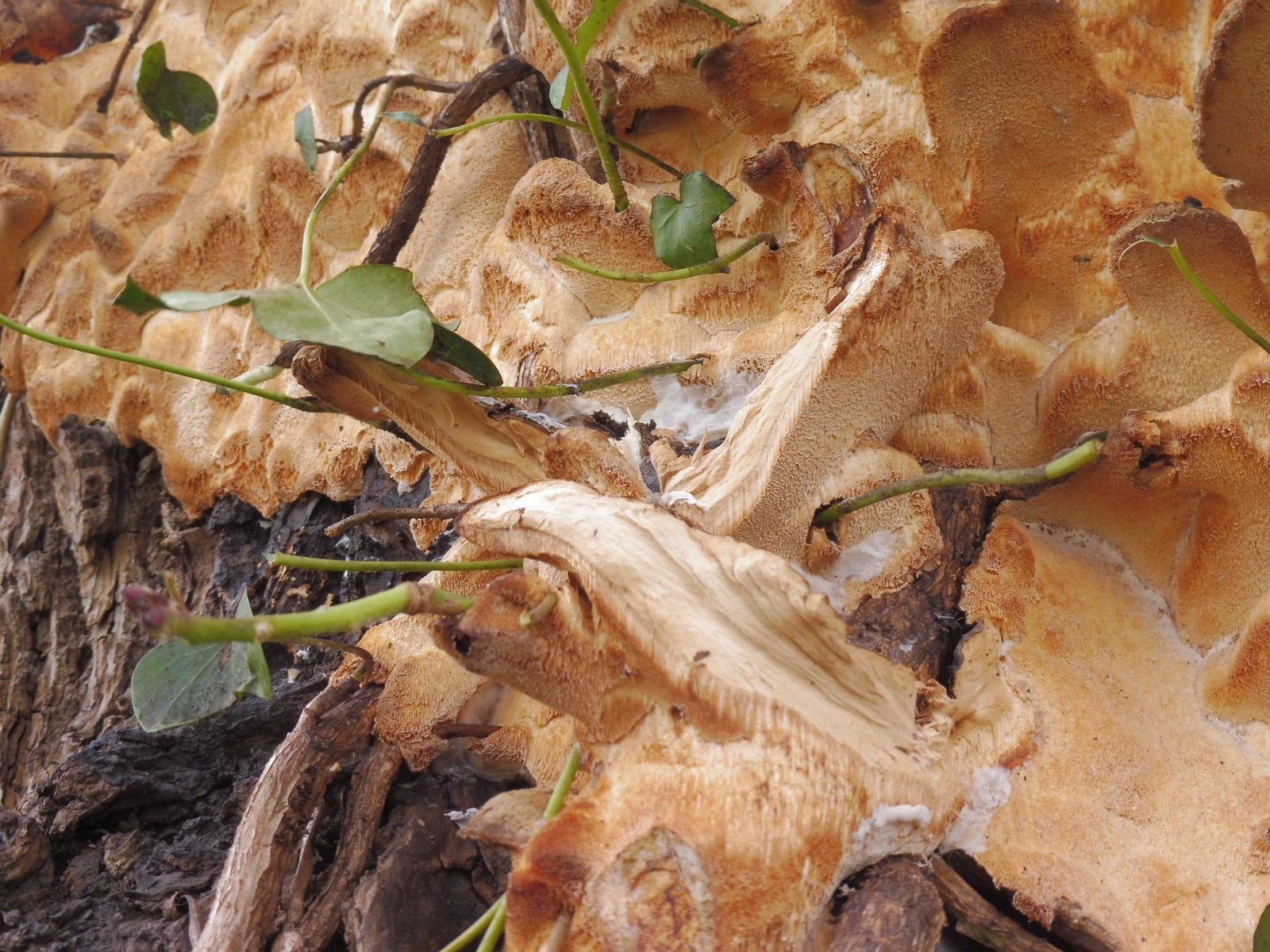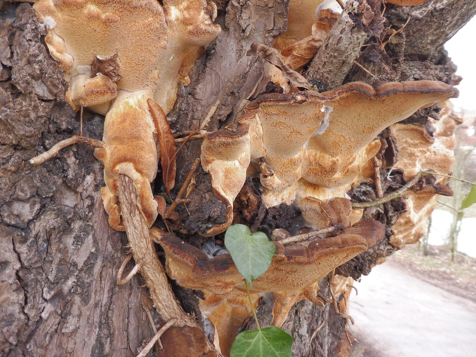 ich habe die Art schon sehr oft in diesem flächigen Wachstum gesehen, allerdings in aller Regel an liegenden Stämmen. Aber das Wuchsbild ist genau dasselbe, für mich auch ein Hauptunterschied zu Ischonderma benzoinum. Die Art macht das nämlich nie, die Porenschicht resupinat über weite Strecken übers Substrat laufen zu lassen.