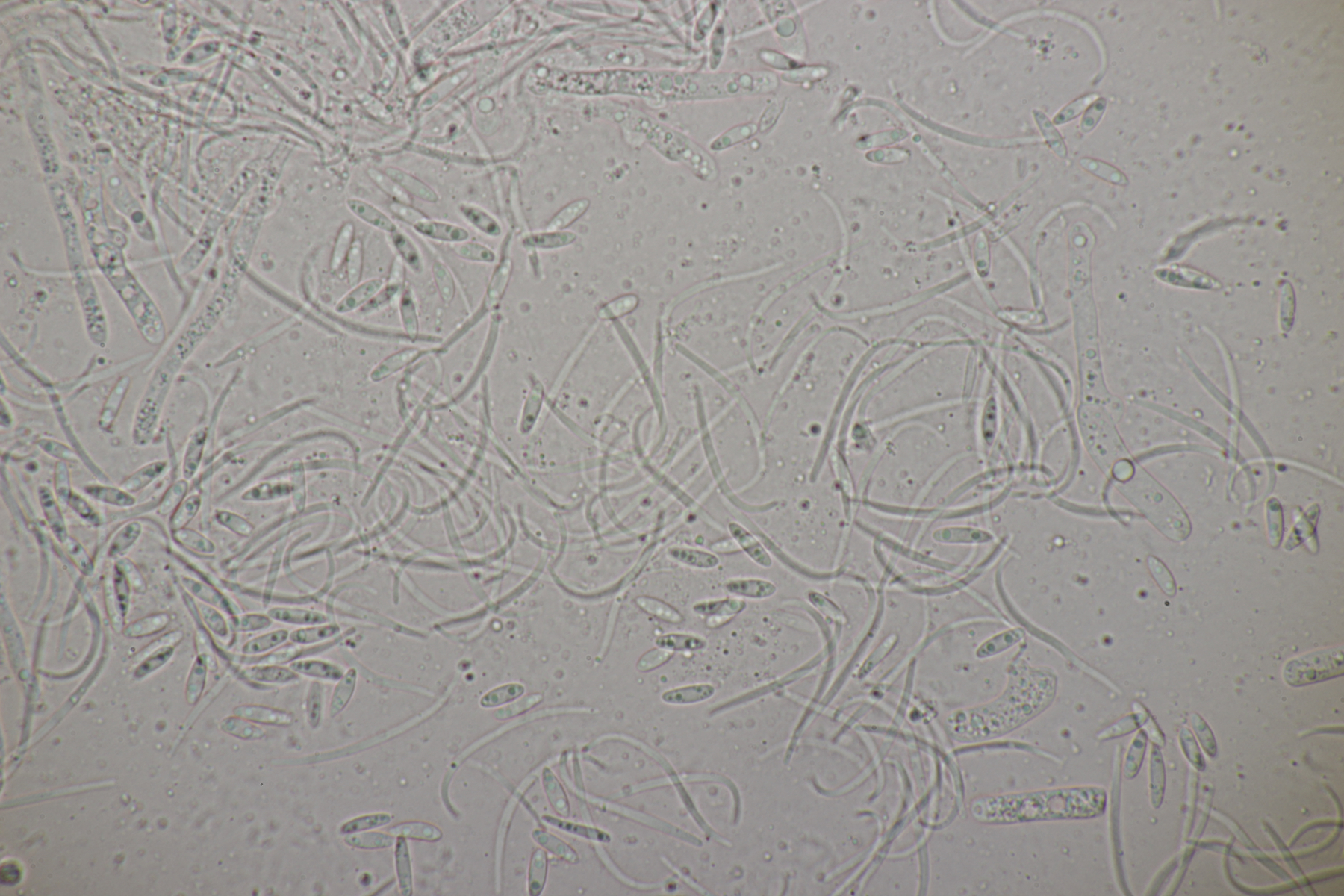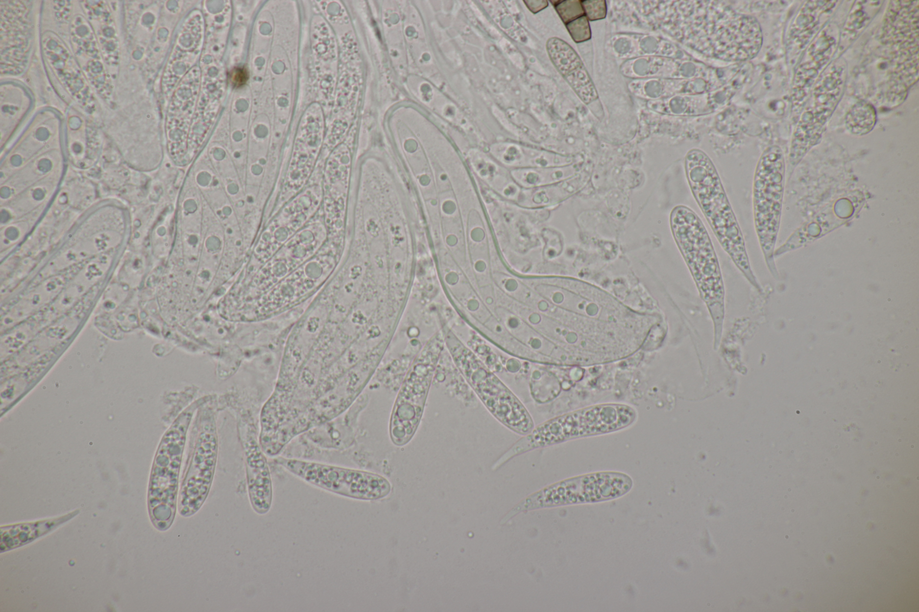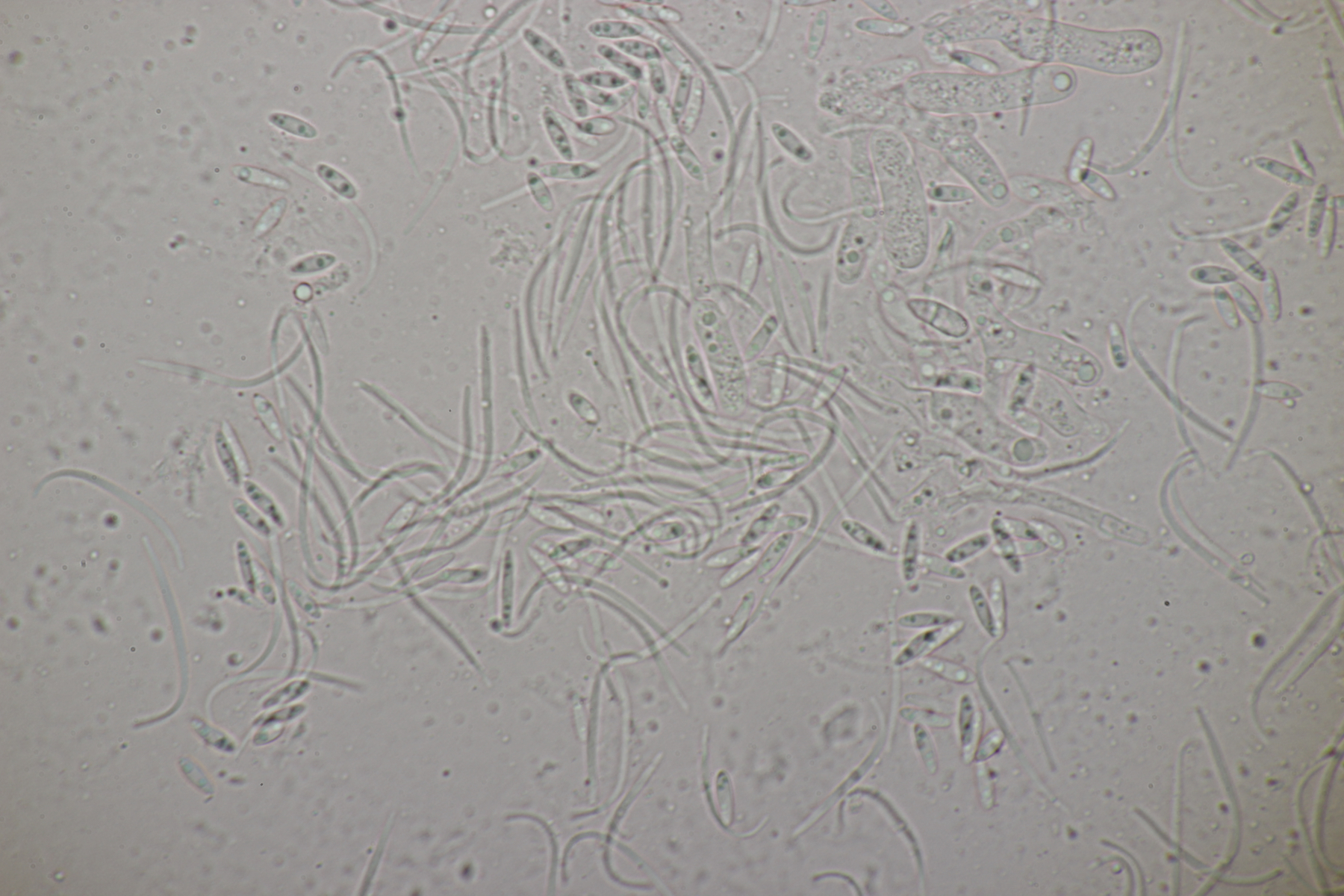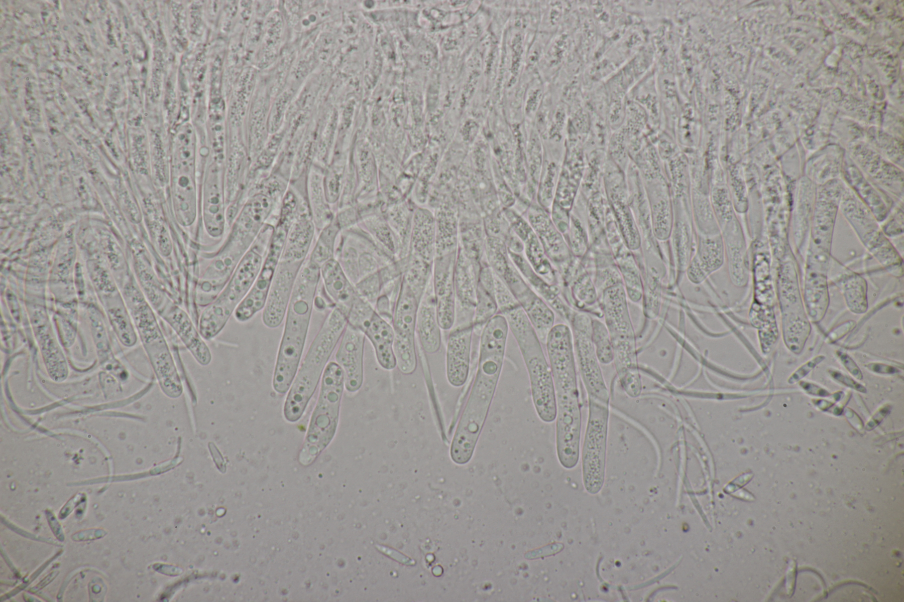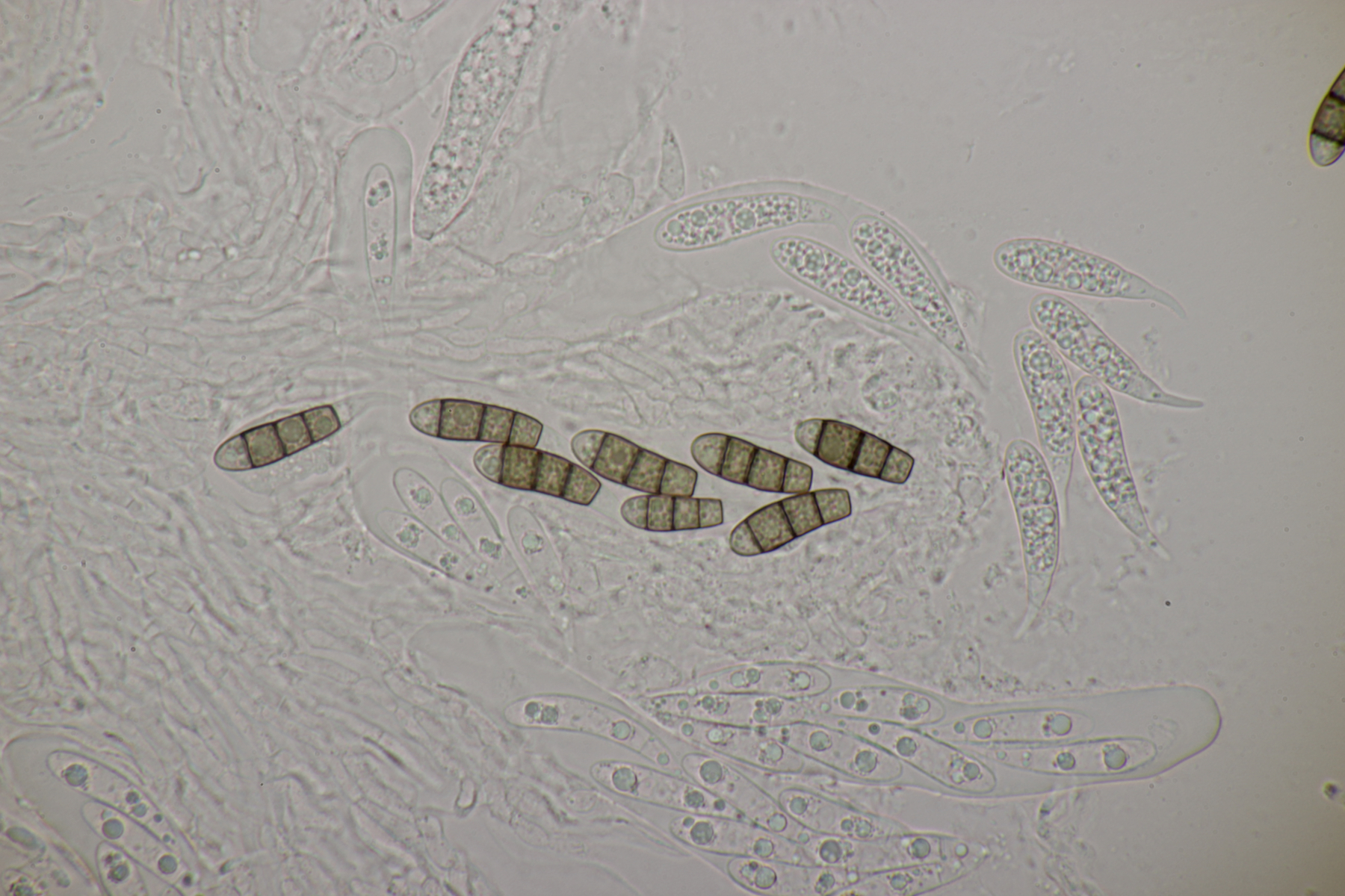 ich habe mal ein paar Sporen gemessen und komme auf (22-25) µm x (6-7) µm, was sich erstmal nicht groß von deinem Fund unterscheidet. Björn Wergen gibt in seinem Buch aber für R. unicaudata 21,5-28 x 6-7 an. Da scheint keine Unterscheidung möglich zu sein. Zu R. massalongii konnte ich jetzt leider im Internet wenig bis gar nichts finden. Kann es sein, daß man die Arten evtl. über das Substrat trennt? R. unicaudata ist bei Björn und Ellis & Ellis explizit für Clematis angegeben.