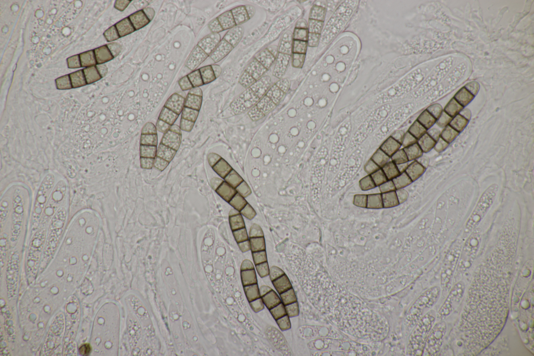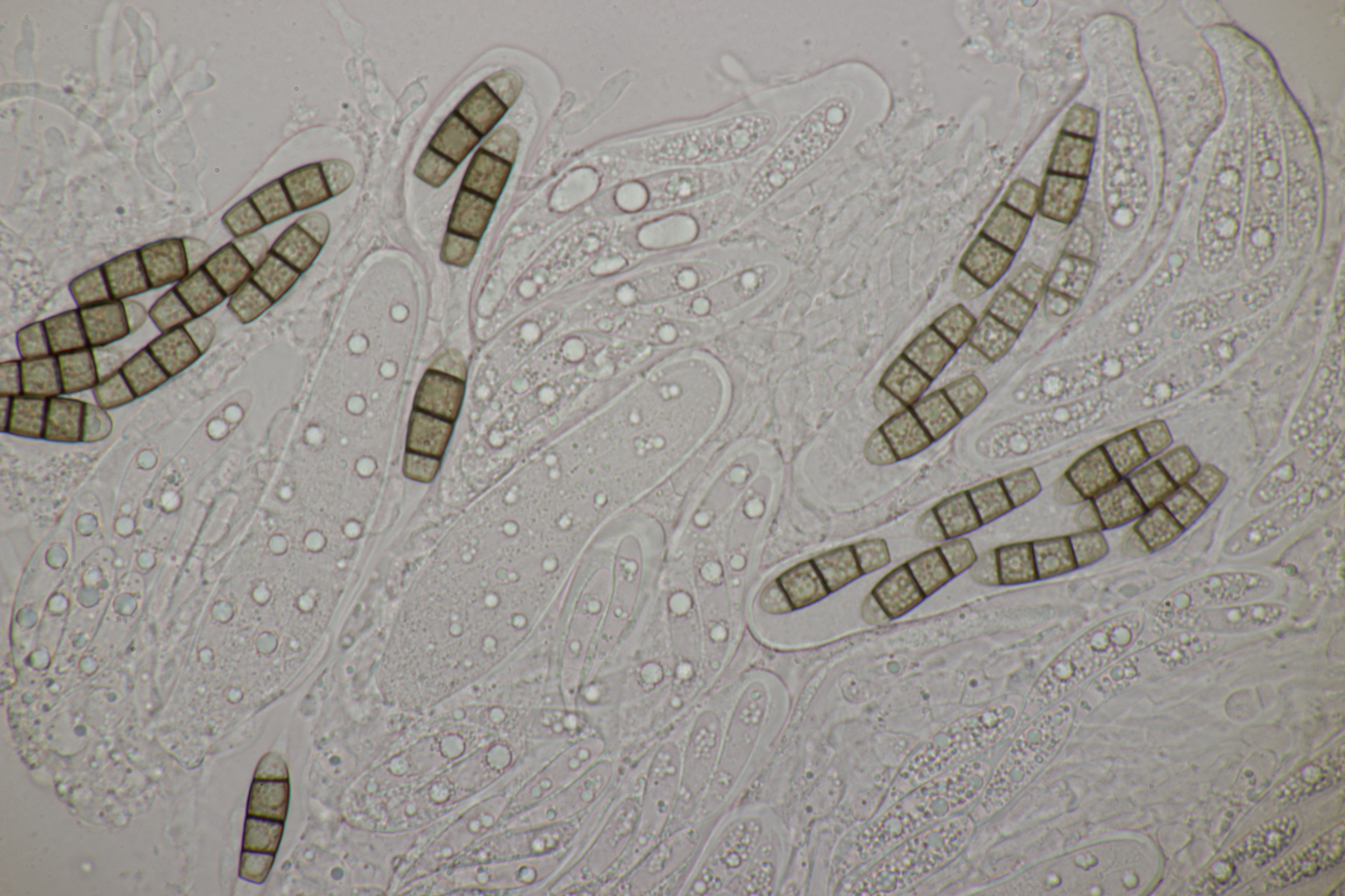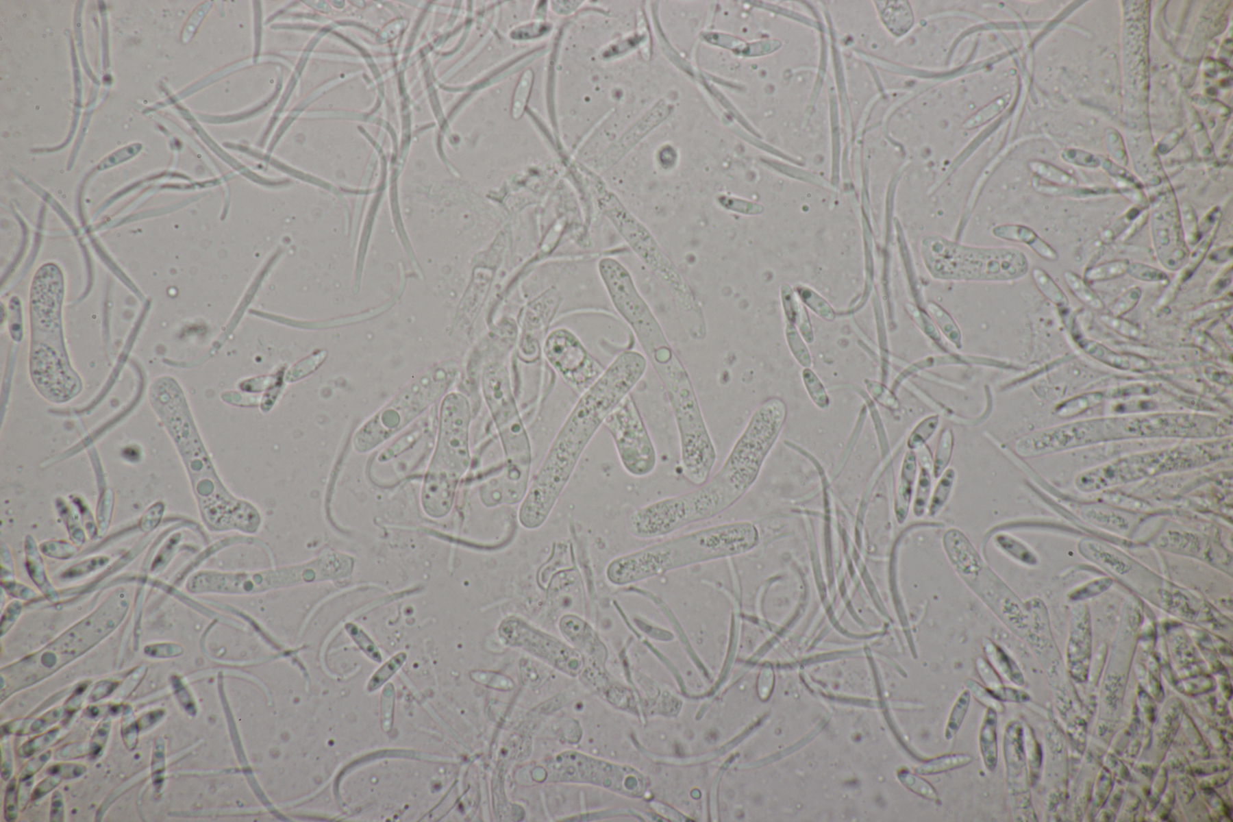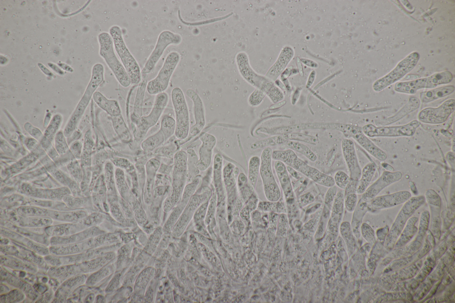 ich habe mal ein paar Sporen gemessen und komme auf (22-25) µm x (6-7) µm, was sich erstmal nicht groß von deinem Fund unterscheidet. Björn Wergen gibt in seinem Buch aber für R. unicaudata 21,5-28 x 6-7 an. Da scheint keine Unterscheidung möglich zu sein. Zu R. massalongii konnte ich jetzt leider im Internet wenig bis gar nichts finden. Kann es sein, daß man die Arten evtl. über das Substrat trennt? R. unicaudata ist bei Björn und Ellis & Ellis explizit für Clematis angegeben.