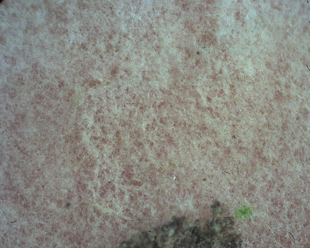 Die optische Unterscheidung von S. austriaca ist nur möglich, wenn die Exemplare in optimalem Zustand sind. Da die Fruchtkörper fast immer im Moos stehen, sind die Haare aber oft so feucht und angapppt, dass es sogar schwierig wird schöne Präparate zu machen. Bei dem nächsten Bild ist es mir mal optimal gelungen aber leider nur mit einer 1,2 megapixel Einsteckkamera in 640 x 480 Pixel.
