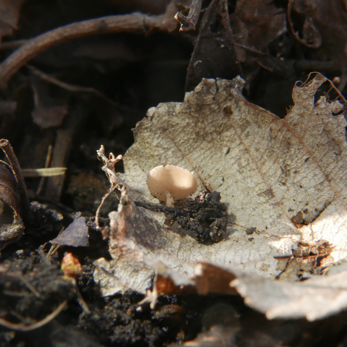 Vielleicht habt Ihr ja eine Idee dazu? Dort wachsen hauptsächlich Erlen. dann eine Eiche, ein bisschen Hasel und Holler. Allerdings sahen die Überreste von dem, auf was das Pilzchen wuchs, schon wie Teile von Erlenkätzchen aus.