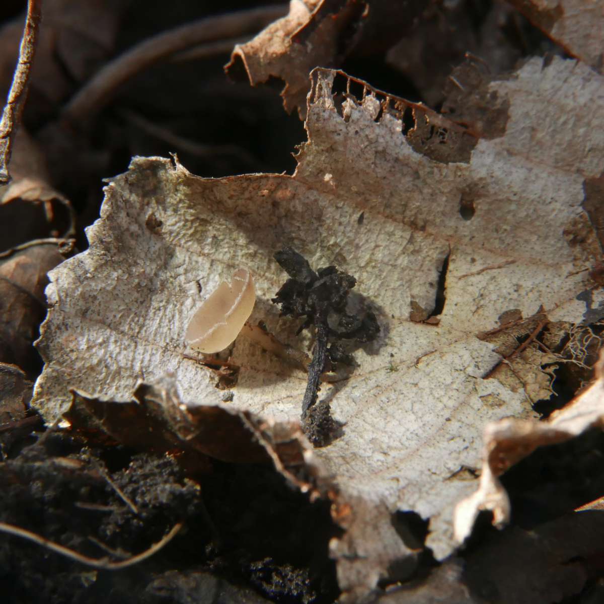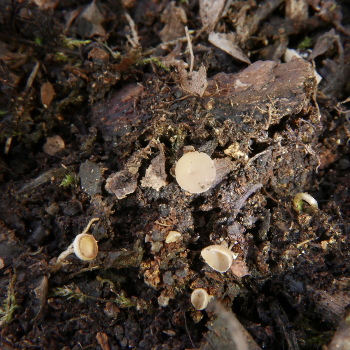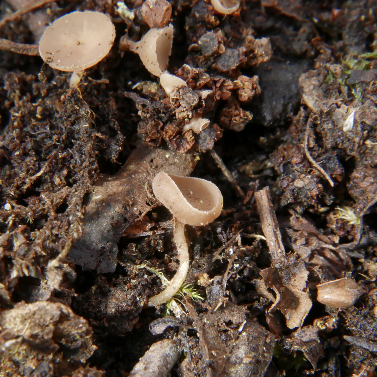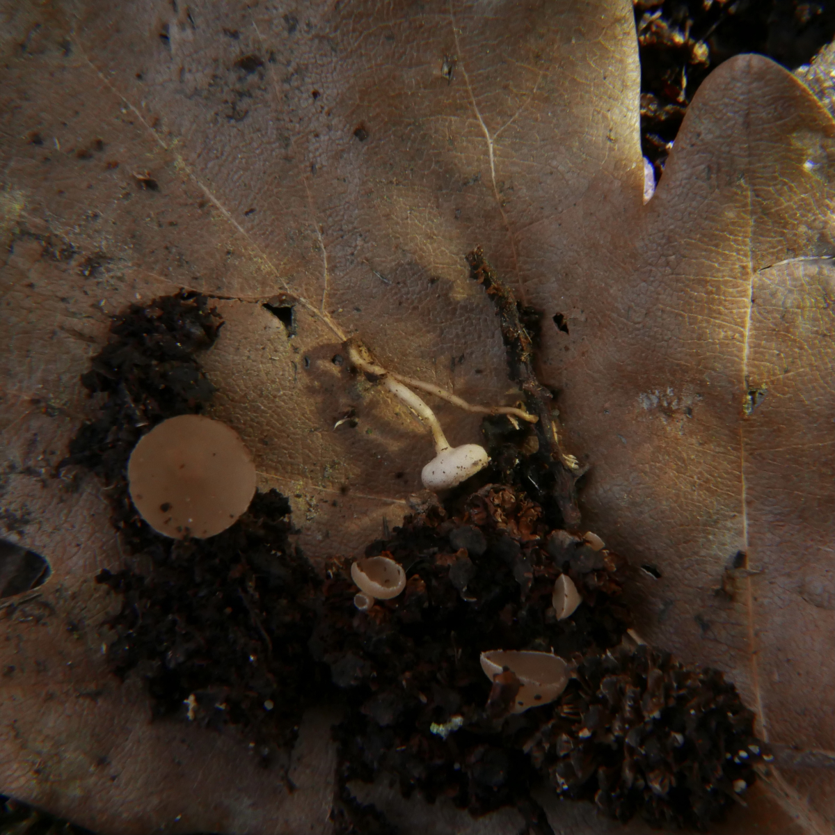 Allerdings war ein Becherlein dabei, das anders aussah. Die Becheraußenseite war heller und mehr opak als bei den Erlenkätzchen-Bechern. Der Becherrand war irgendwie dunkler bei den C. amentacea.