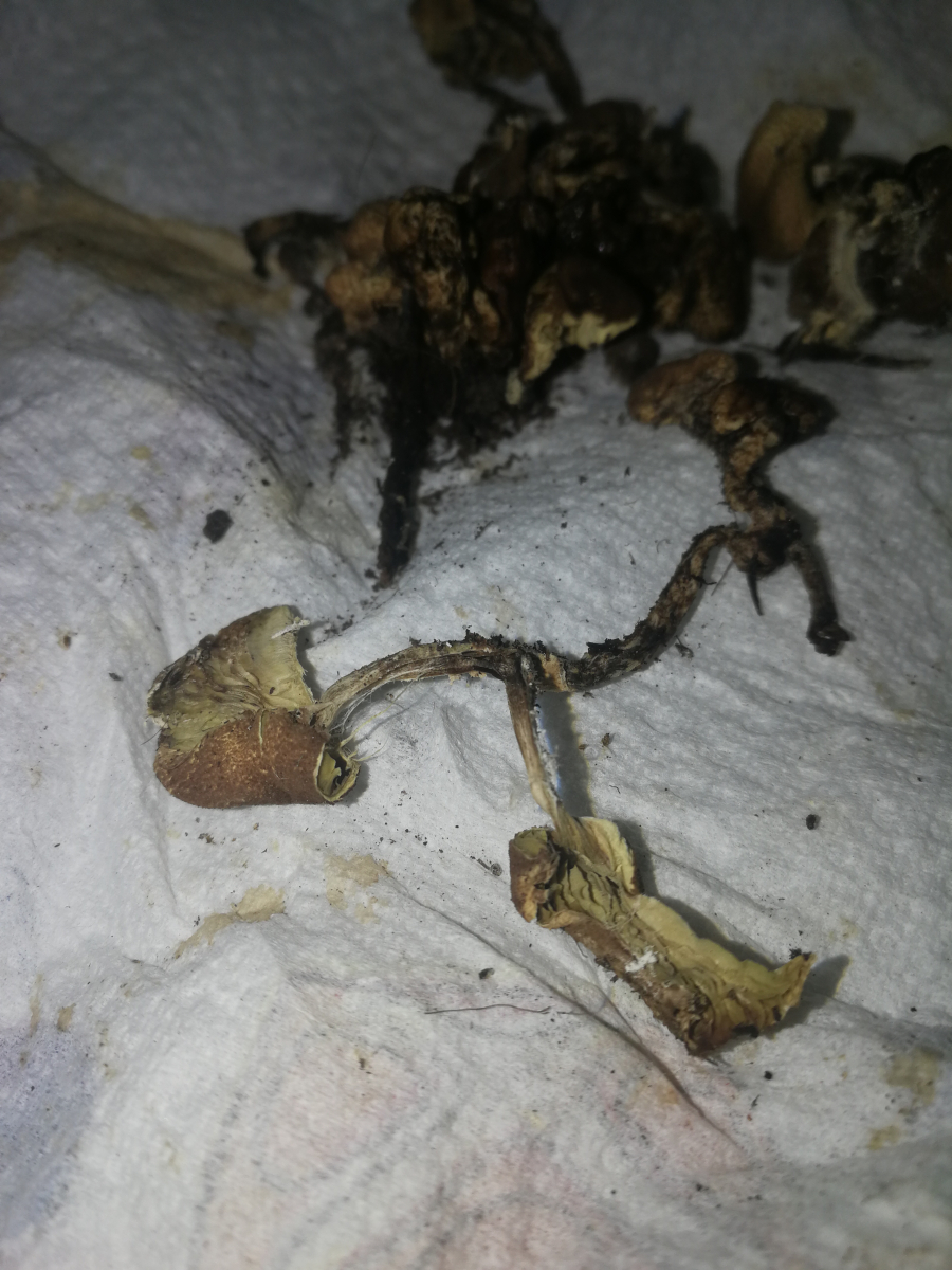 Bild des Pilzes (hab ein paar mit einem Blatt Küchenrolle "gepflückt und mit der Küchenrolle dann voneinander getrennt):