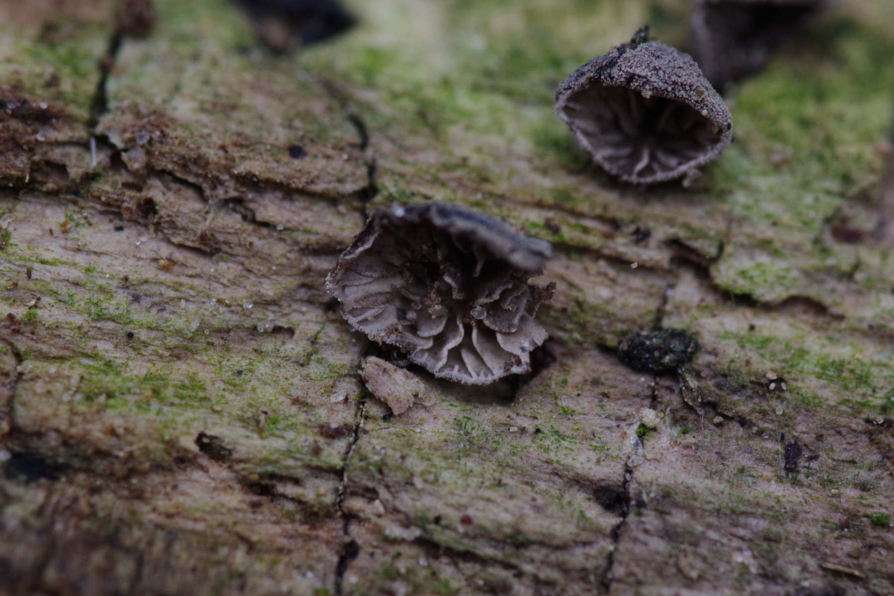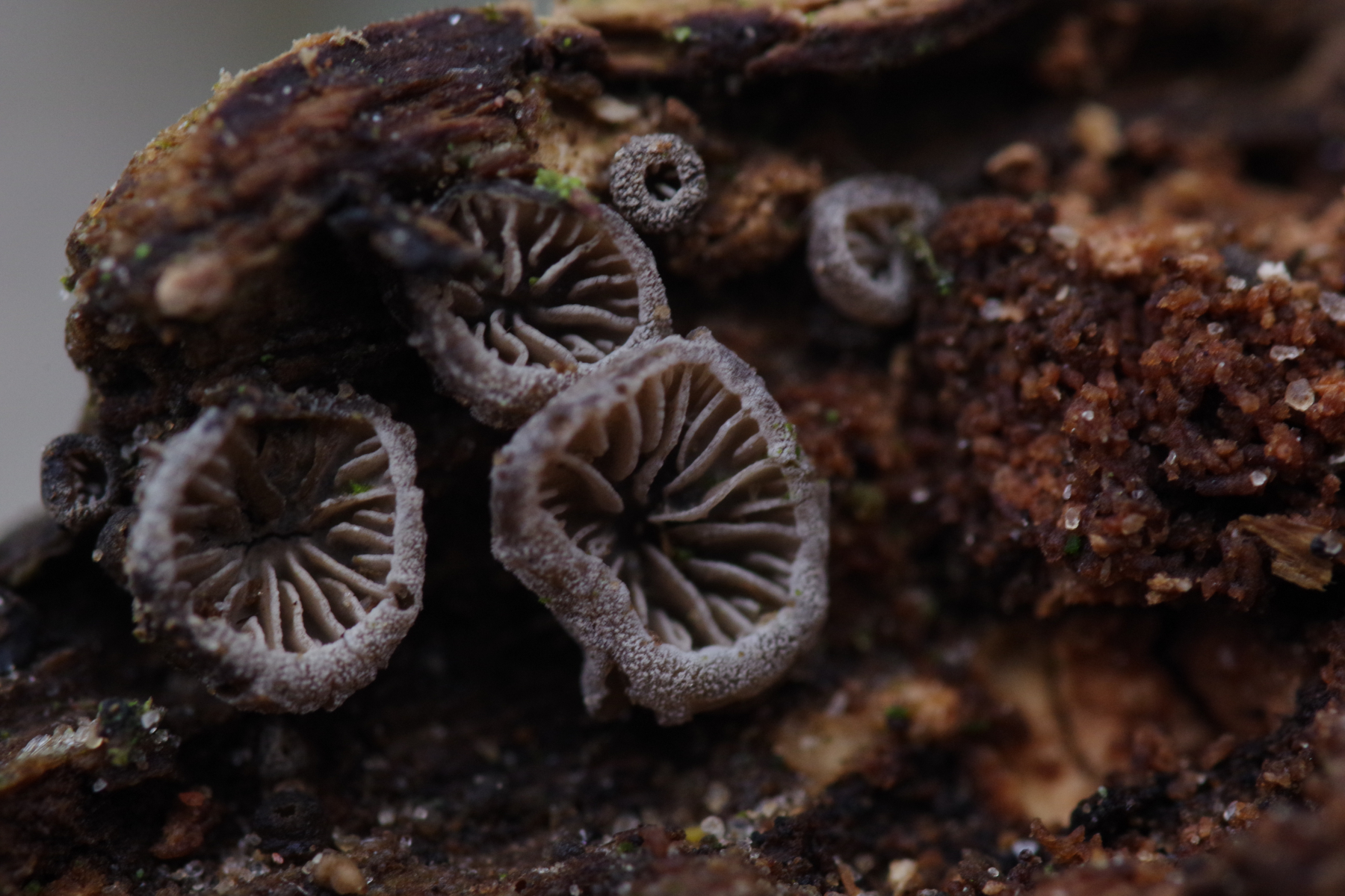 wachsen einige Pilze, zunächst Hohenbuehelia/Resupinatus, immer wieder schick, selbst wenn man die Art nicht benennen kann