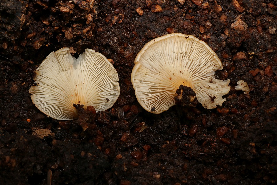 The substrate was wooden chips and some gravel that was used as animal bedding (and hence it might have some excreta) dumped on soil in an olive grove. There was some burning too but it is probably not relevant. So We could safely exclude roots of smaller plants. I wonder if we can advance further or stop as P. ostreatus s.l. ?