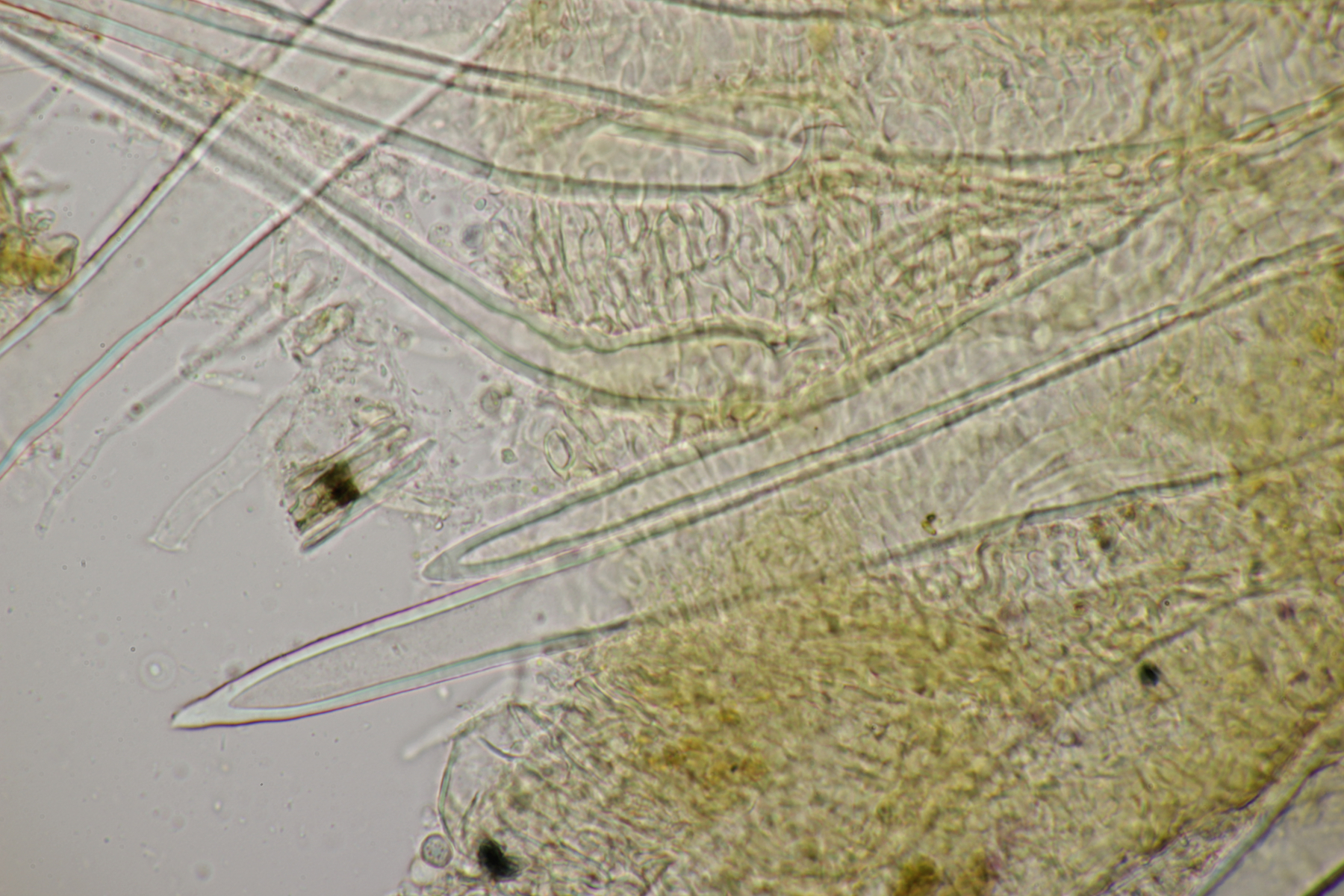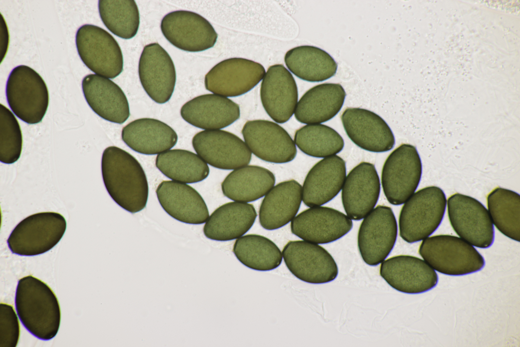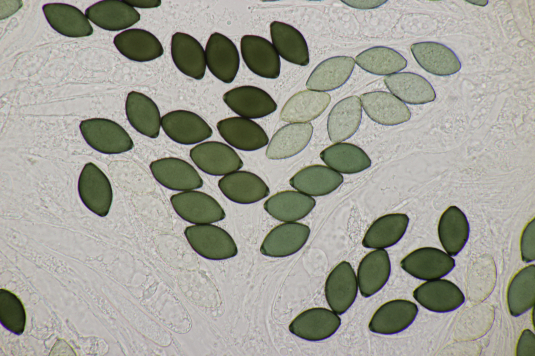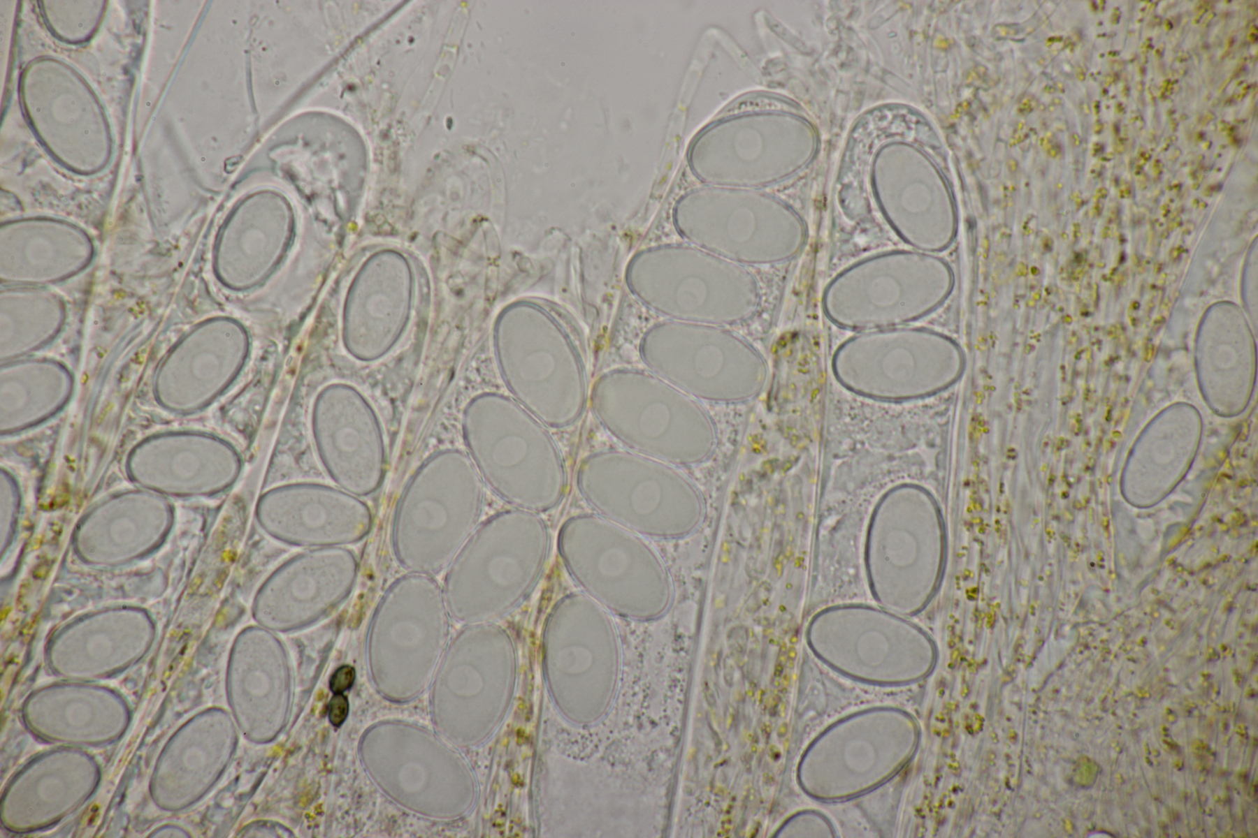 Ein zweiter Fruchtkörper hatte fast identische Sporenmaße von (42.4-47.0) µm x (7.2-8.7) µm. Hier sind die Keimspalten aber offenbar deutlich gerader. Paßt das trotzdem noch zu S. australis? Von den Sporenmaßen her kommt ja sonst nicht viel in Frage...