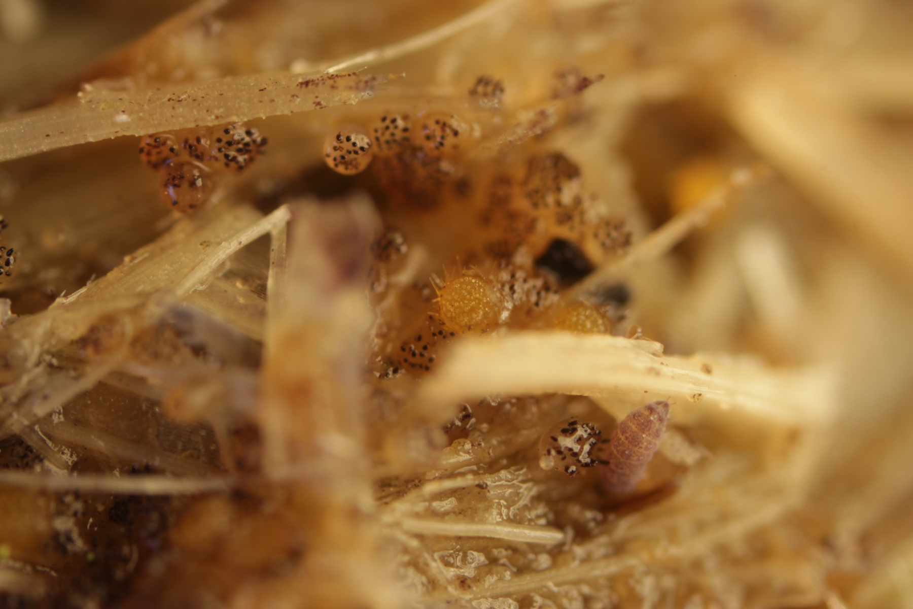Auch hier sehe ich wieder zwei verschiedene Sporengrößen.