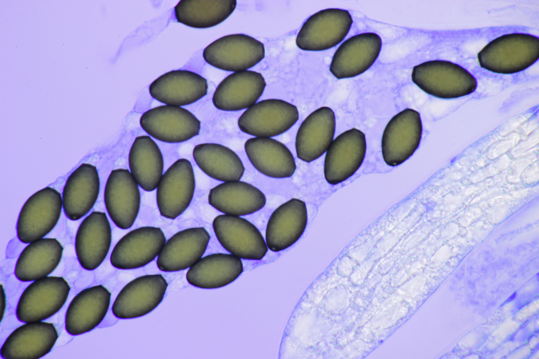 Hefte raus, Klassenarbeit! Ob man Dinge wirklich verstanden und parat hat, merkt man ja erst, wenn man in einer Prüfungssituation ist. Deshalb habe ich jetzt noch mal Sporormiella vom Pferd unters Mikro gelegt. Sporengrößen wie gehabt, Keimporen erscheinen mir in der Mehrzahl gerade bis maximal leicht gekrümmt. Dazu der lange Ascus-Fuß und ich lande bei Sporormiella dubia.