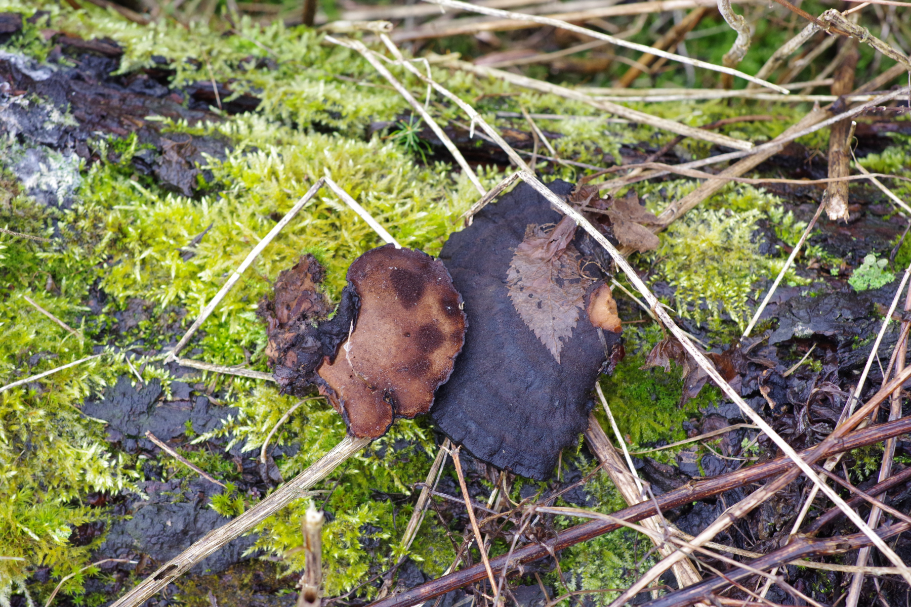 Nr. 3 sieht auch sehr passend das, vor allem was die beschriebene Wuchsweise angeht, das zog sich in mehreren Flecken über das ganze Stöckchen - und mit bloßem Auge gerade so als Becher zu erkennen.