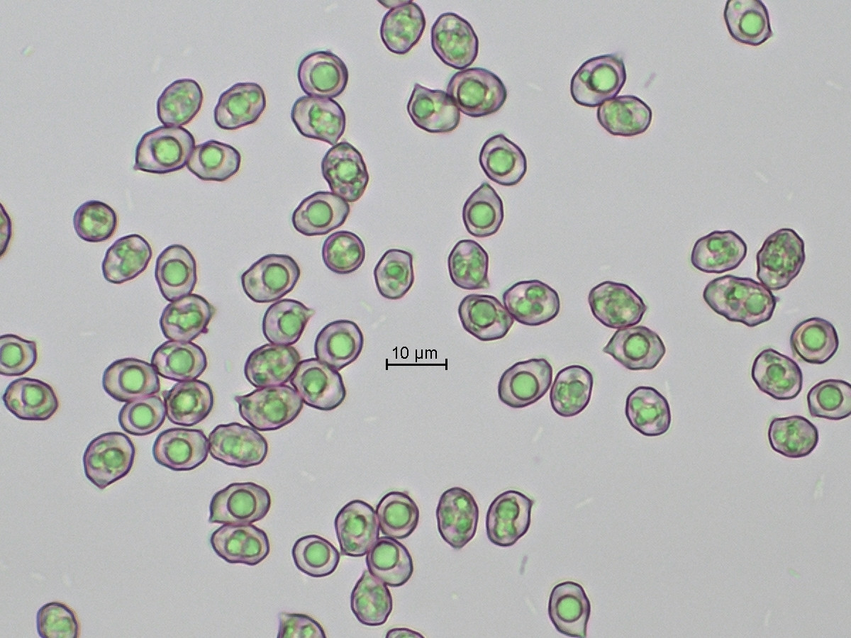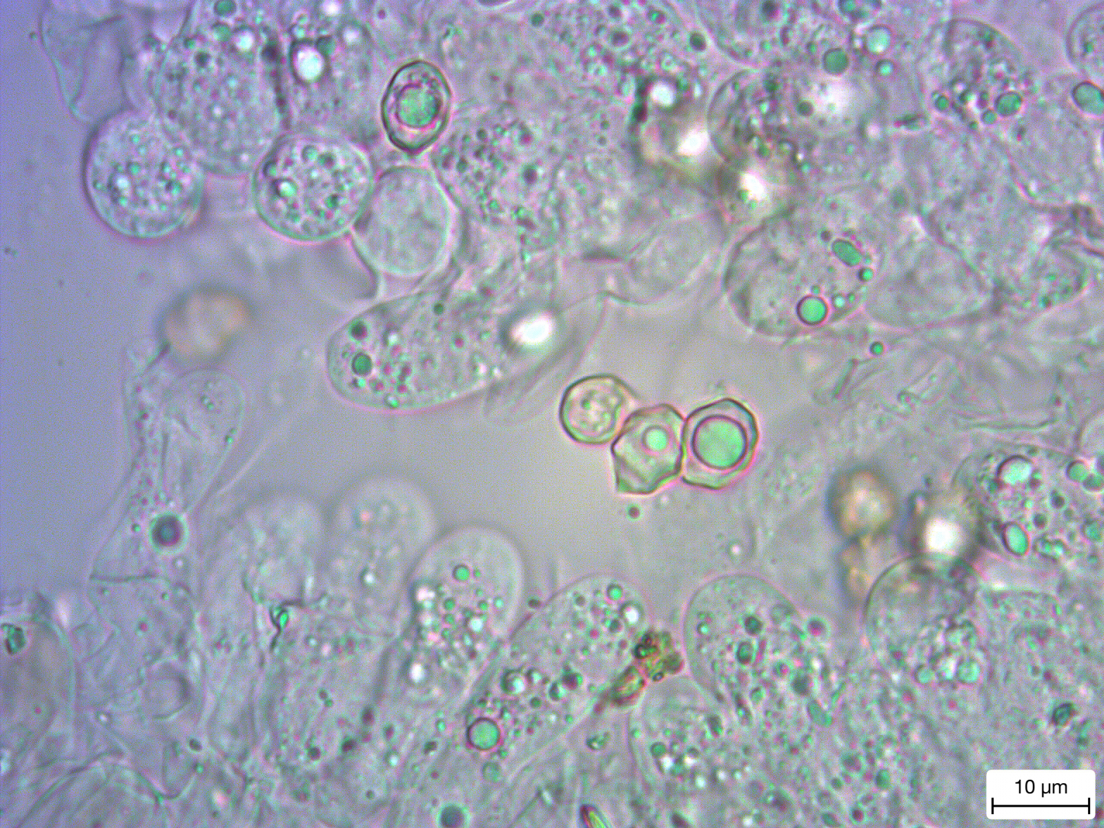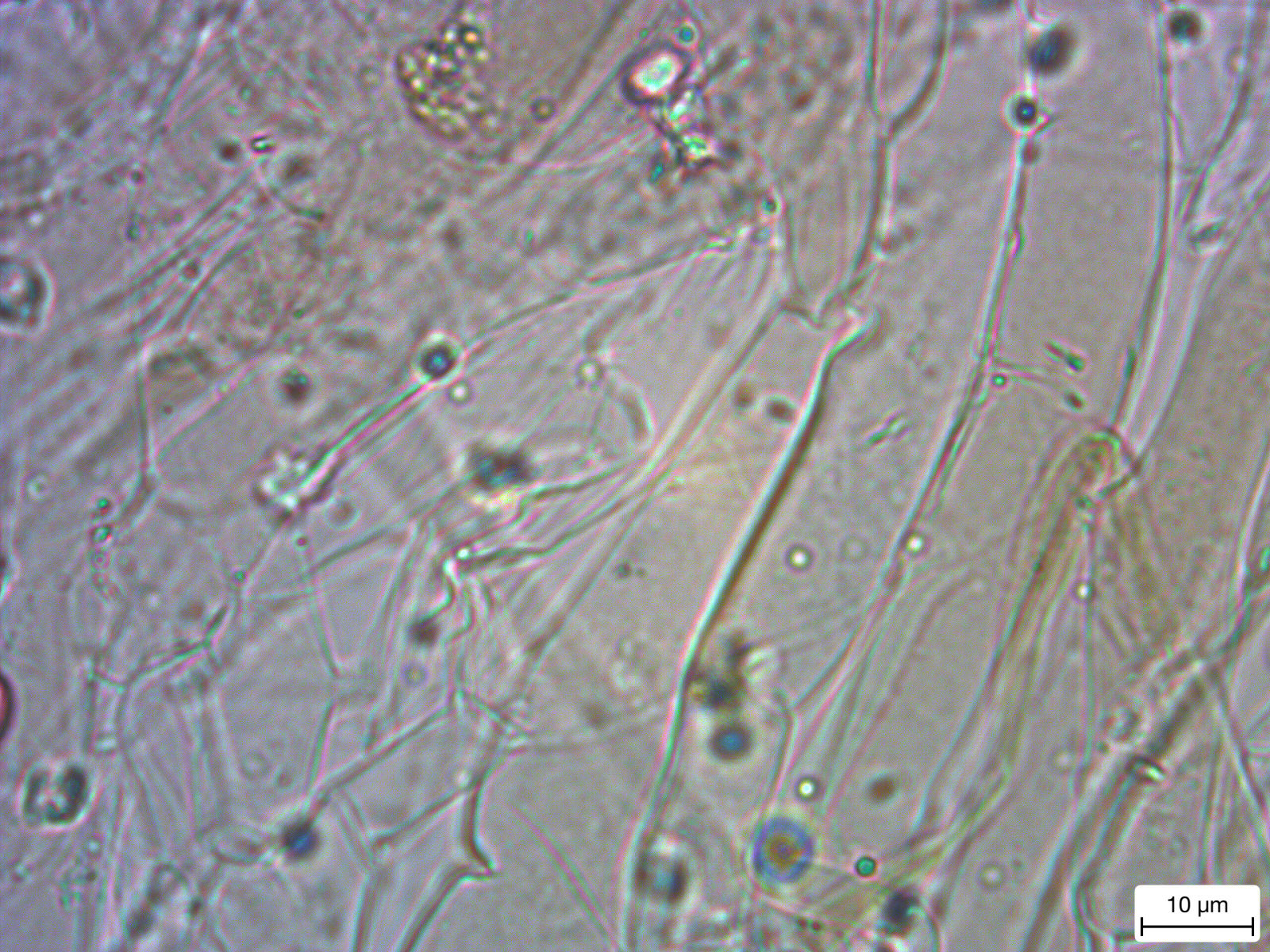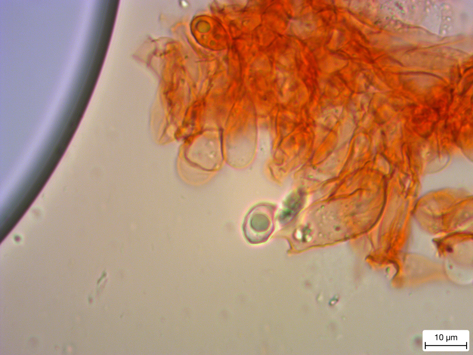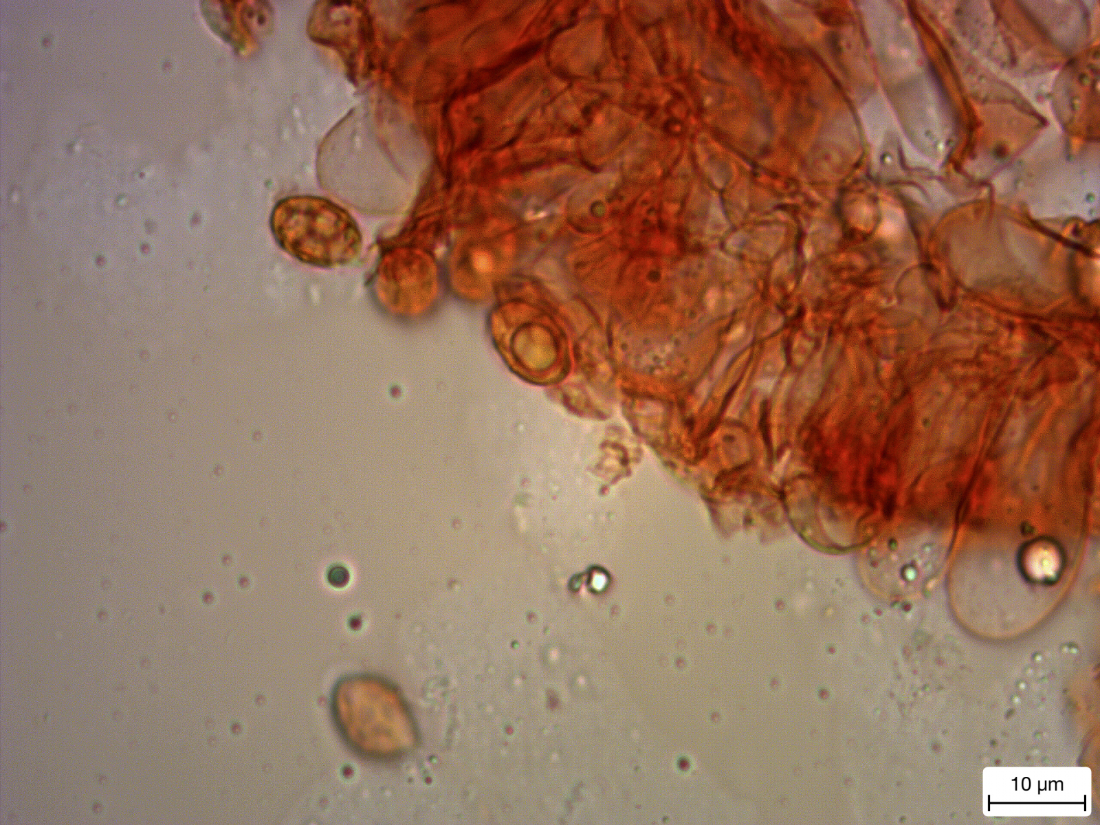 Heute war der große Tag. Ich erhielt das vorn der Post sauber zerbröselte Exikkat. Lamellen waren aber noch genug da und hier sind die Bilder: Rötlingssporen, ertappt!