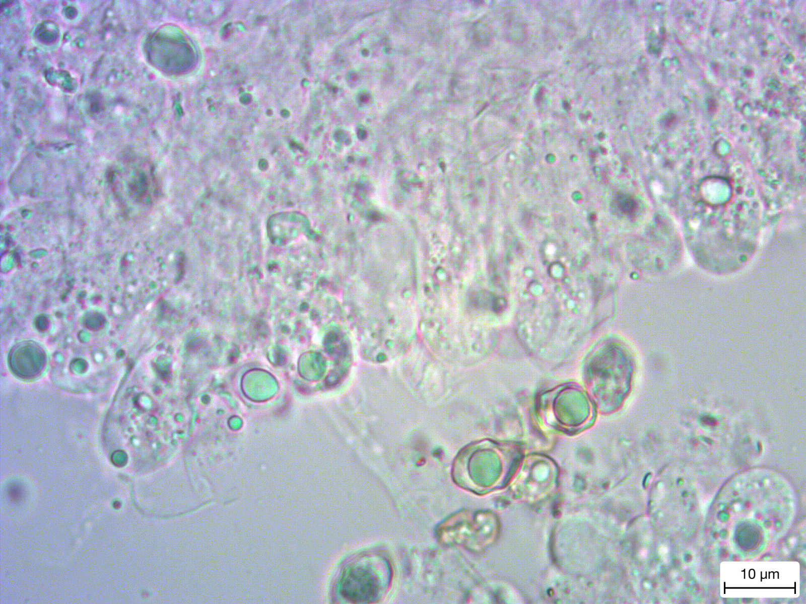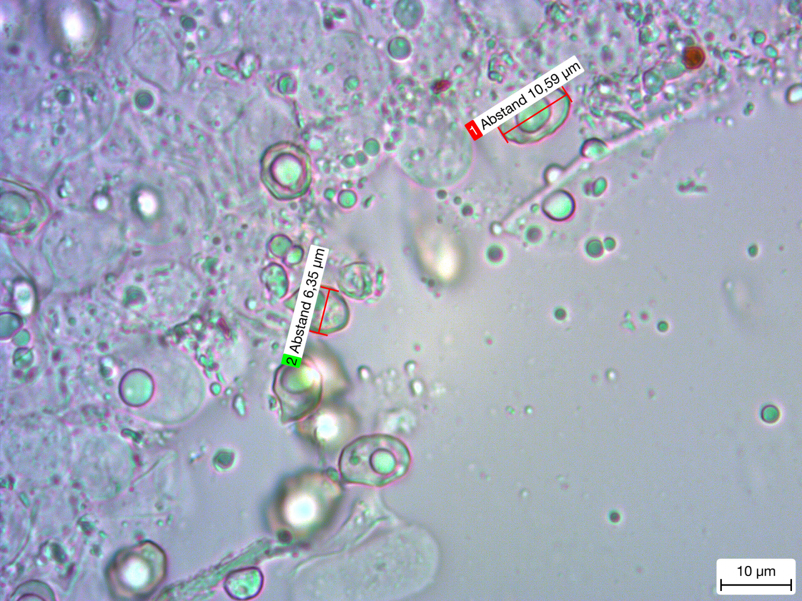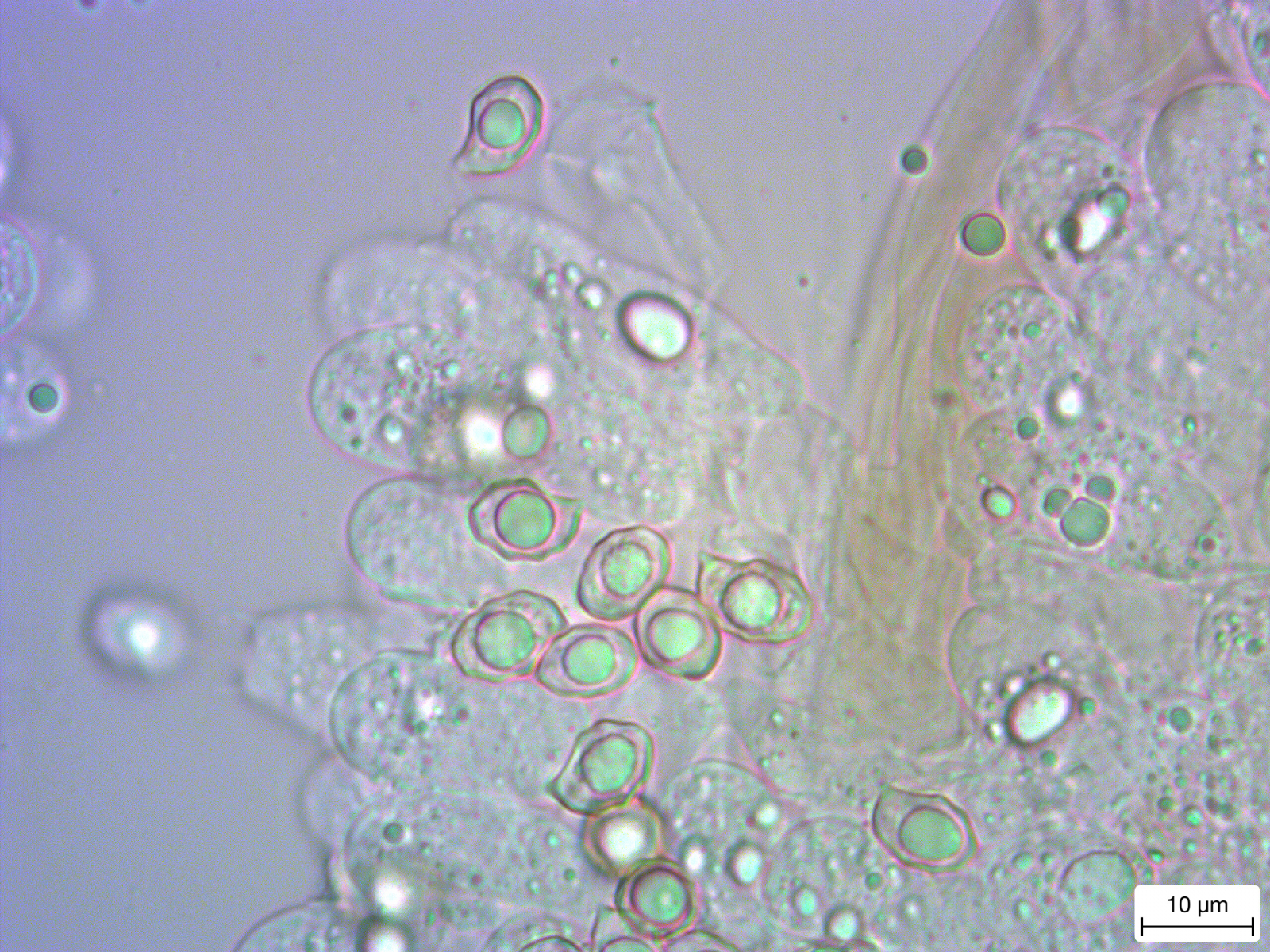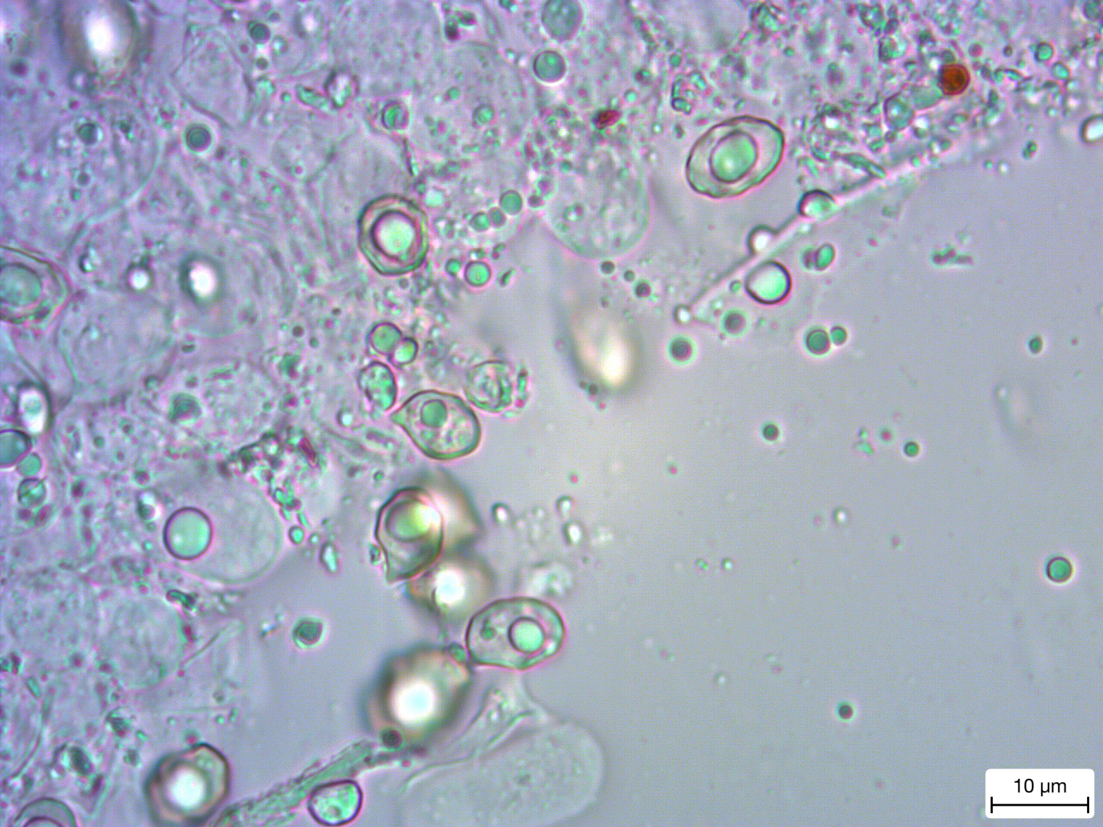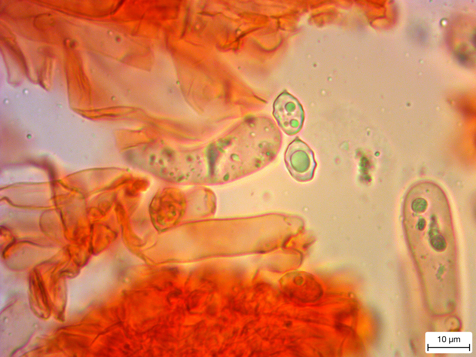 Heute war der große Tag. Ich erhielt das vorn der Post sauber zerbröselte Exikkat. Lamellen waren aber noch genug da und hier sind die Bilder: Rötlingssporen, ertappt!