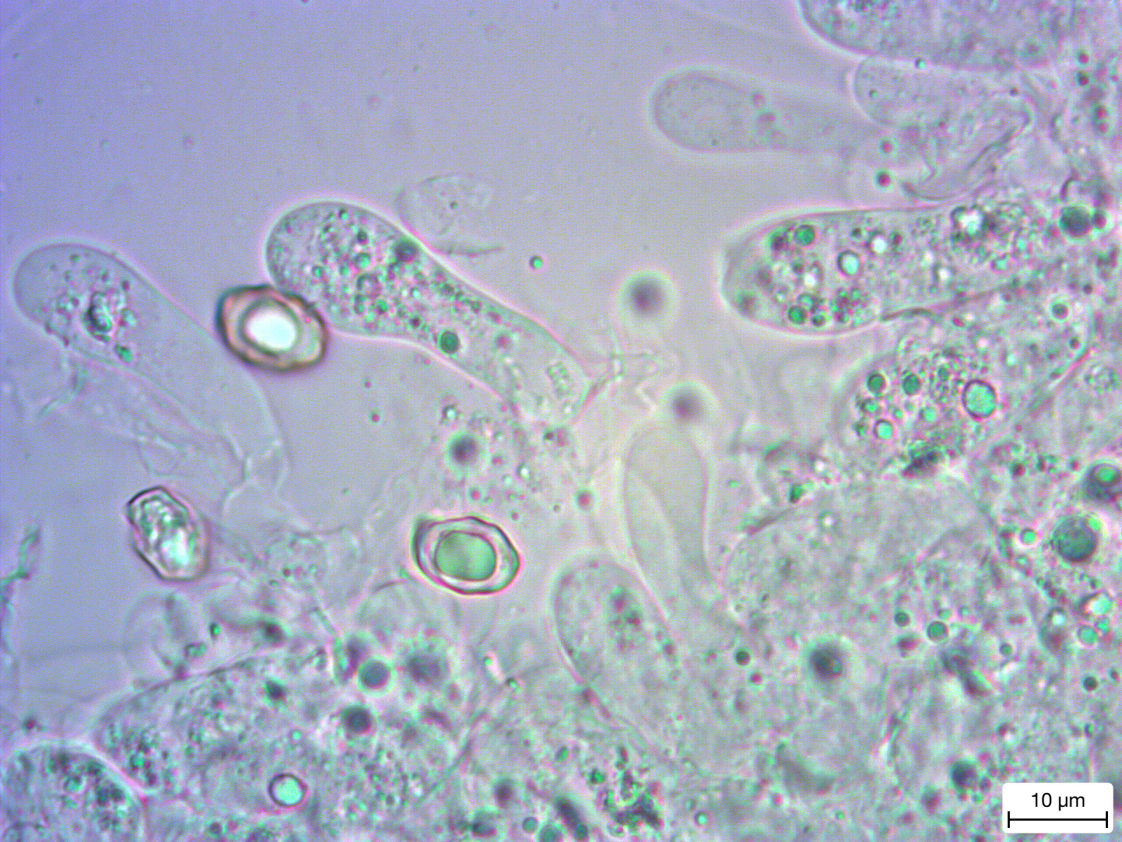 Lamellen kurz herablaufend, teilen sich nach dem Ansatz am Stiel.