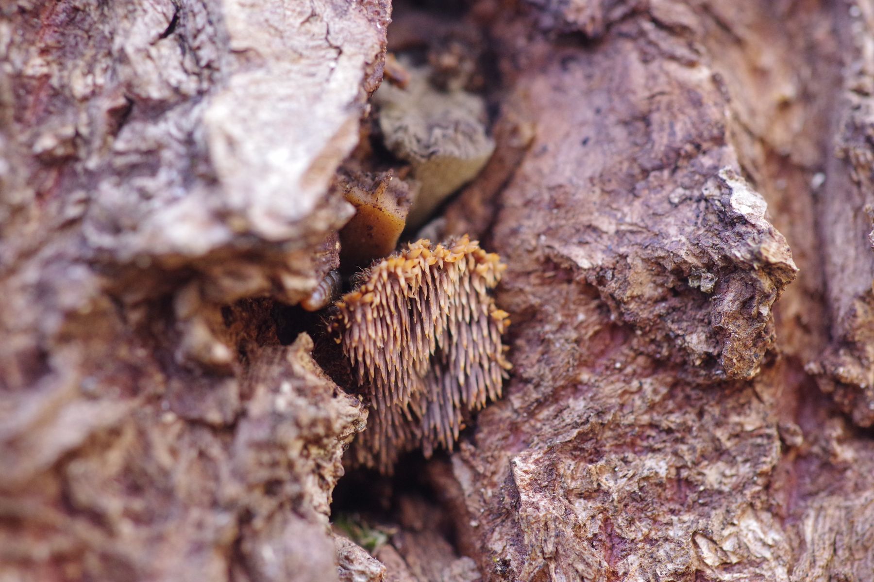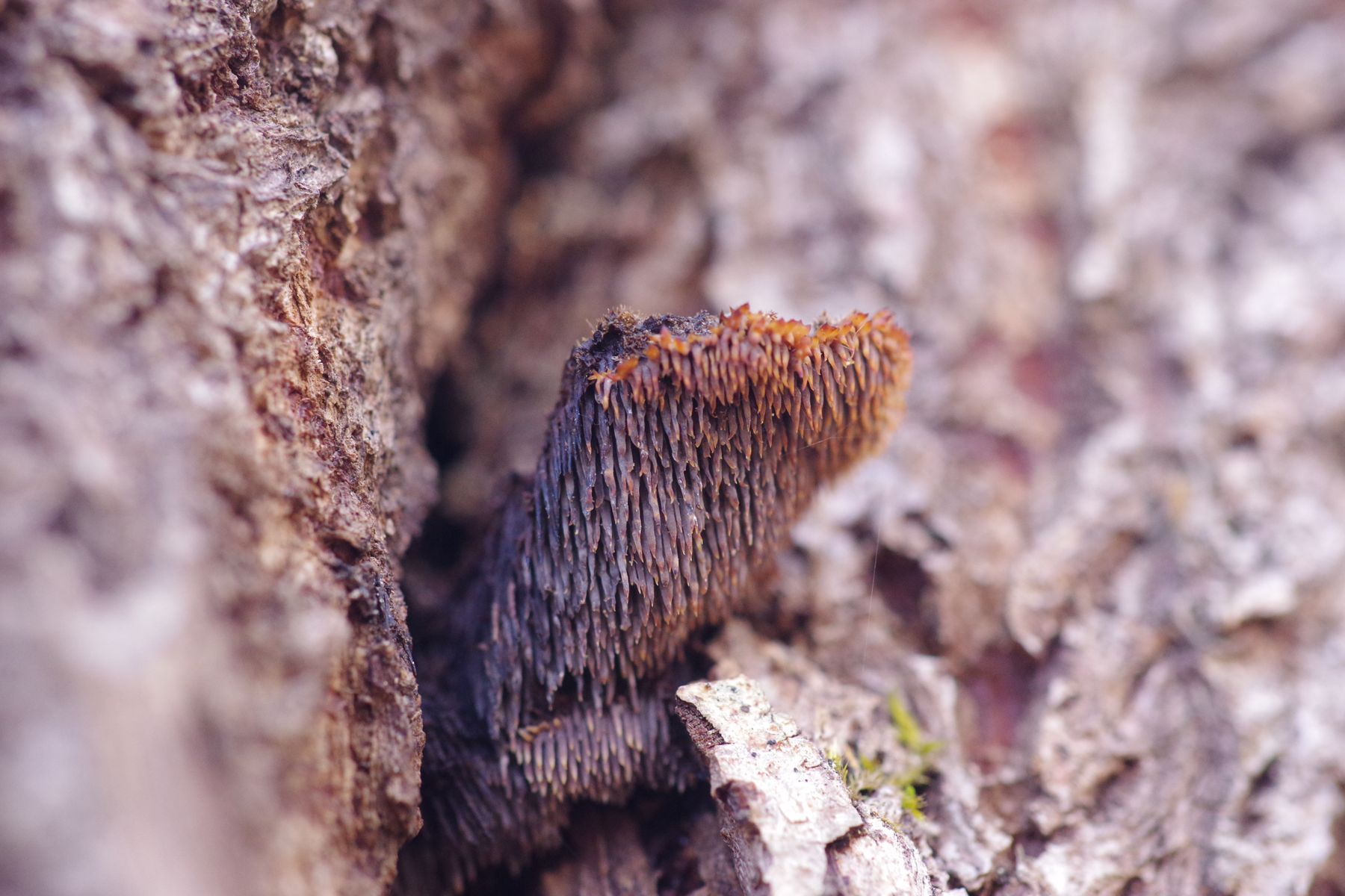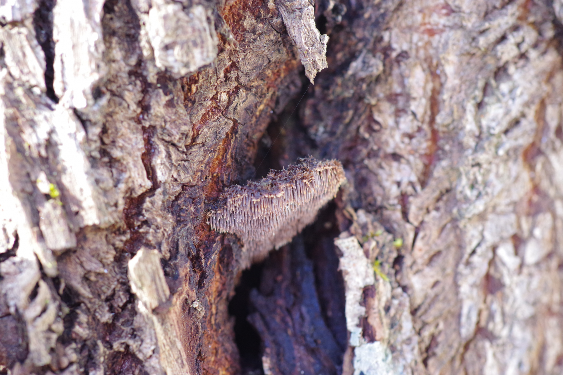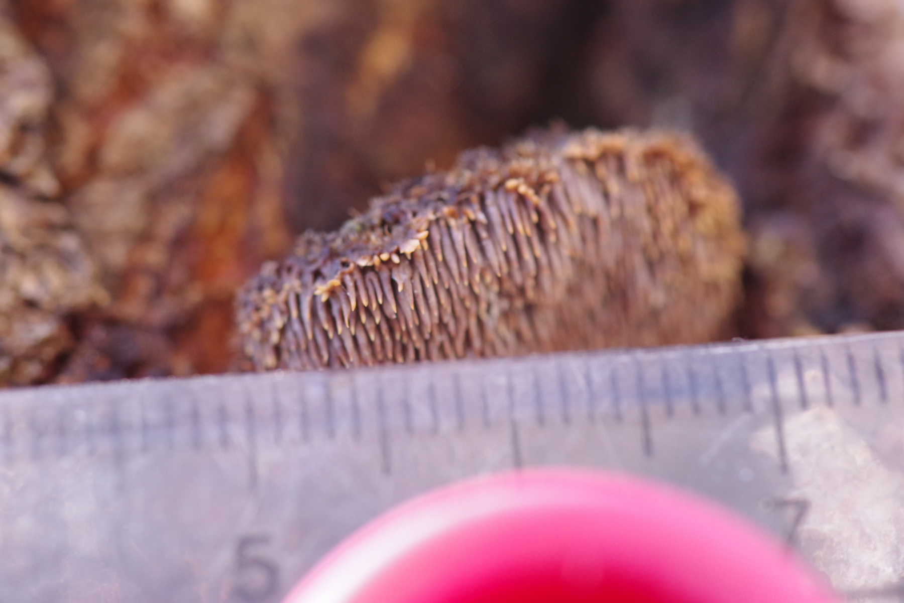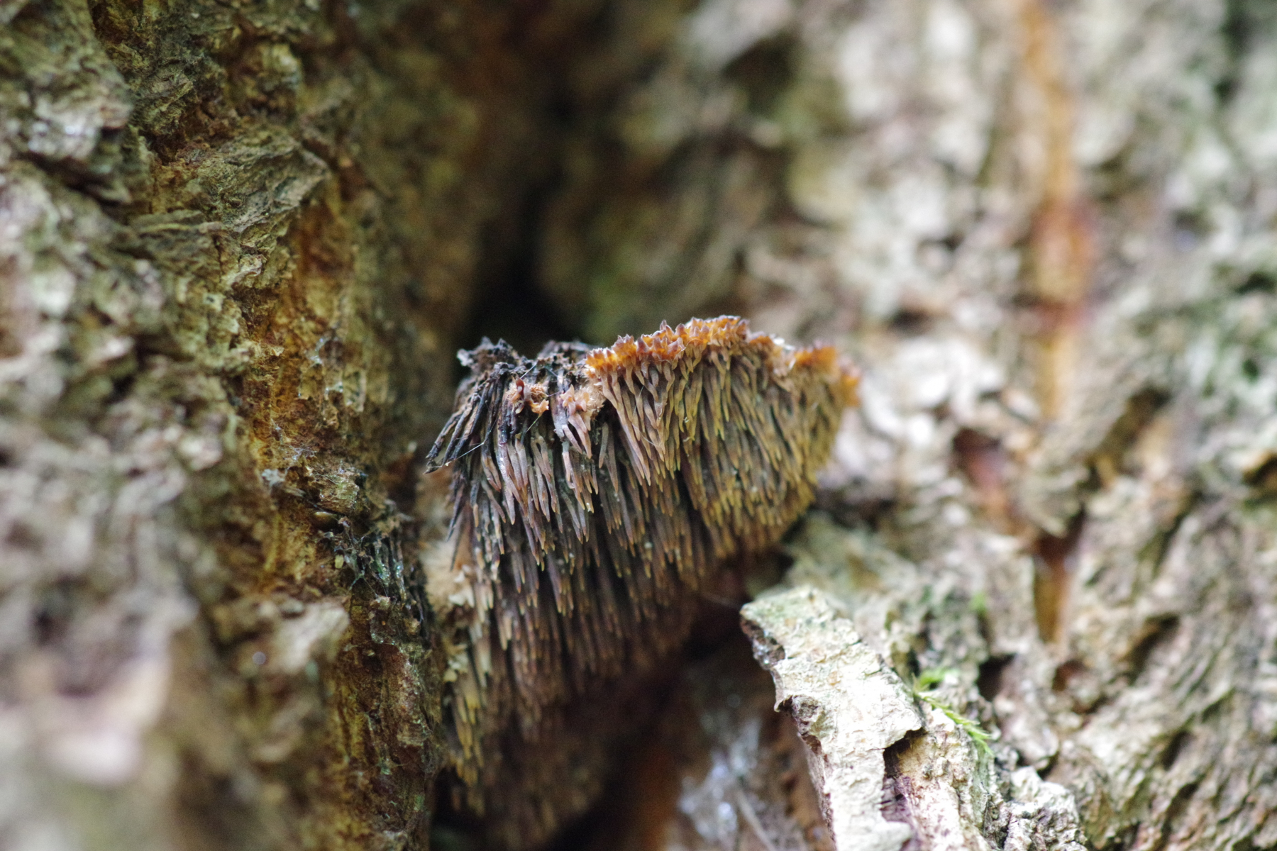 Das kann in der Tat sehr gut hinkommen. Sowas Braunstacheliges mit deutlichen, wuschelig behaarten Hüten gibt es meines Wissens nicht viel. Jedenfalls an Holz nicht, auf dem Erdboden schon (all die schicken, stacheligen Thelephoraceae und Bankeraceae).