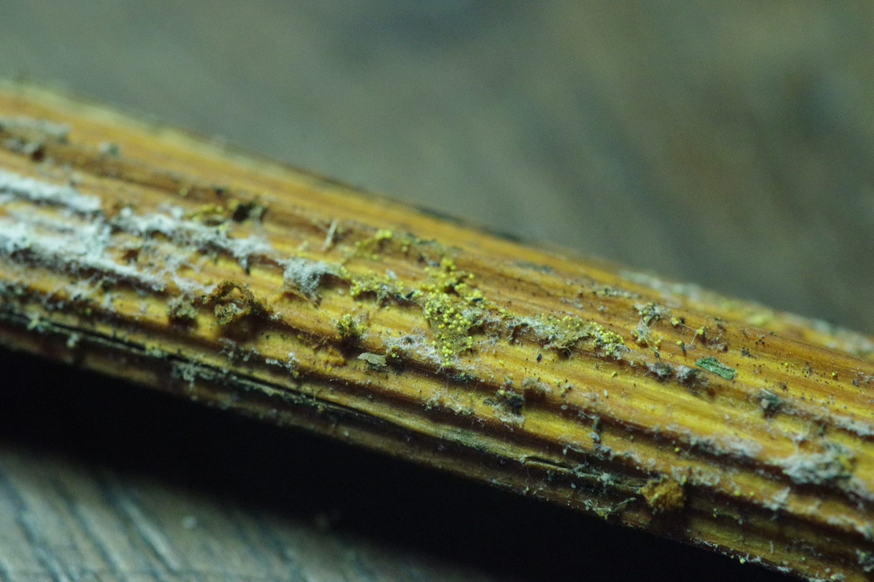 1) Adlerfarn, Pteridium aquilinum, am vorjährigen Stiel und auch (2) Luzula multiflora, zudem sieht man auf Bild 1 auch noch eine Ciboria (rechts unten)