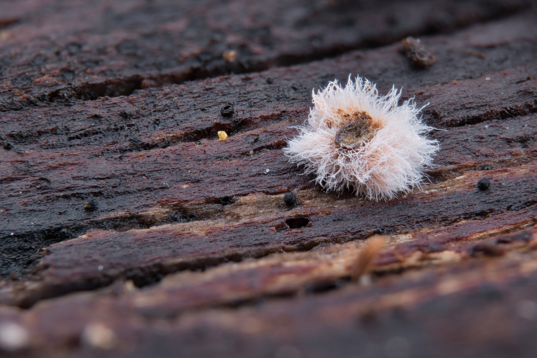 am letzten Wochenende habe ich auf der Unterseite eines Laubholzbaumastes den Kameraden unten gefunden. Leider weiß ich noch nicht mal, ob es sich um einen Pilz handelt. Das Gebilde ist mit Behaarung etwa 0,5 mm groß. Es hat an dem Ast gehaftet (Ich konnte es nicht wegpusten). Über Tipps in welche Richtung ich suchen soll, wäre ich sehr dankbar.