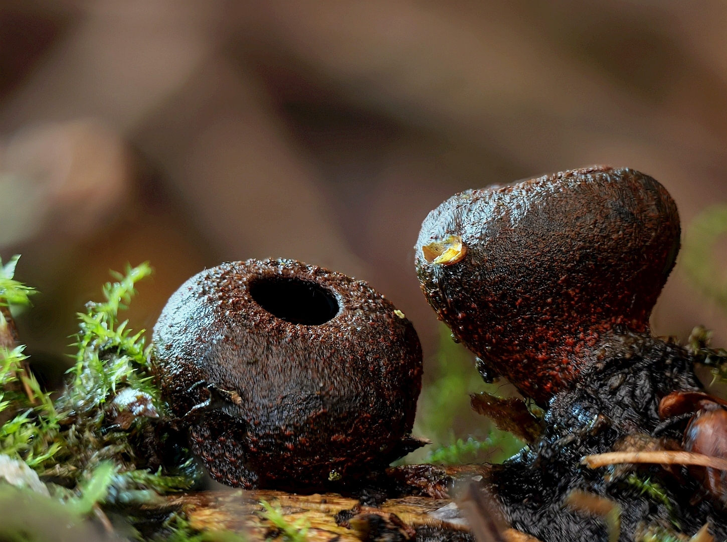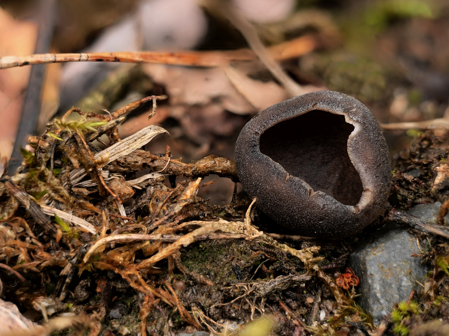 Weswegen ich in dem Wald war haben ich dann doch gefunden, leider den etwas feuchten Schwarzmündiger Kelchbecherling Plectania melastoma. Irgendwann erwische ich ihn noch in komplett Orange.