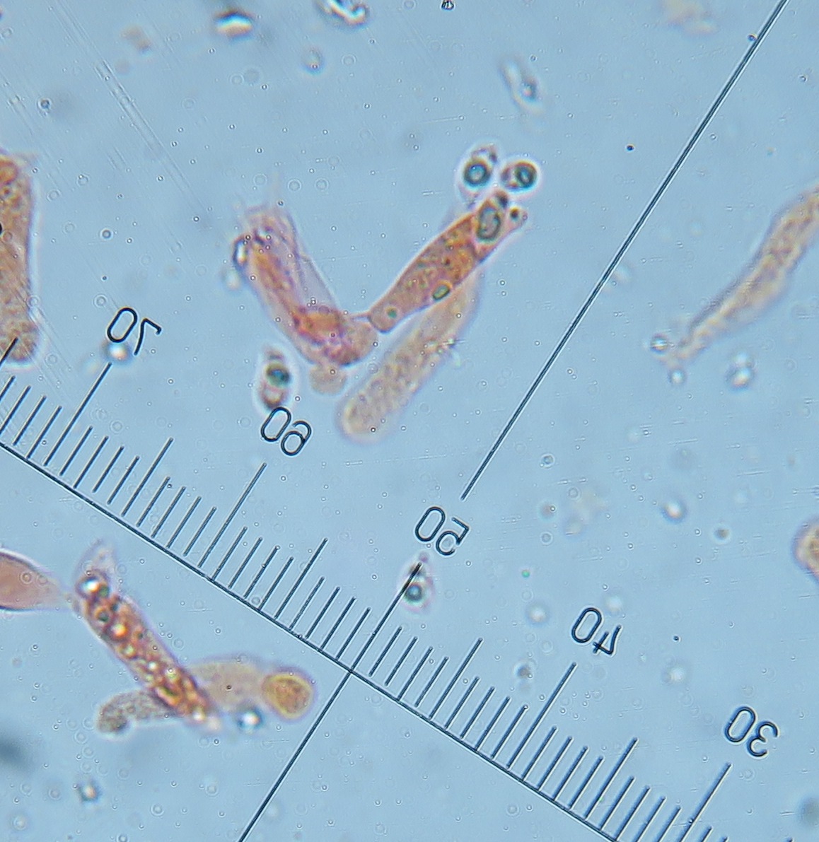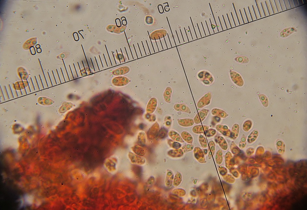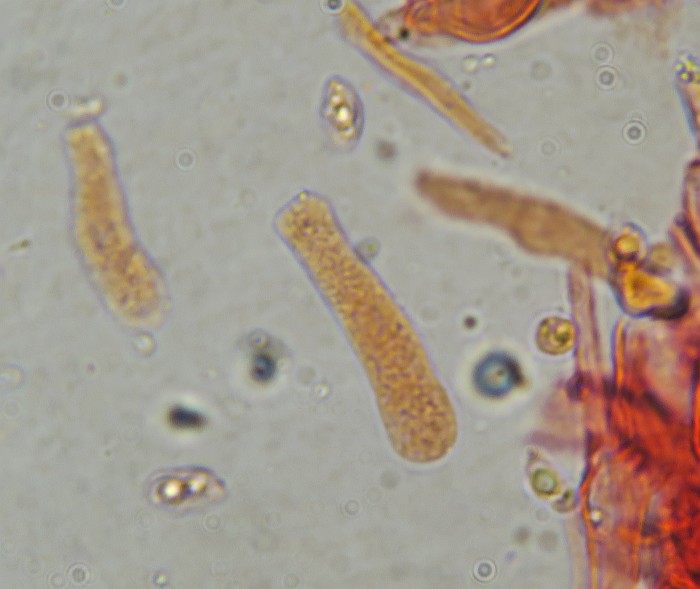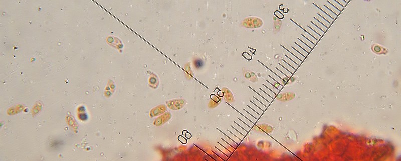 Spores seems to have various sizes ranging from 7.5 to 11.5