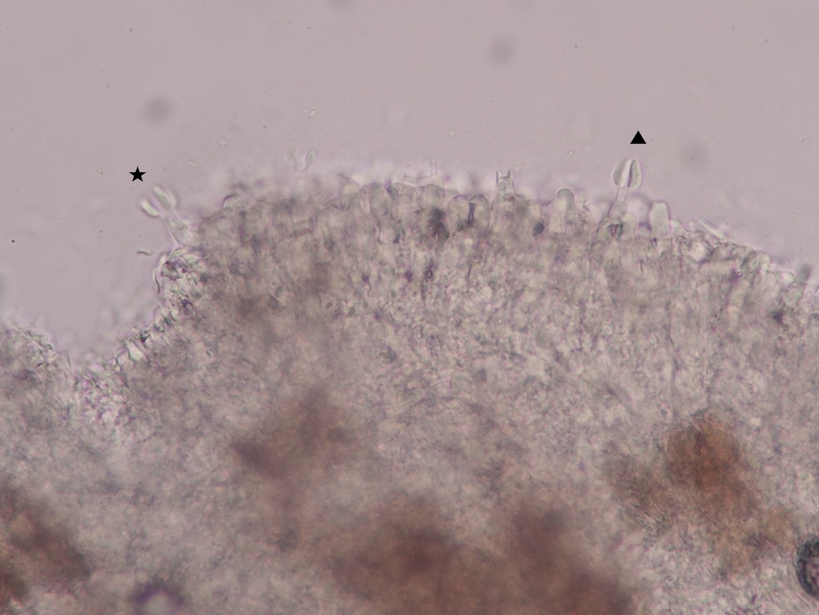 Ob z.B. die gezeigte Basidie auf dem zweiten Bild wirklich zwei- oder doch viersporig ist, kann so nicht beurteilt werden. Auch ob diese Elemente Zystiden sind, insbesondere auf dem letzten Bild - weiß der Dachs.