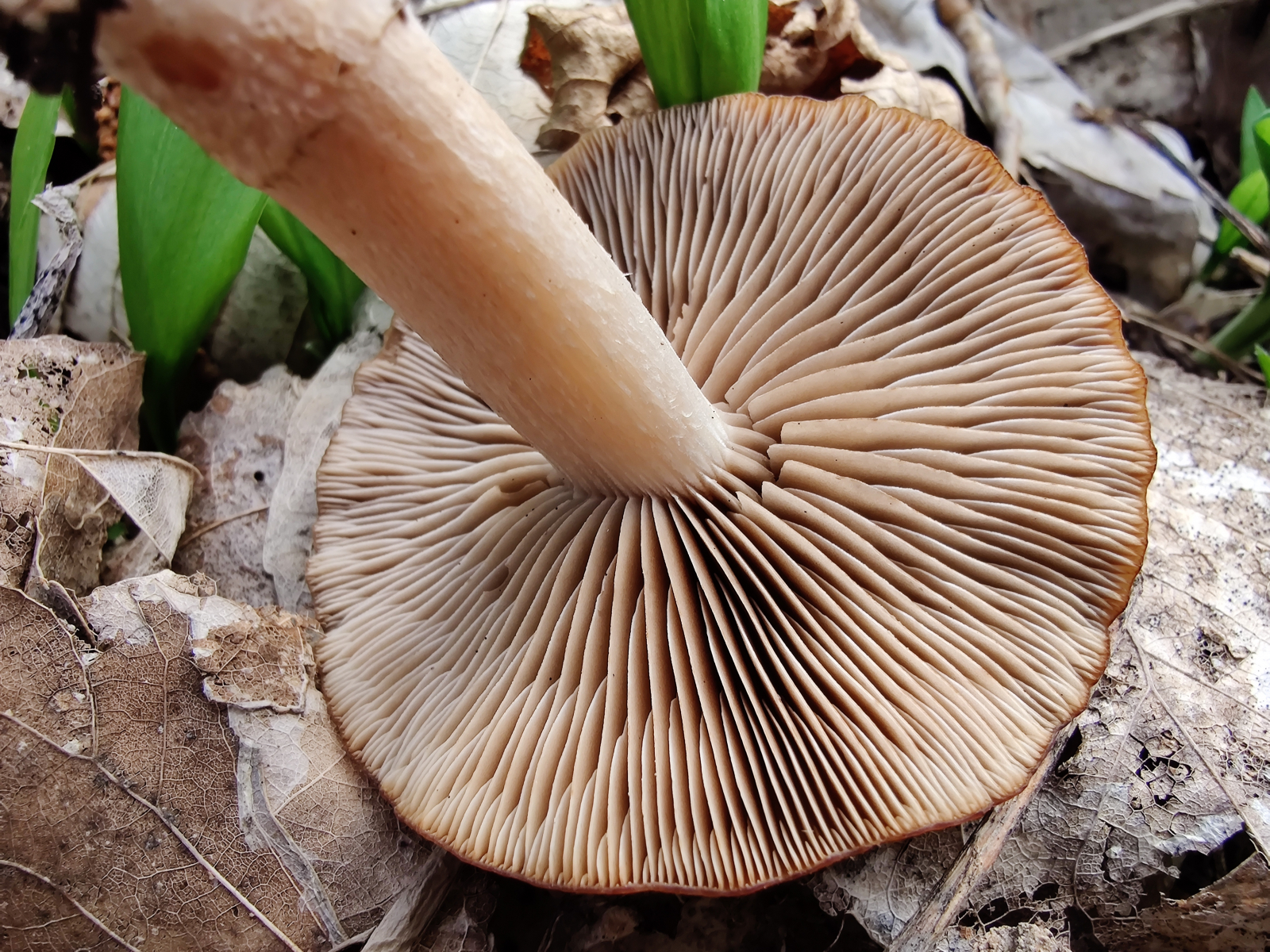 Ich möchte hier in aller Bescheidenheit dem Werner zustimmen und anführen, dass die Lamellen gerade angewachsen sind und mit Zähnchen herablaufen. Dem Pilz wurde beim Pflücken der Hut zu stark nach oben gebogen, dass die Lamellen am Stiel brachen und nun ausgebuchten wirken. Der Stiel ist an der Basis leicht verdickt und scheint Filzig zu sein...Psathyrella spadiceogrisea agg.