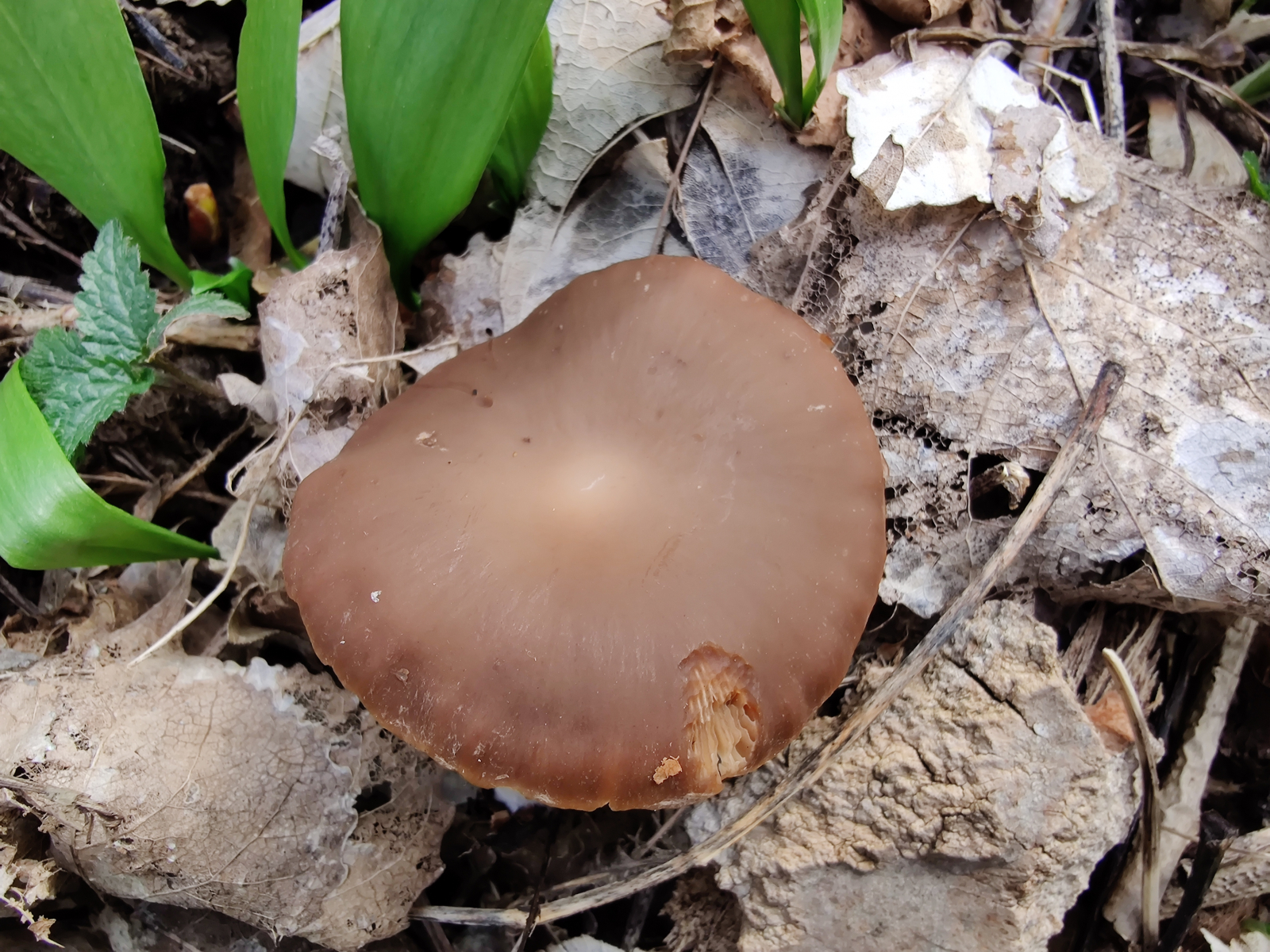 die oben genannte Art hab ich Ende Januar dieses Jahr zum ersten mal entdeckt. Heute bin ich auf folgenden Pilz gestoßen. Nach einer Weile ist mir wieder Meottomyces dissimulans in den Sinn gekommen. Handelt es sich wieder um diese Art oder ist es was ganz anderes? Es scheint alles zu passen, aber ich bin mir nicht sicher. Bei dem Exemplar im Januar waren die Merkmale deutlicher. Der Fruchtkörper heute hatte enger stehende Lamellen und der Hut schien weniger fettig.