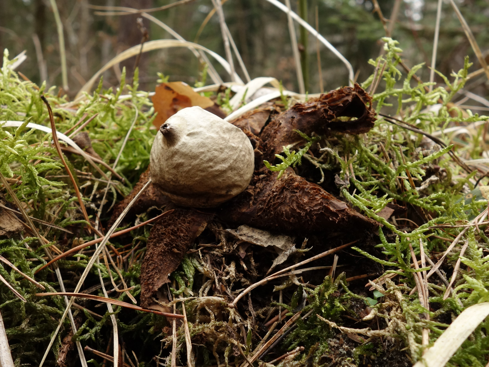 Darf denn Geastrum rufescens so ein deutlich behöftes Peristom haben? Ich denke doch eher nicht, und würde darum eher an einen verwitterten Geastrum triplex (Halskrausenerdstern) denken. Wenn die Exoperidie verwittert, ist von der "Halskrause" natürlich nichts mehr zu sehen.LG; Pablo.