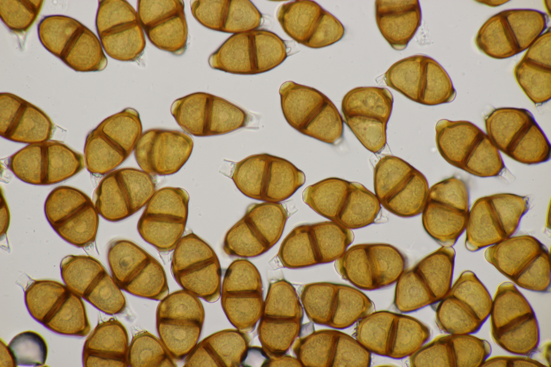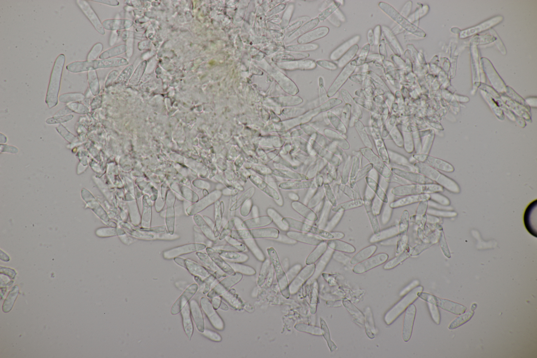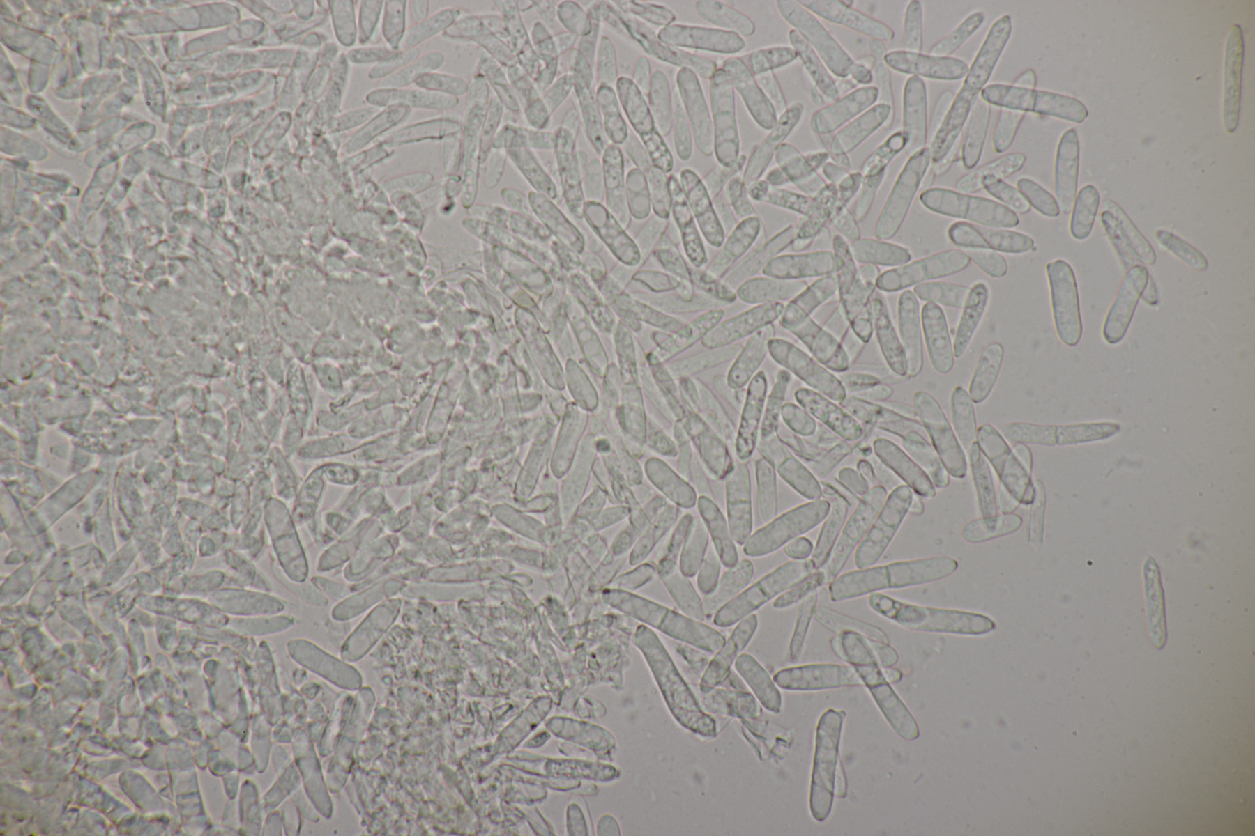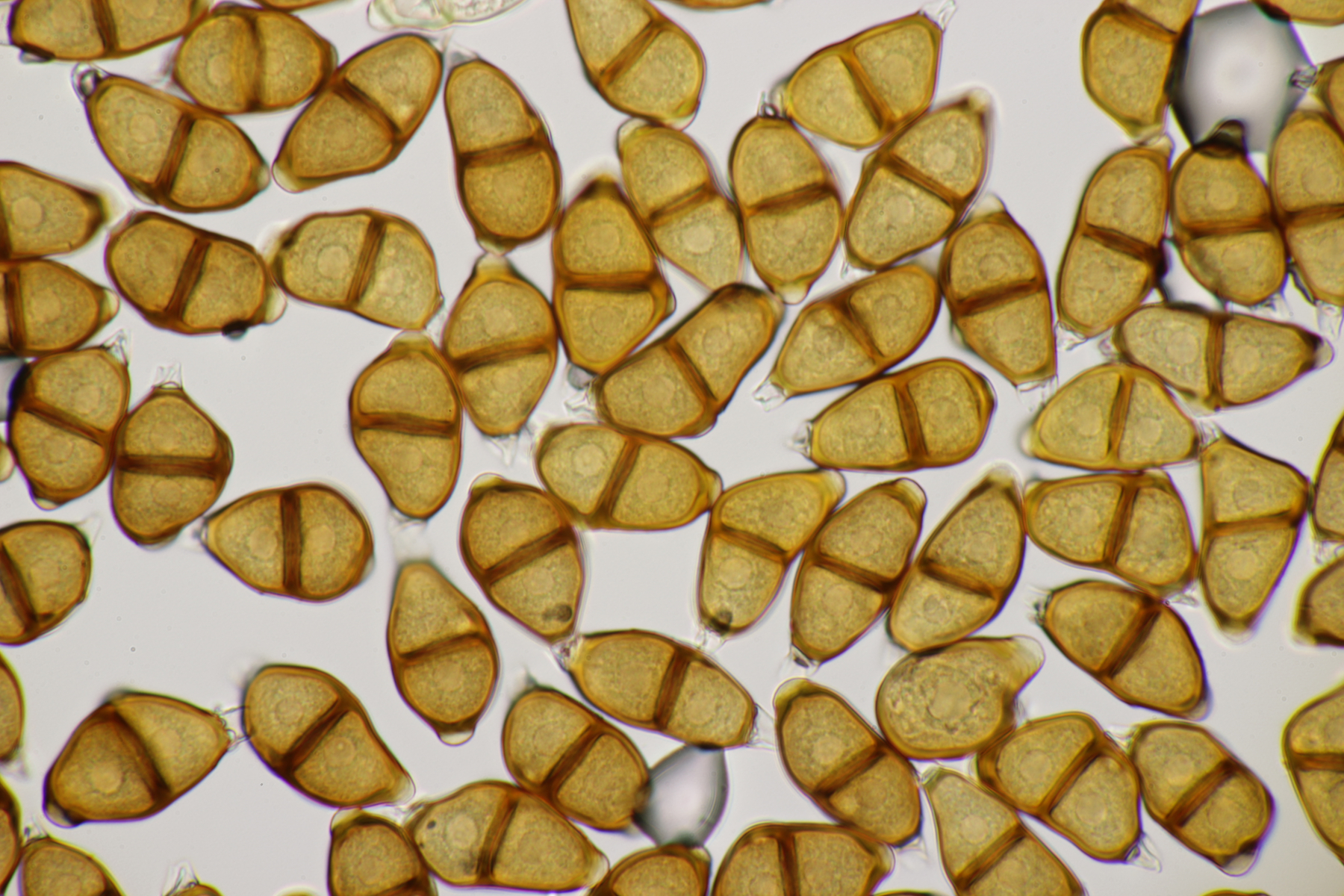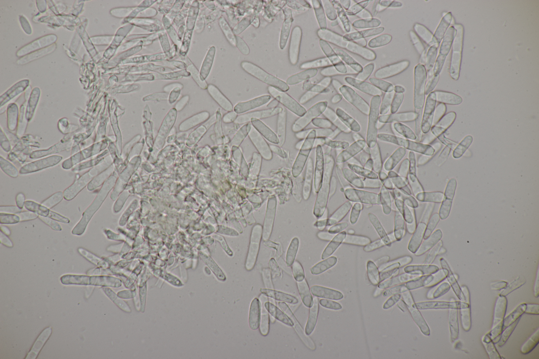4. Eine Gallertträne ohne Schnallen, mit Sporen von (15.4+-0.6) µm x (6.2+-0.3) µm, Q=2.5+-0.1, (13.9-16.7) µm x (5.9-7.1) µm, Q=2.3-2.7, dreifach septiert und dünnwandig, an Laubholz. Die Fruchtköper sind leicht gestielt, so daß ich hier bei Dacrymyces capitatus lande. thorben96 Ist D. Begerow an Gallerttränen interessiert? Dann würde ich einen Beleg anfertigen