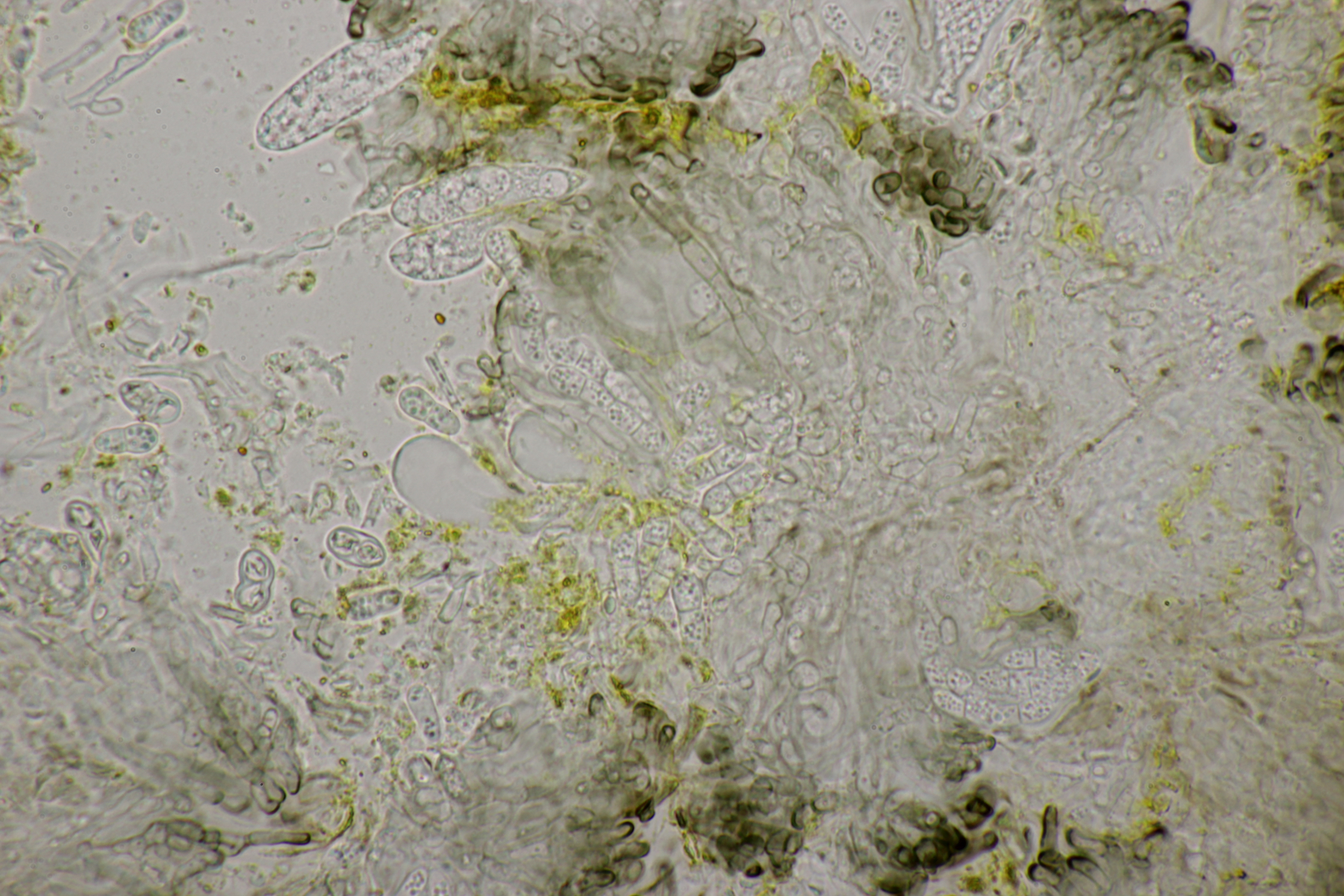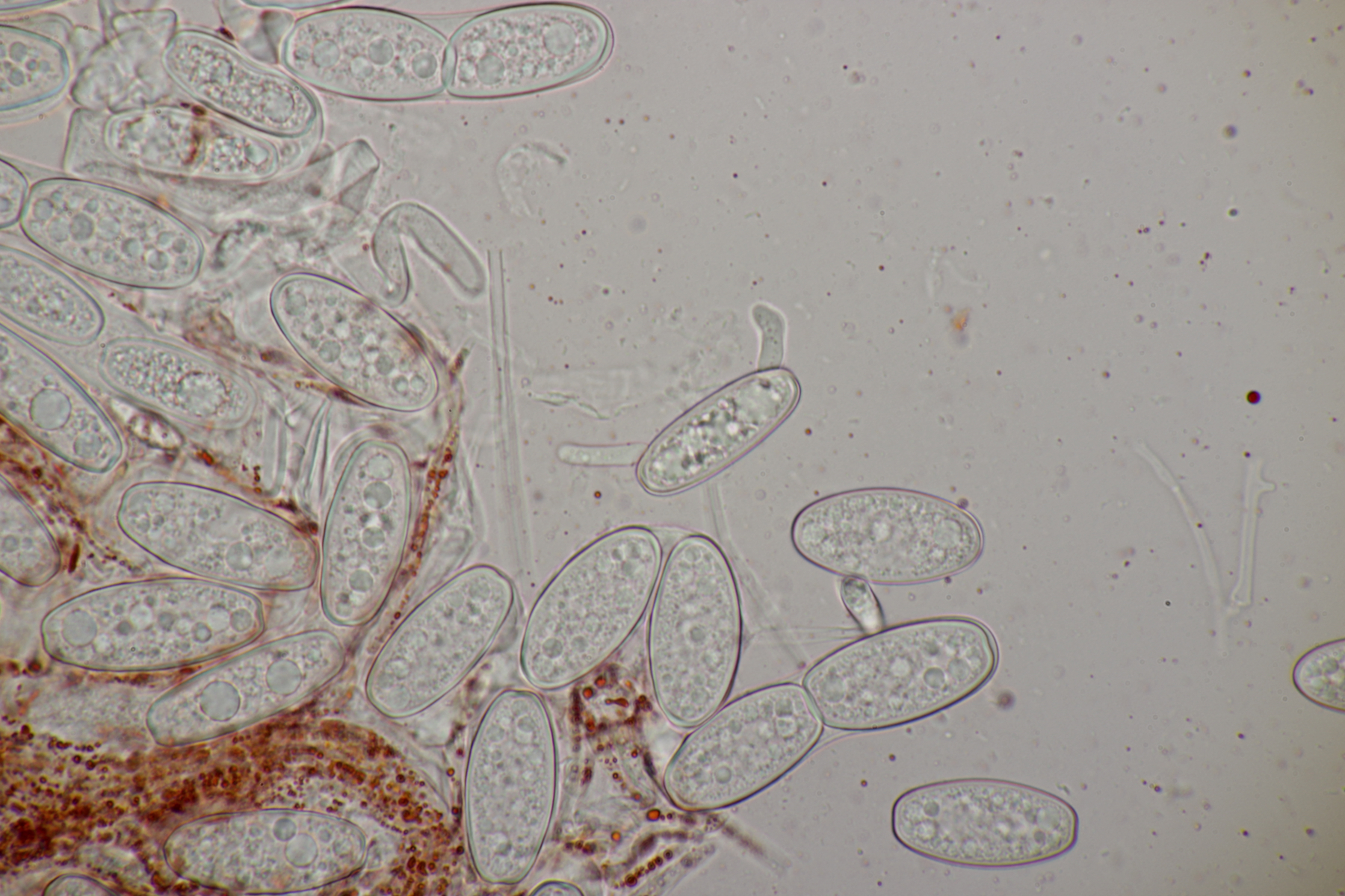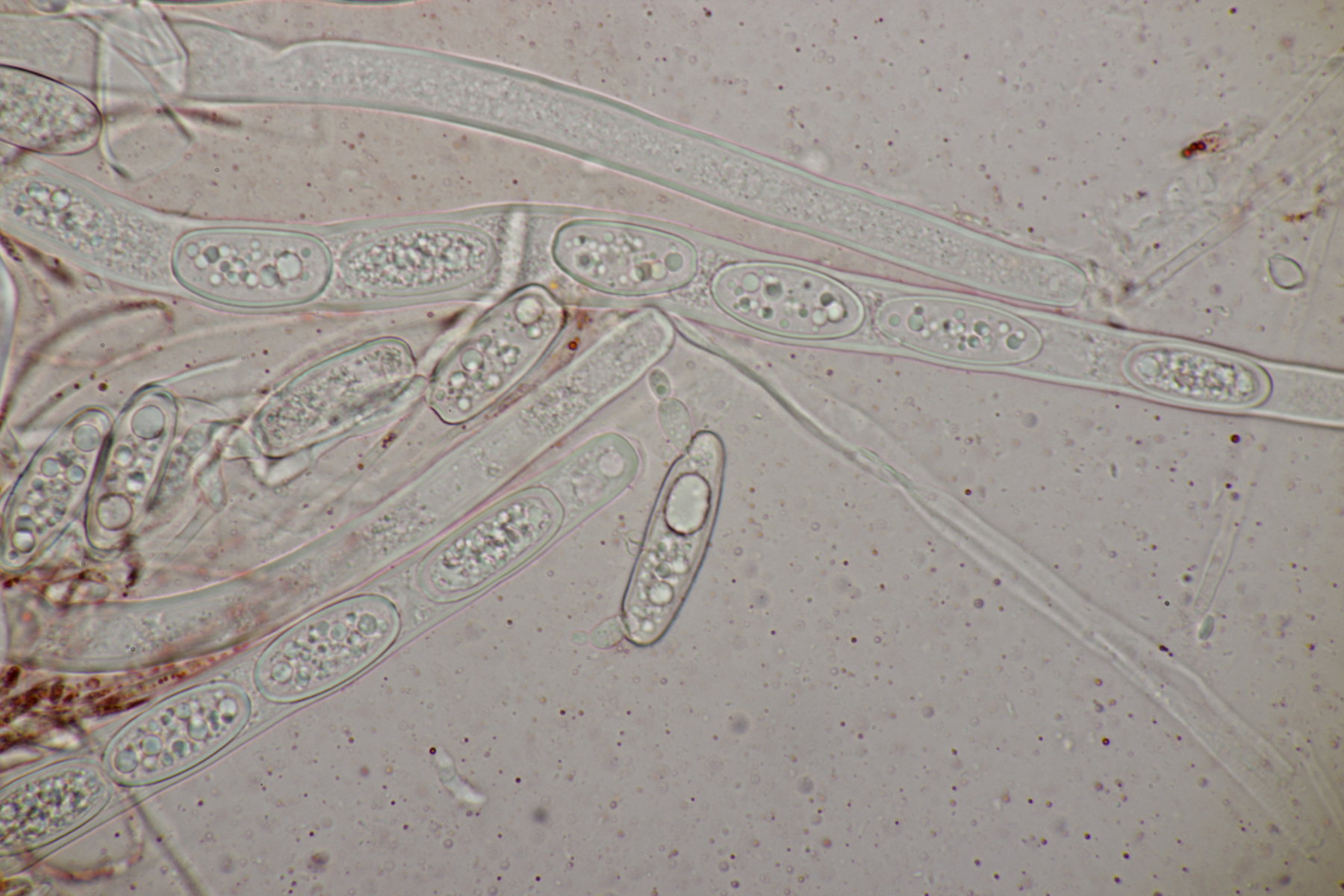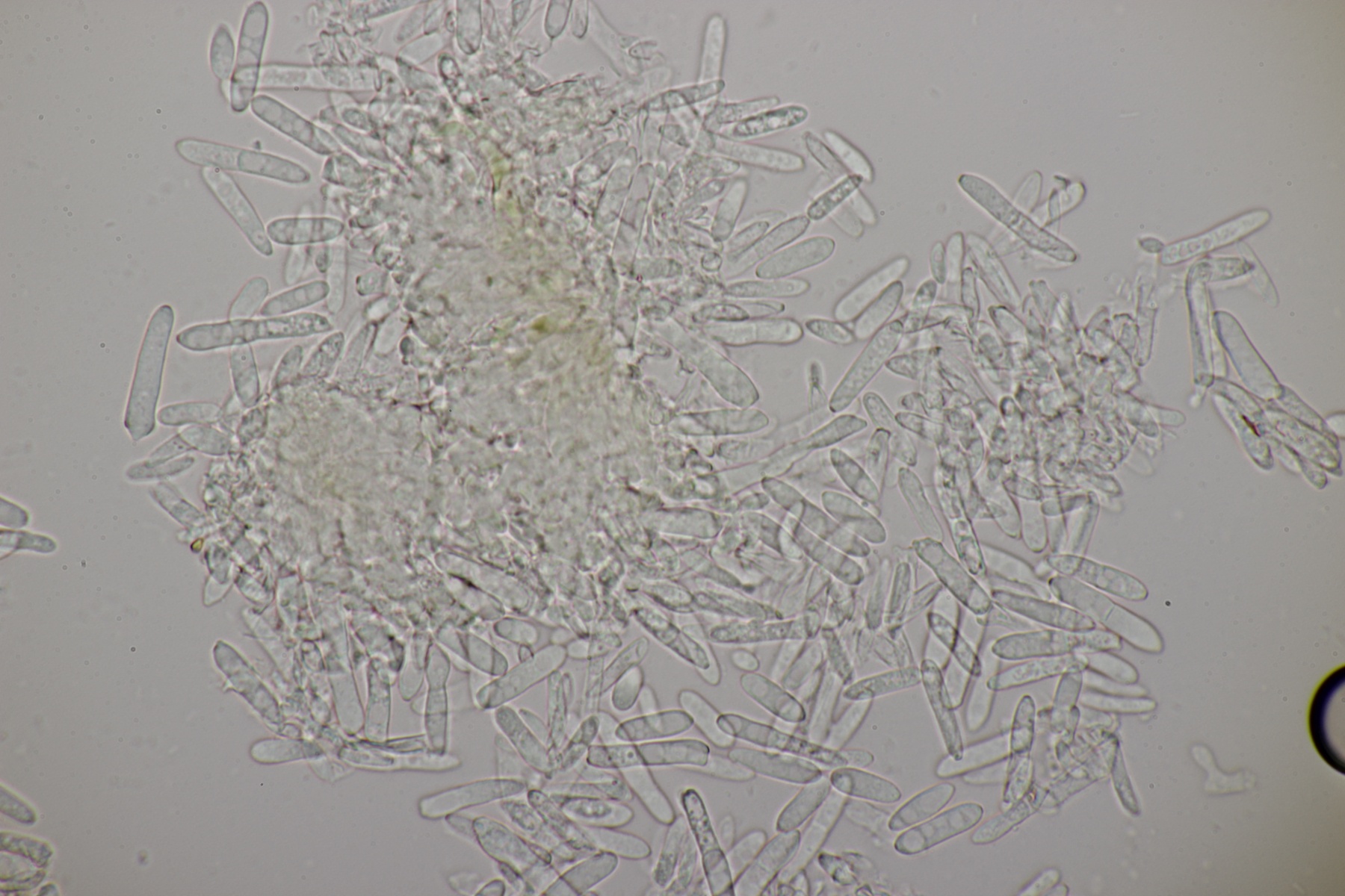 4. Eine Gallertträne ohne Schnallen, mit Sporen von (15.4+-0.6) µm x (6.2+-0.3) µm, Q=2.5+-0.1, (13.9-16.7) µm x (5.9-7.1) µm, Q=2.3-2.7, dreifach septiert und dünnwandig, an Laubholz. Die Fruchtköper sind leicht gestielt, so daß ich hier bei Dacrymyces capitatus lande. thorben96 Ist D. Begerow an Gallerttränen interessiert? Dann würde ich einen Beleg anfertigen