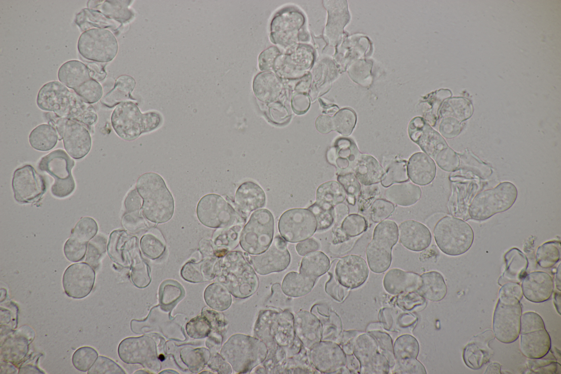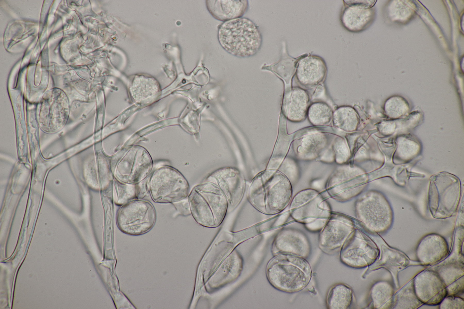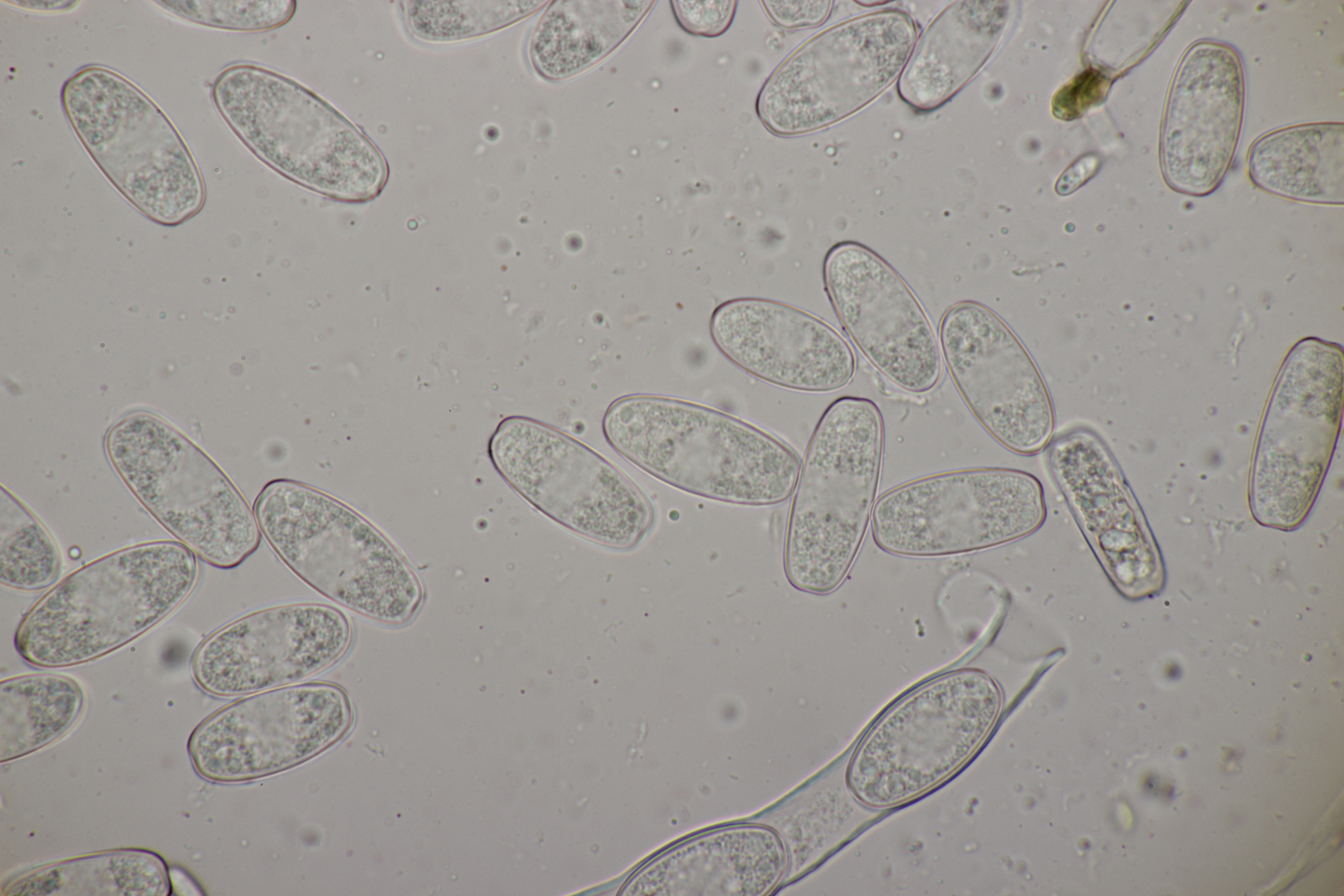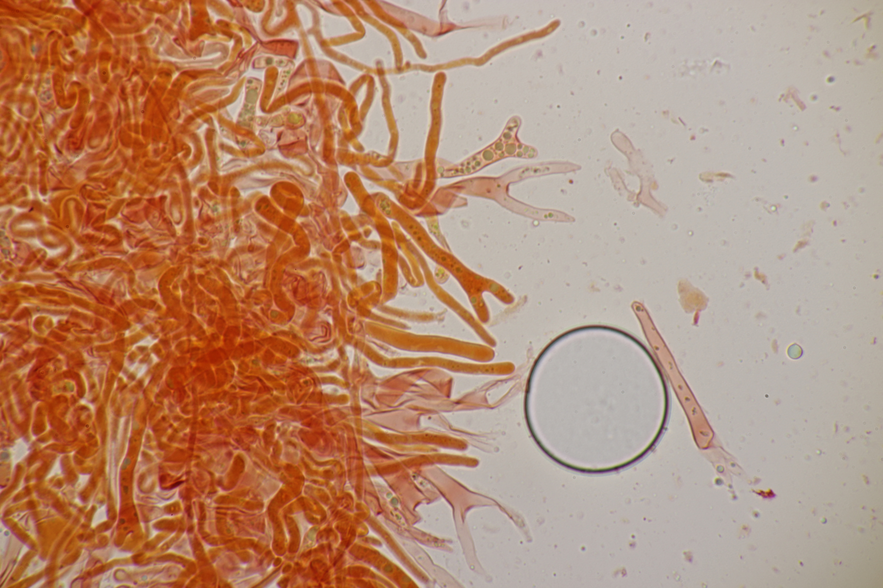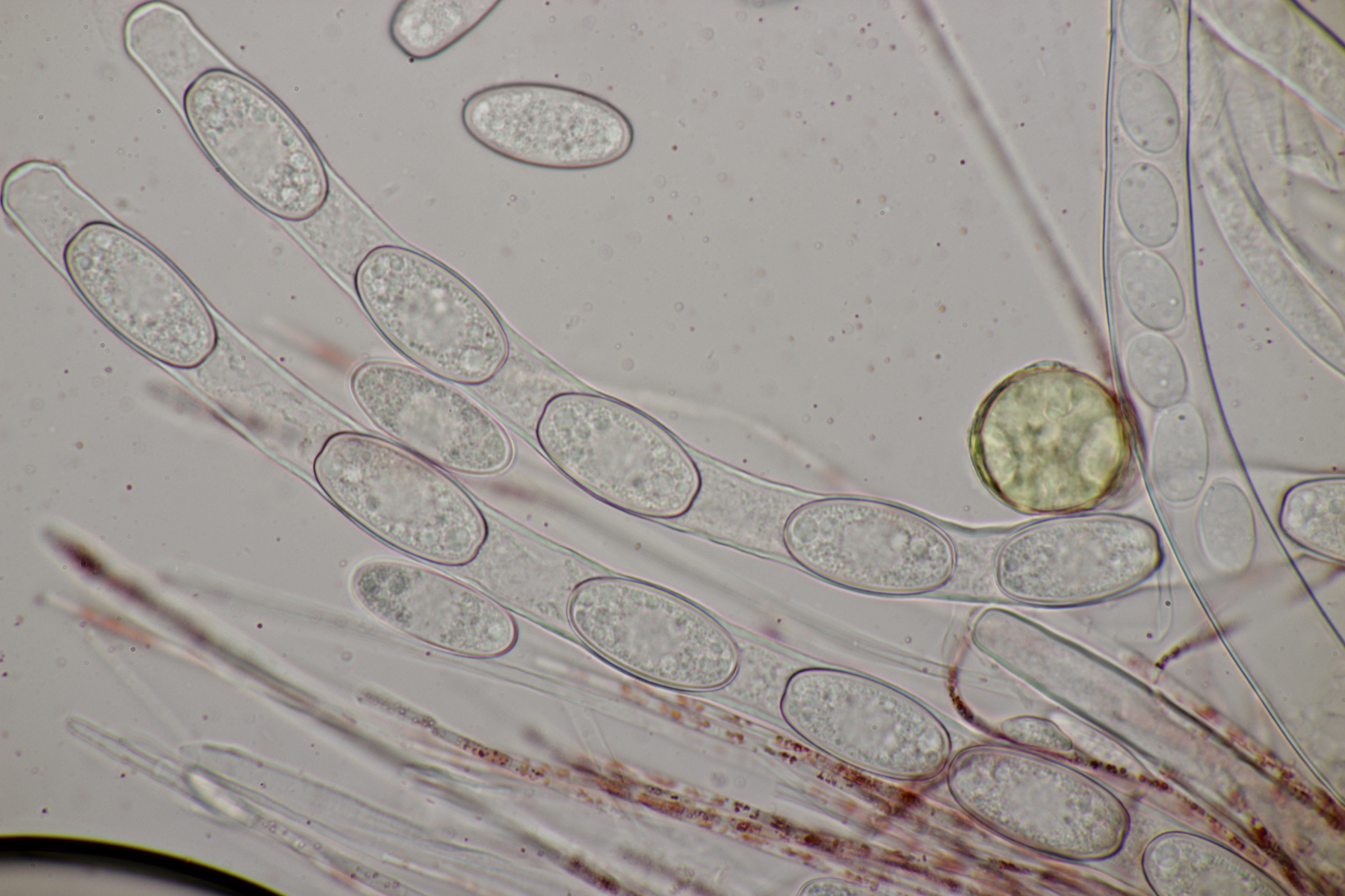 4. Eine Gallertträne ohne Schnallen, mit Sporen von (15.4+-0.6) µm x (6.2+-0.3) µm, Q=2.5+-0.1, (13.9-16.7) µm x (5.9-7.1) µm, Q=2.3-2.7, dreifach septiert und dünnwandig, an Laubholz. Die Fruchtköper sind leicht gestielt, so daß ich hier bei Dacrymyces capitatus lande. thorben96 Ist D. Begerow an Gallerttränen interessiert? Dann würde ich einen Beleg anfertigen