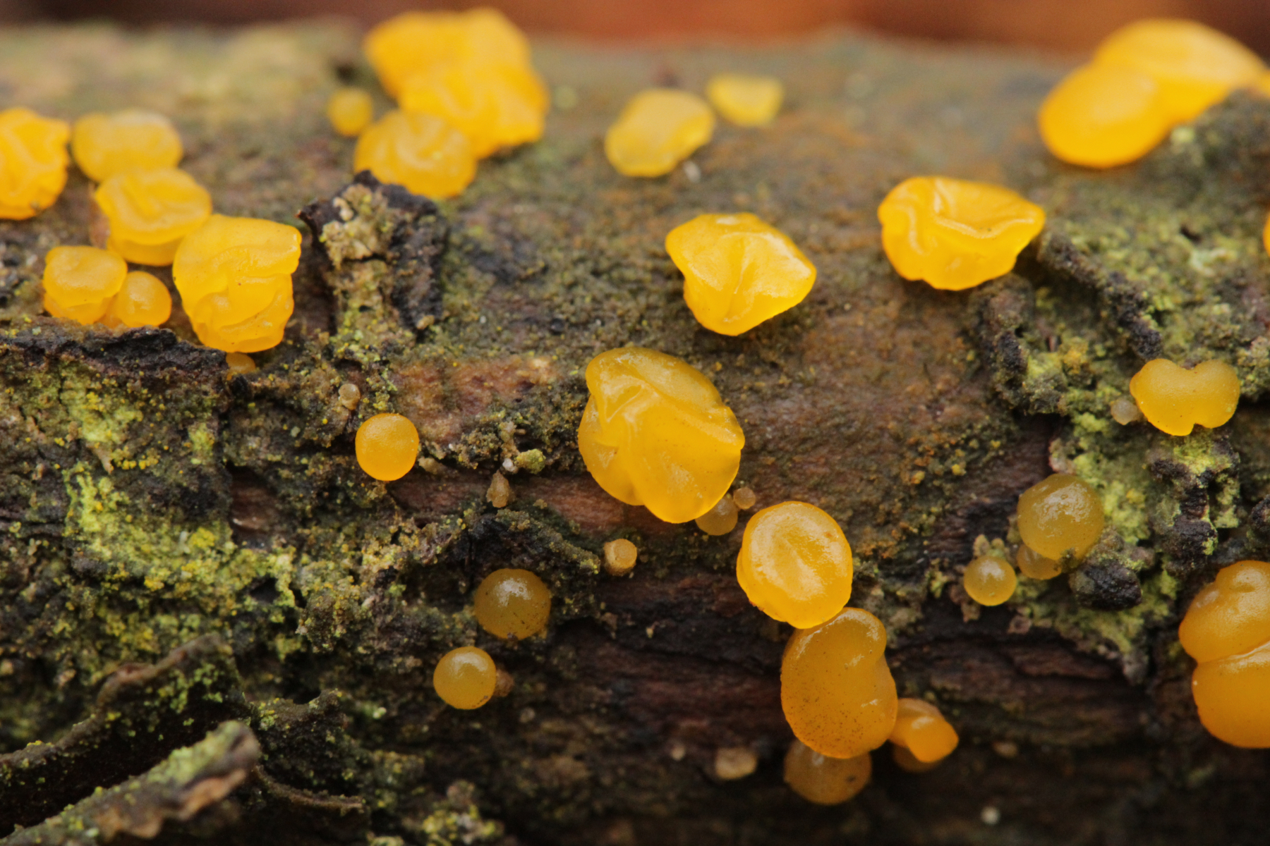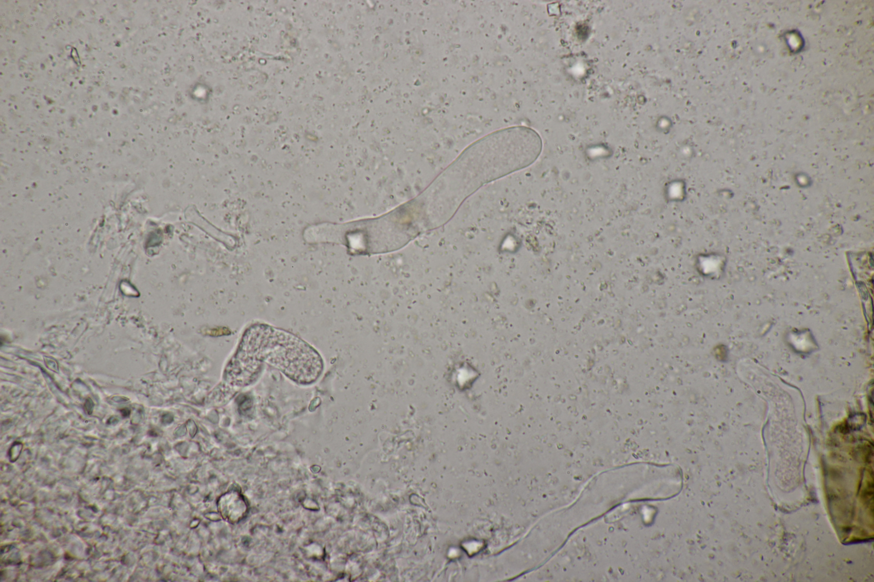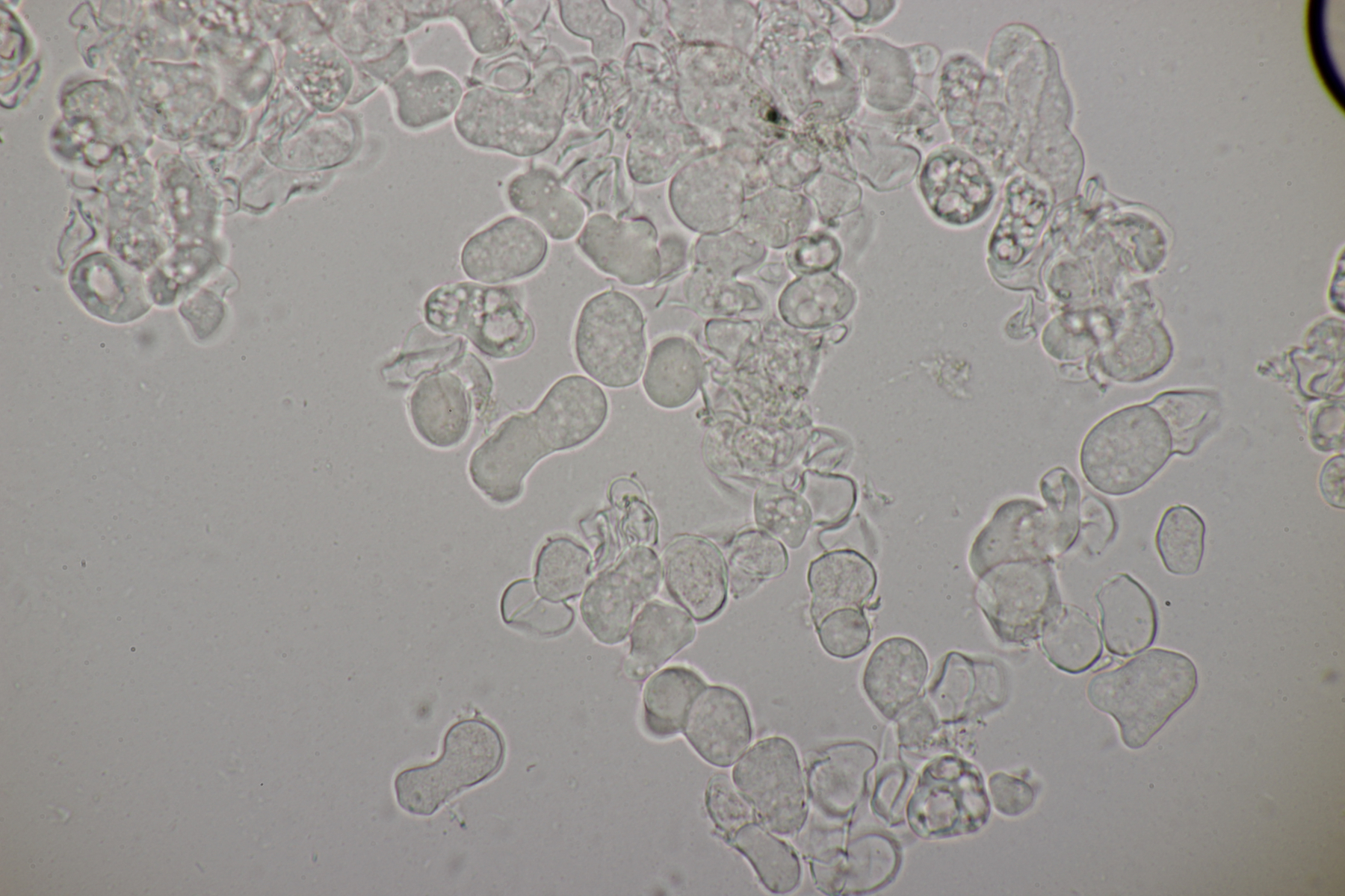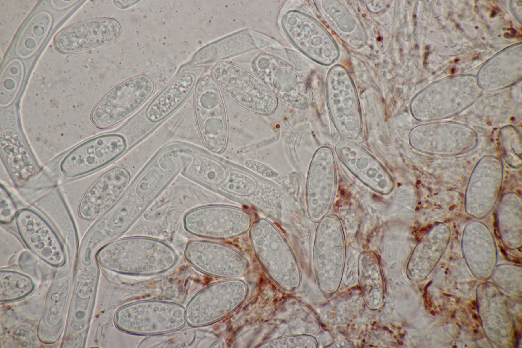 4. Eine Gallertträne ohne Schnallen, mit Sporen von (15.4+-0.6) µm x (6.2+-0.3) µm, Q=2.5+-0.1, (13.9-16.7) µm x (5.9-7.1) µm, Q=2.3-2.7, dreifach septiert und dünnwandig, an Laubholz. Die Fruchtköper sind leicht gestielt, so daß ich hier bei Dacrymyces capitatus lande. thorben96 Ist D. Begerow an Gallerttränen interessiert? Dann würde ich einen Beleg anfertigen