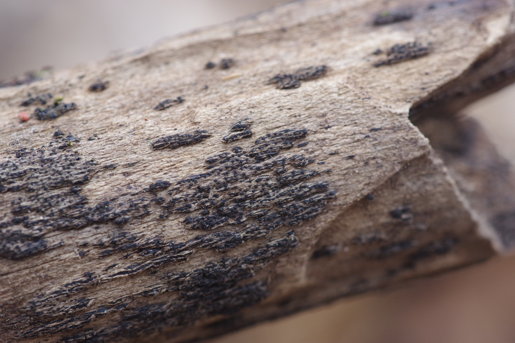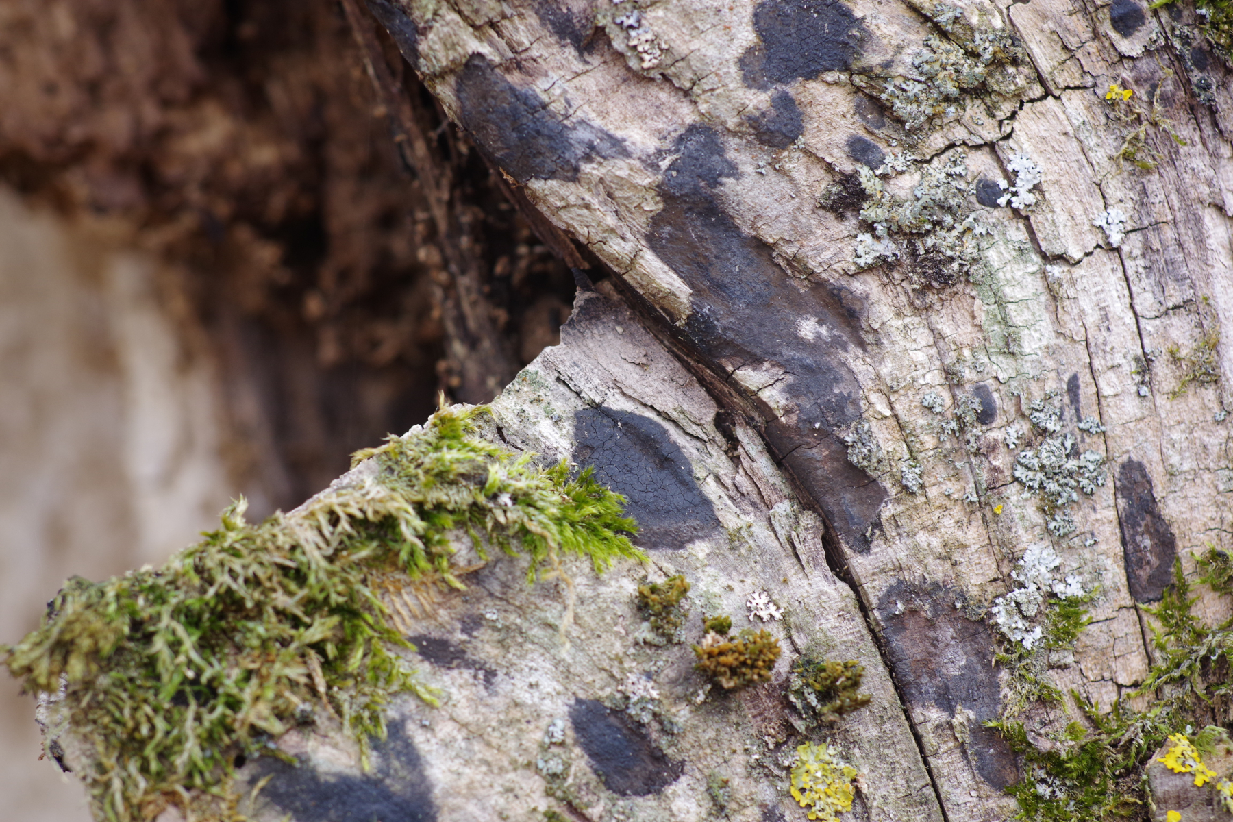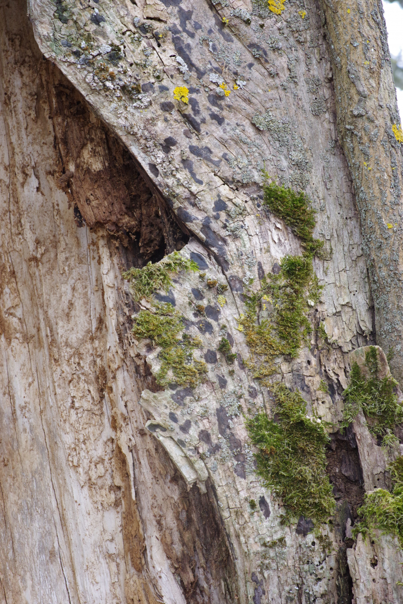 8) an stehendem, lebenden Ahorn, wo einer der Hauptäste abgespalten ist, irgendwas Kohliges
