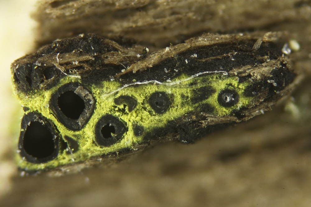 3) ein Porling, immer noch am gleichen Stöckchen, wohl Datronia