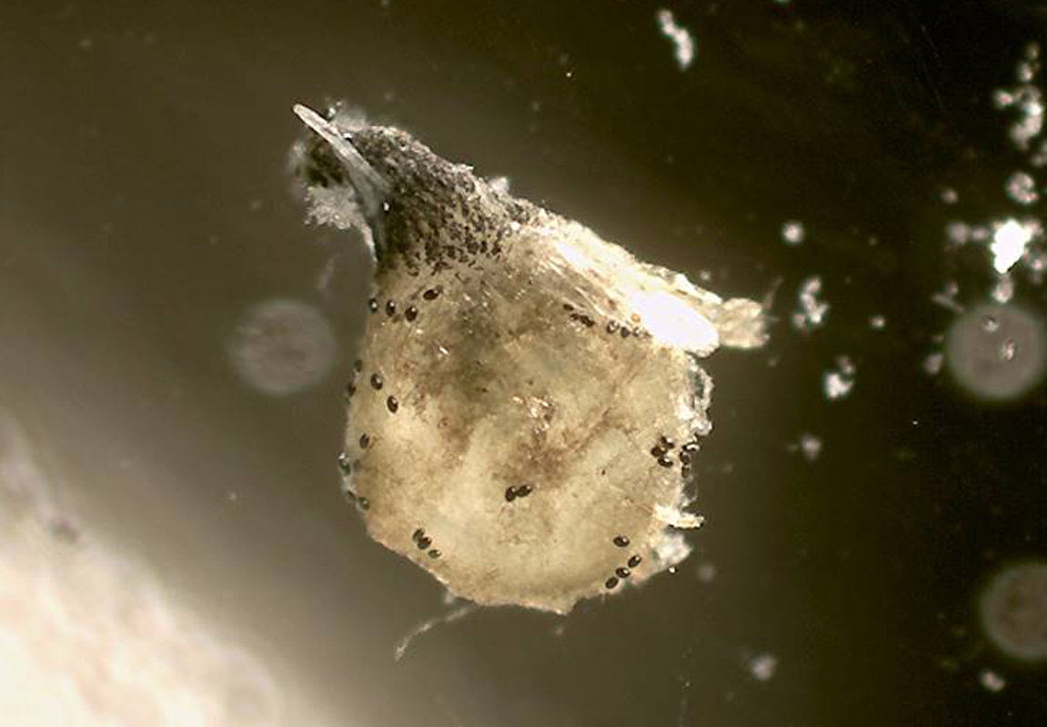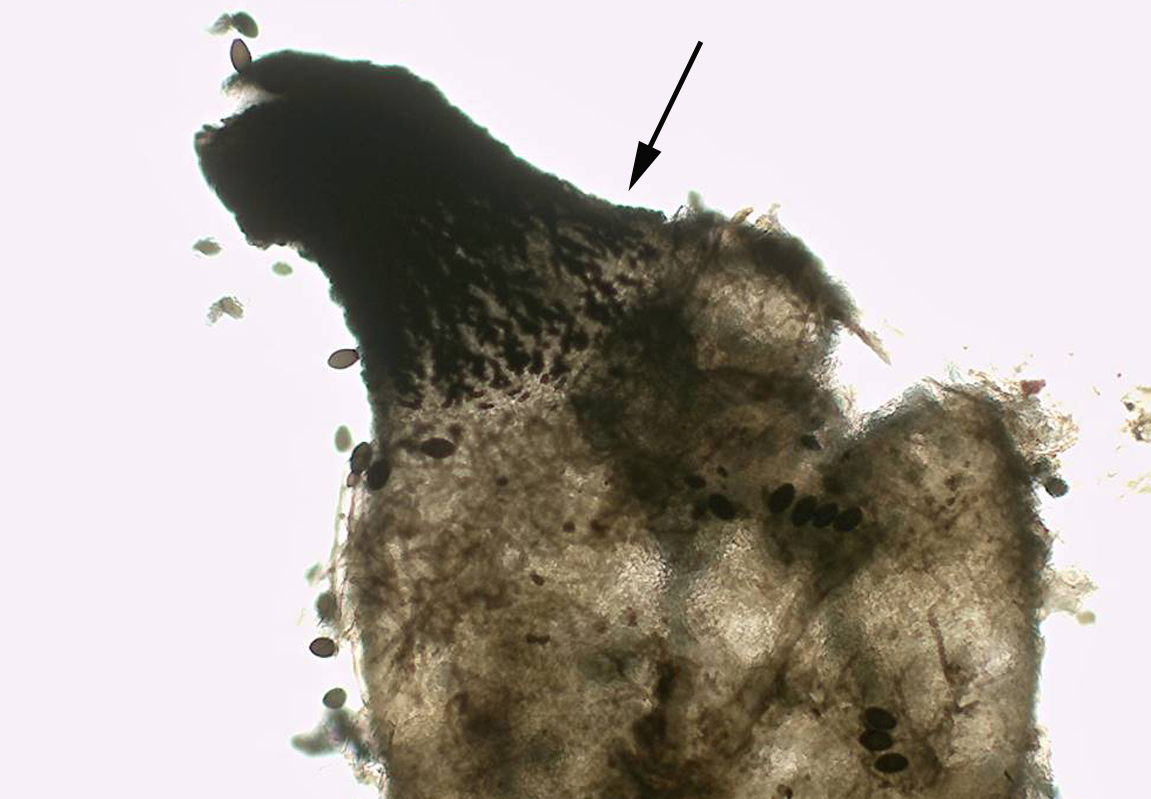 Das Perithecium ca. 900x700µ mit auffallenden Tuberkeln schlüsselt sich gut in die Sektion Rhypohilia, um dann bei P. pleiospora zu landen.