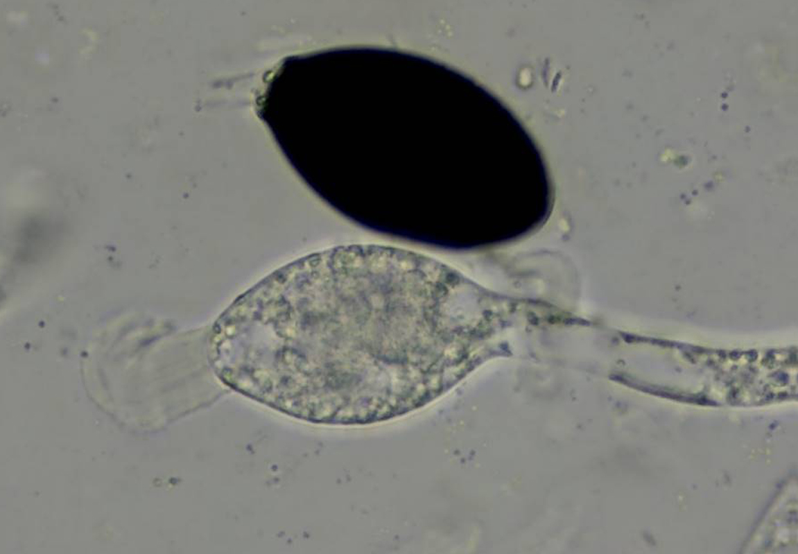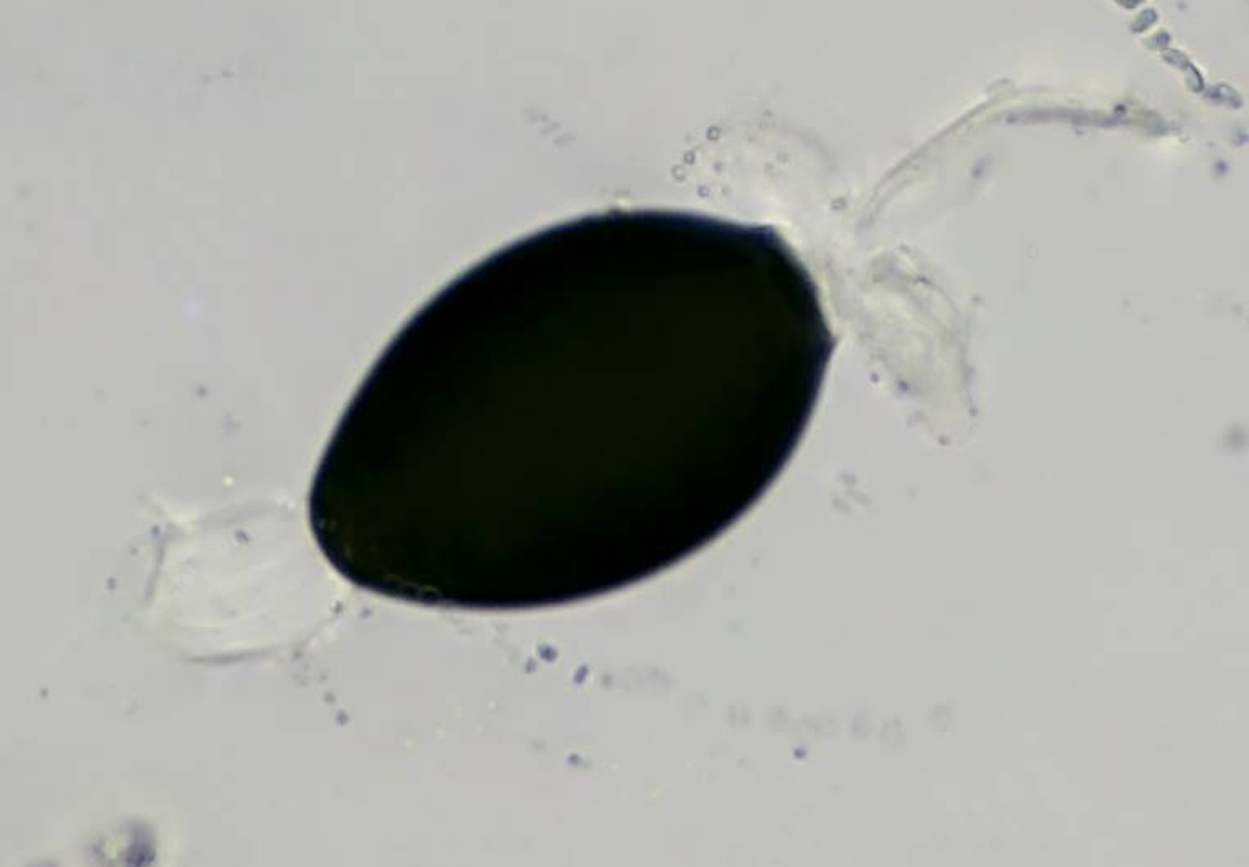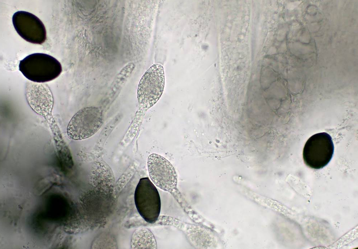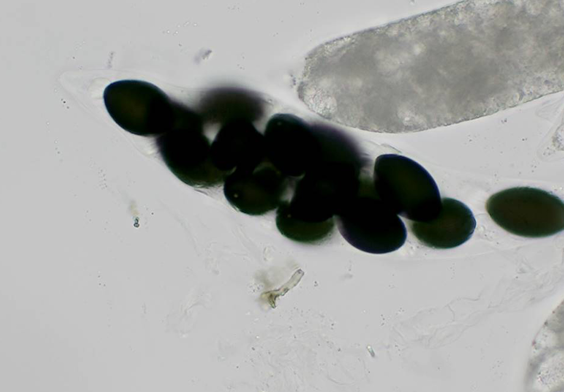 Die Sporen: 29,6-31,6-33,0 x 18,2-19,2-20,7 fand ich anfangs etwas klein für P. pleiospora, aber erst recht zu groß für P. myriaspora.