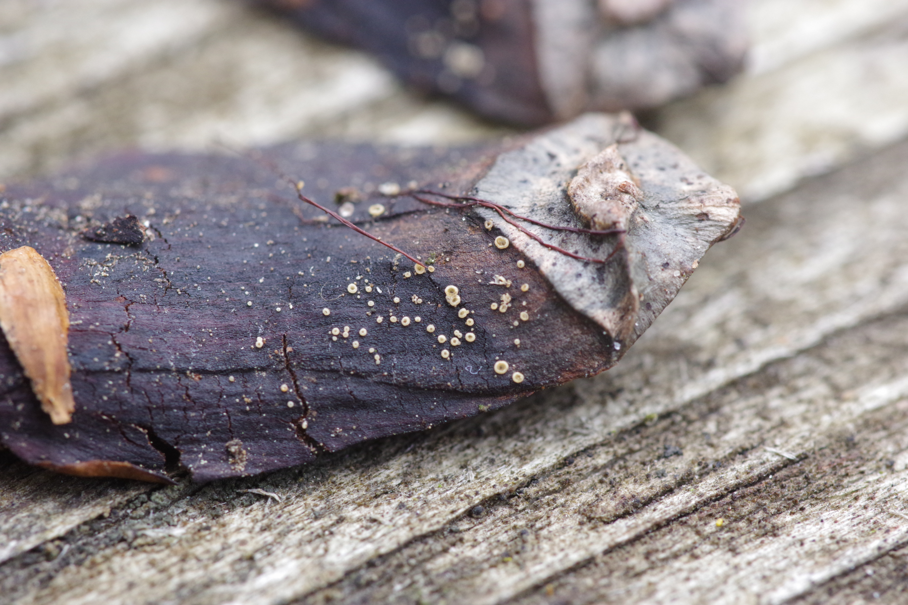 Könnte der Umstand, dass eine deutlich Verfärbung eingetreten ist (im Freien), für eine der Arten (für Calycina) sprechen? Die Probe ist jedenfalls eingetütet, vielleicht werden sich Thorben oder Björn das anschauen.