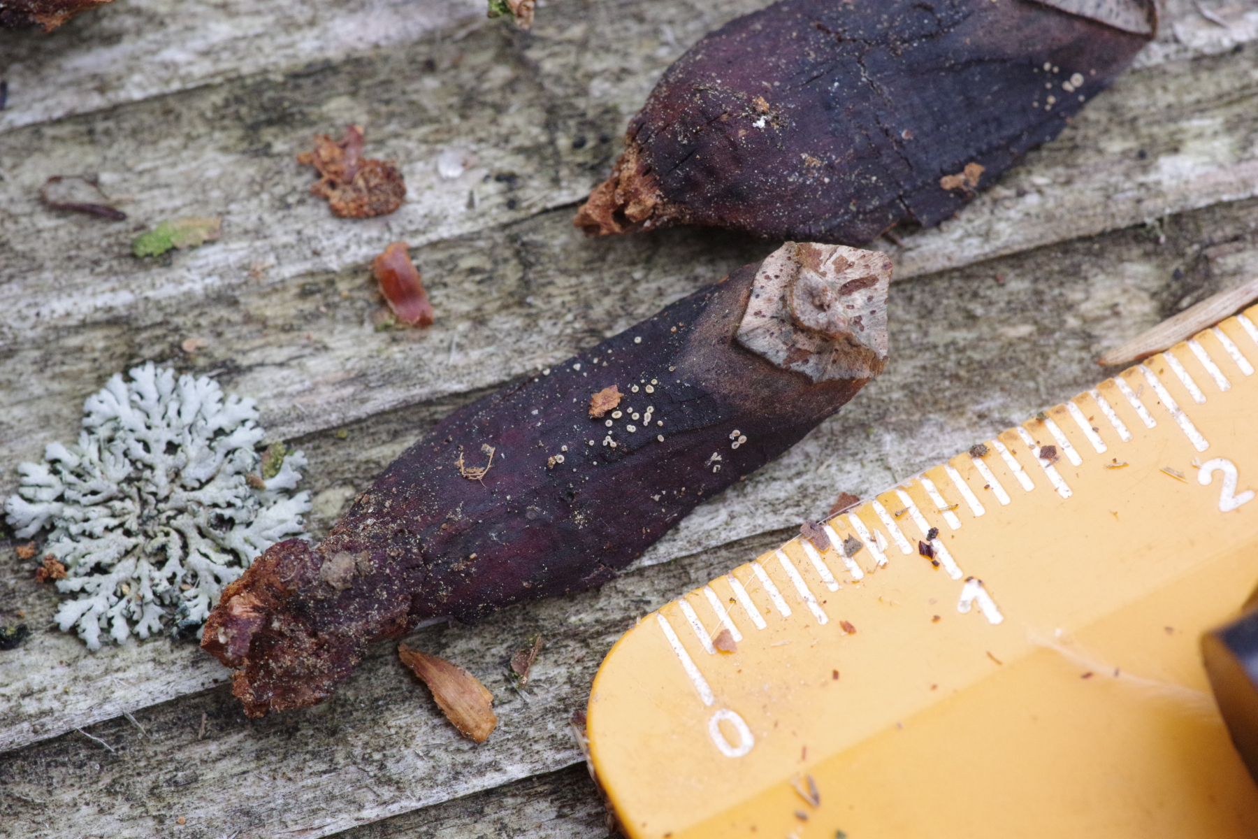 an einem Kieferzapfen habe ich gestern diese winzigen Becher gefunden.