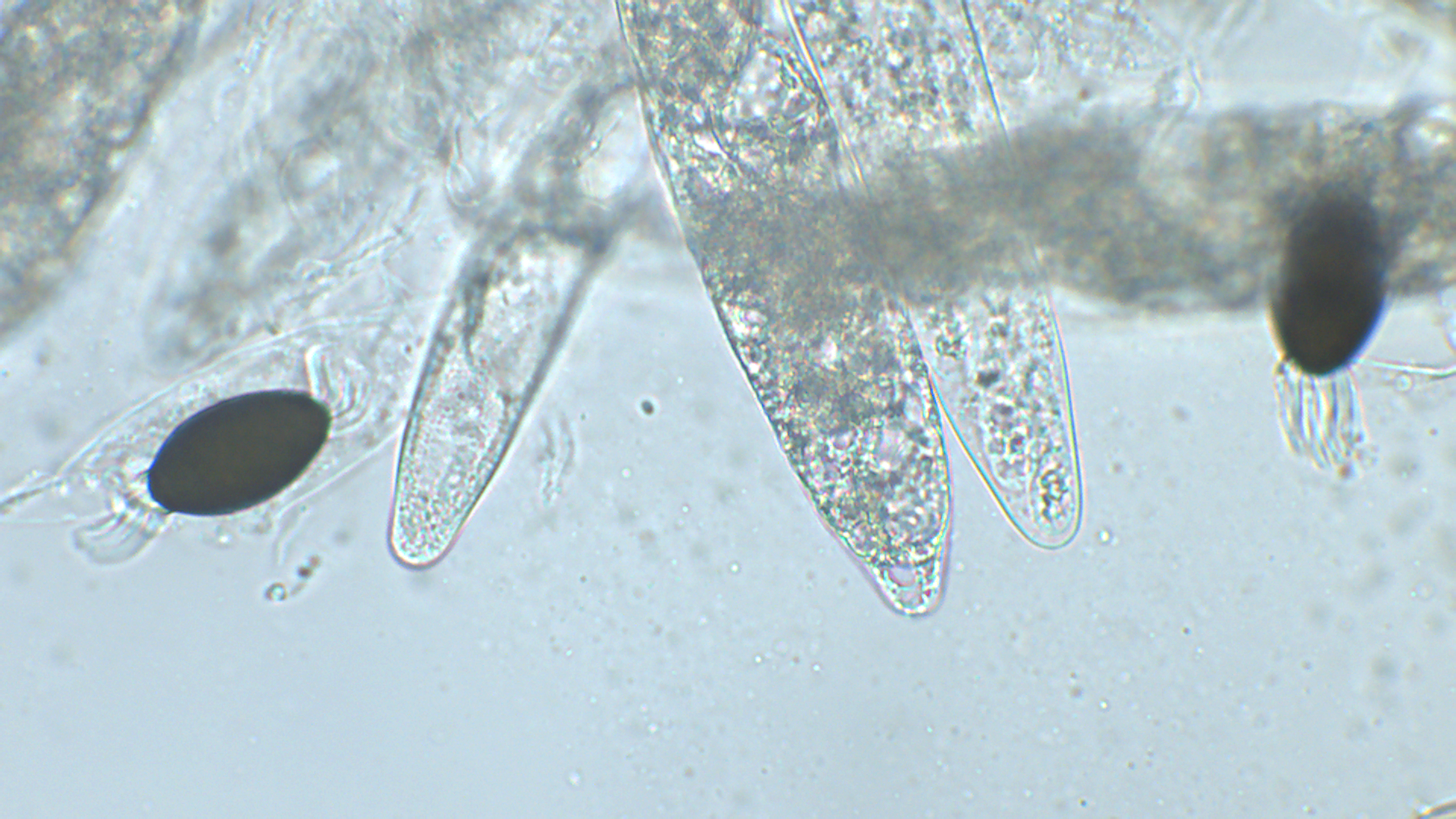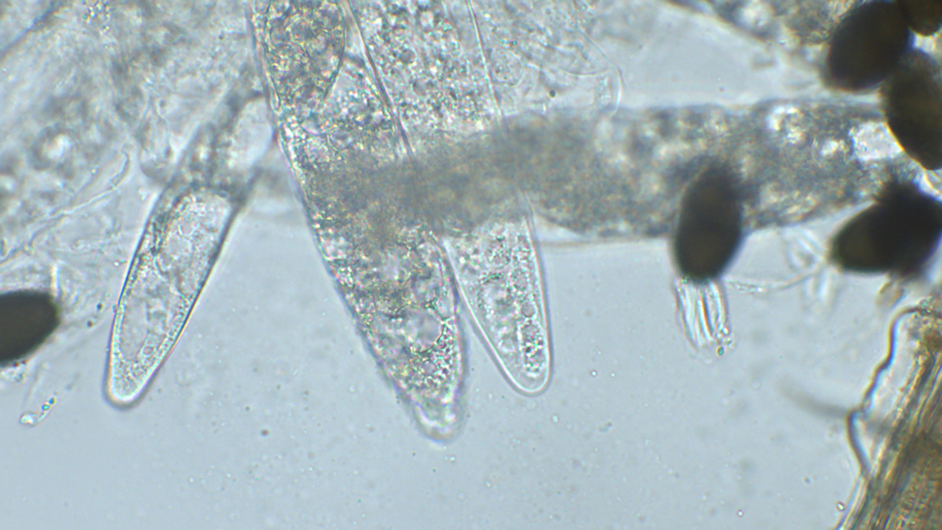Meine Sporen waren zwischen 31,5-34,5X16-18. Ich hatte etwas Schwierigkeiten, die Sporen pro Ascus zu sehen, aber mehr als 8 dürften es nicht sein.