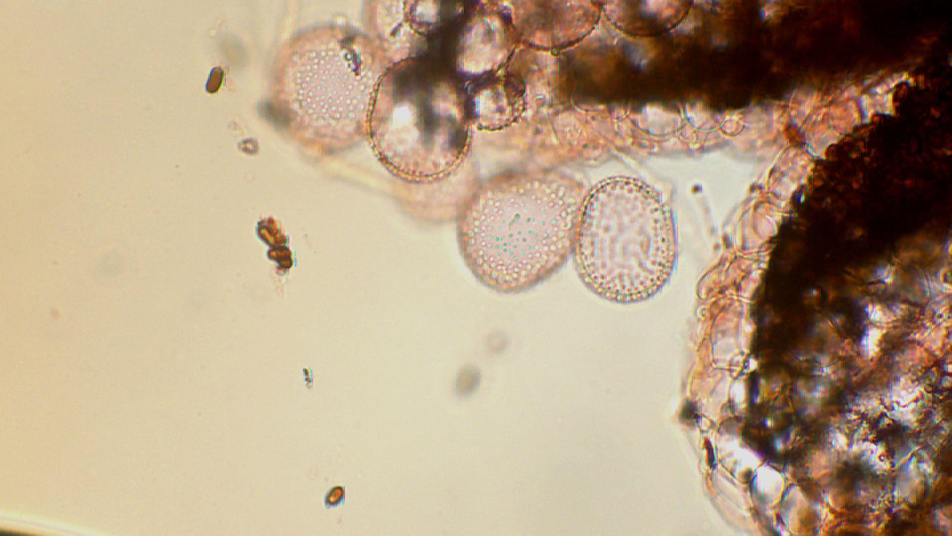 Am Ende sieht man noch ein Bild der Sporen, bei denen bei einigen (so scheint es mir) der Episcor sich ablöst.