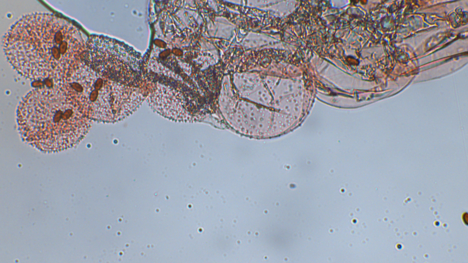 Die Sporen gingen von 5,8-7,5X3,1-3,8.