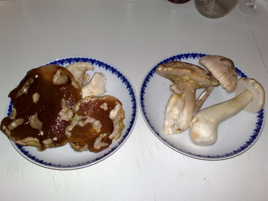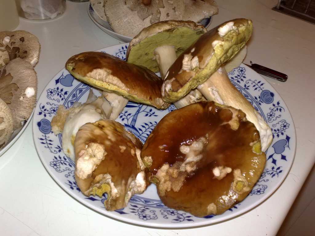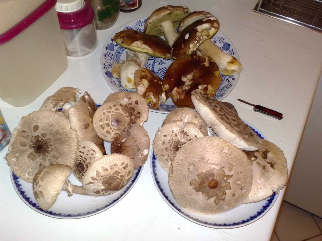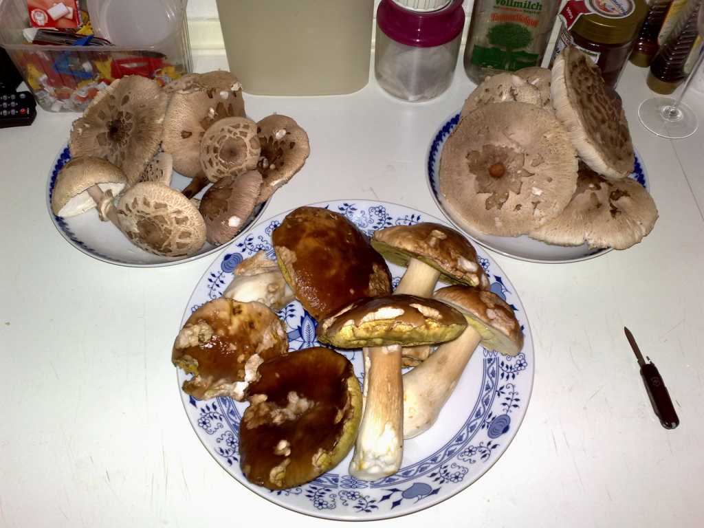 Ich habe sowas noch nie erlebt, auf einer Fläche von ca. 5 Meter * 3 Meter habe ich knapp 90 Parasolpilze gezählt, über die Hälfte davon mit einem Durchmesser von mindestens 20 Zentimeter und fast alle im perfekten Zustand, direkt daneben 4 grosse und völlig madenfreie Steinpilze. Der Hammer ist, dass sich dieses Pilzeldorado direkt an einer vielbegangenen Wegkreuzung befindet und sicher von vielen Menschen bemerkt worden sein muss.