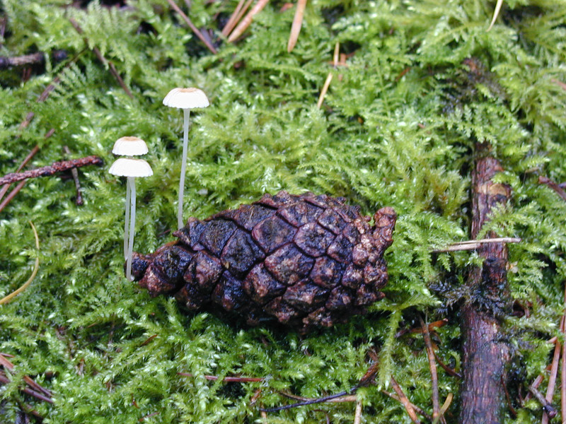 Mit den herablaufenden Lamellen könnt ich mir Mycena speirea vorstellen, oder, wenn er am Stiel schön schleimig war, Roridomyces rorida. Deutlichen Schleim kann ich aber nicht erkennen.