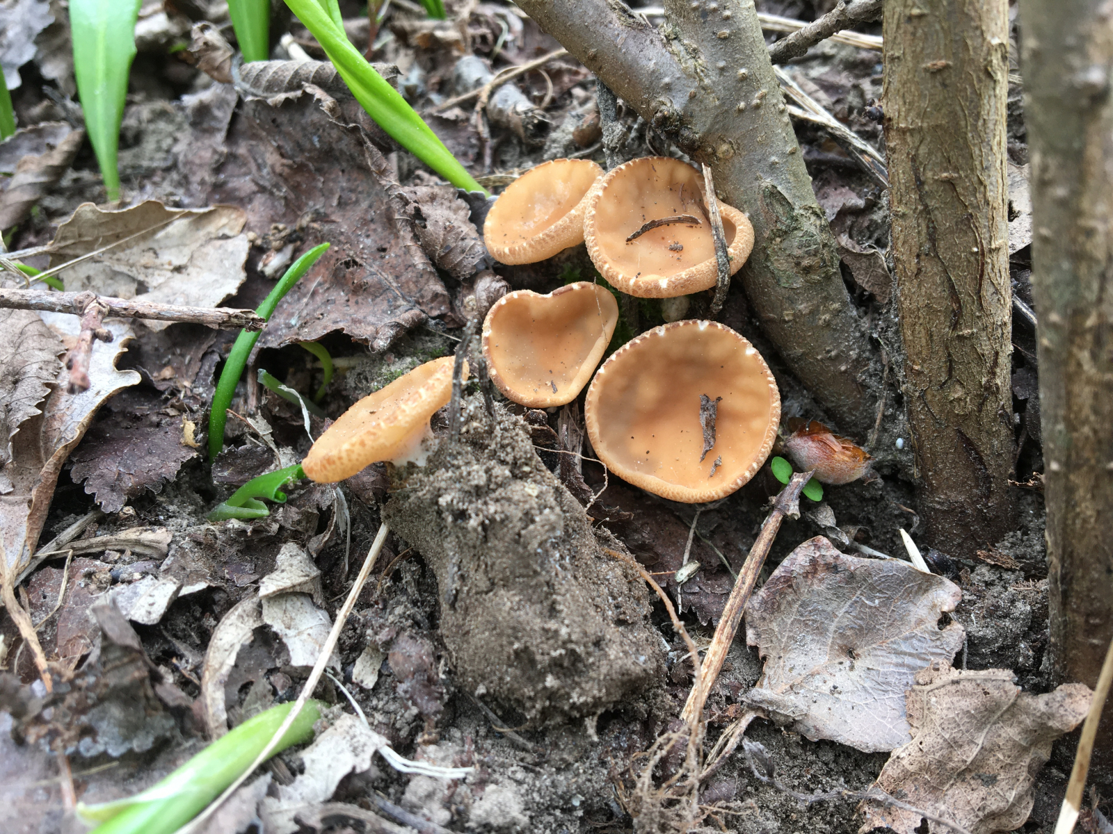 heute habe ich in der Lobau folgende Becherlinge gefunden, die ich so gar nicht zuordnen kann. Die größeren hatten einen Durchmesser von ca. 3 cm. Sie sind deutlich gestielt und hatten alle in der Erde so ein knubbeliges etwas Ding, das von Mycelfäden durchzogen war. Mikroskopie folgt demnächst. Kann mir hier jemand bei der Bestimmung helfen?