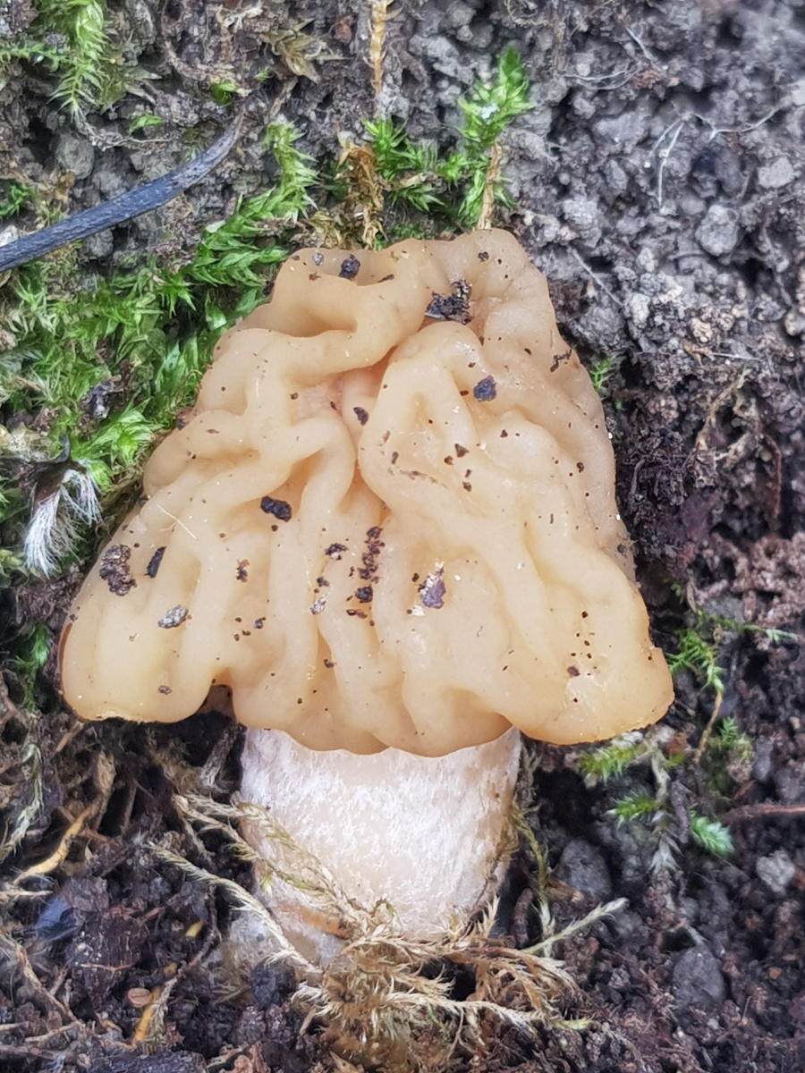 für mich sieht das sehr nach Verpa bohemica aus, die wächst gerne bei Pappeln und hat grad Saison.