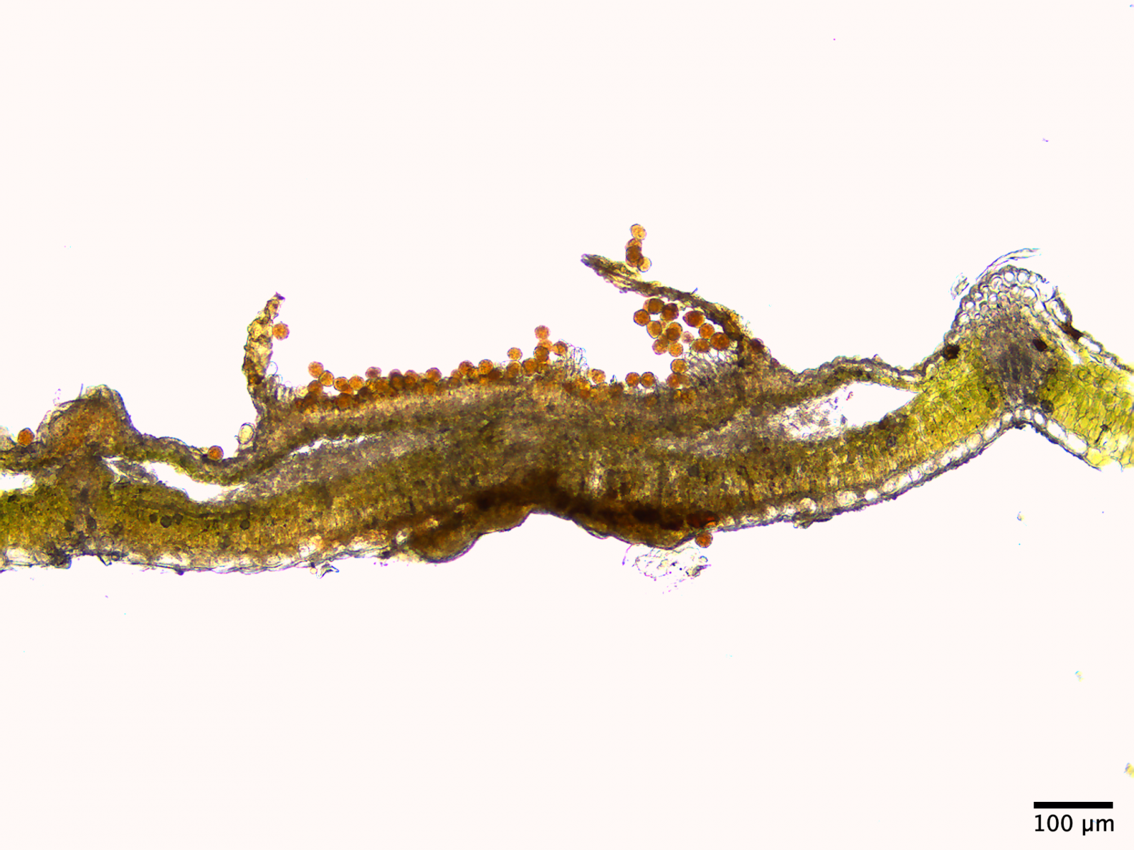 Querschnitt durch ein Blatt mit einem Sorus vom Caeoma-Typ