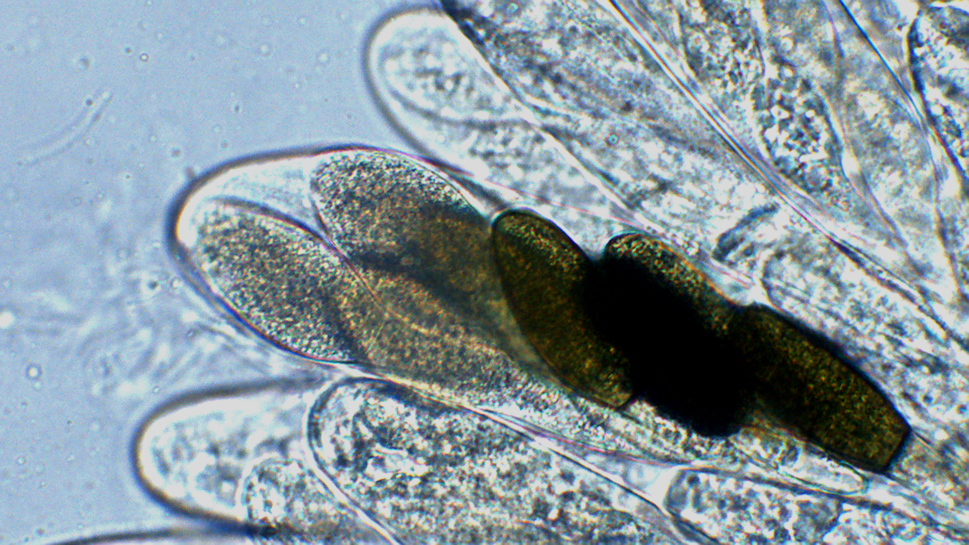 Hatte bei meinem ersten Podospora-Fund aufgrund der Sporengröße alles auf Podospora pleiospora hingedeutet, habe ich nun ziemlich sicher Podospora decipiens gefunden. Für mich scheint alles zu passen: Sporengröße (34,5-38,5X17-21), Pedicel, Caudae und Tuberkel.