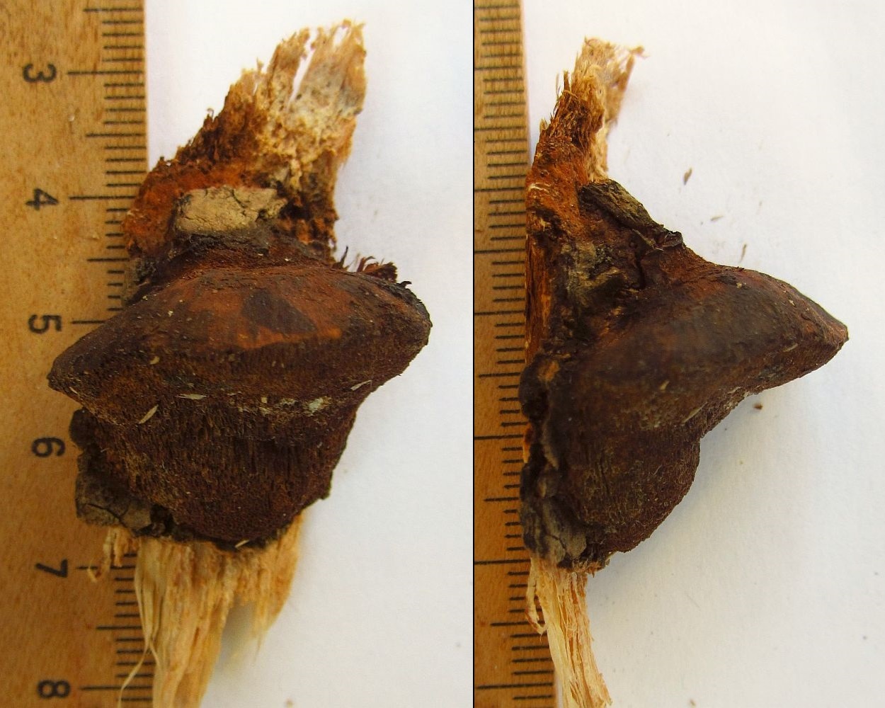 von den zu Pablo geschickten Pilzen ist Inonotus rheadas einer der interessanteren. Da der im Forum zwar mehrfach erwähnt, aber noch nie gezeigt wurde, ein paar Bilder (von heute). Falls Pablo ( Beorn) mit Mikrobildern ergänzt, wäre das fast ein vollwertiges Portrait (bzw. die hier eingestellten Bilder können dazu verwendet werden), abgesehen von jungen Exemplaren, die ich vermutlich später ergänzen kann, der Fundort ist 300 m entfernt.