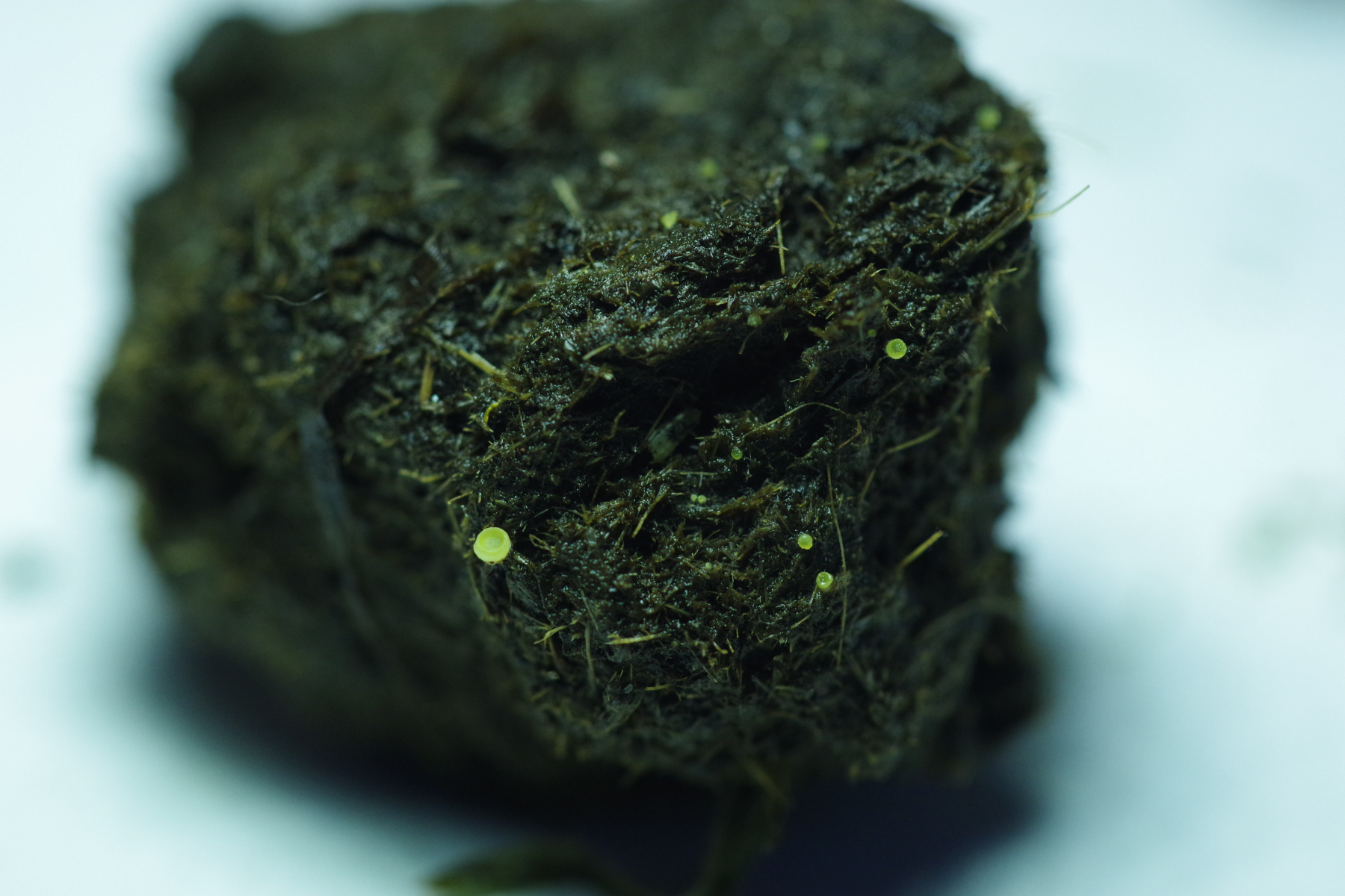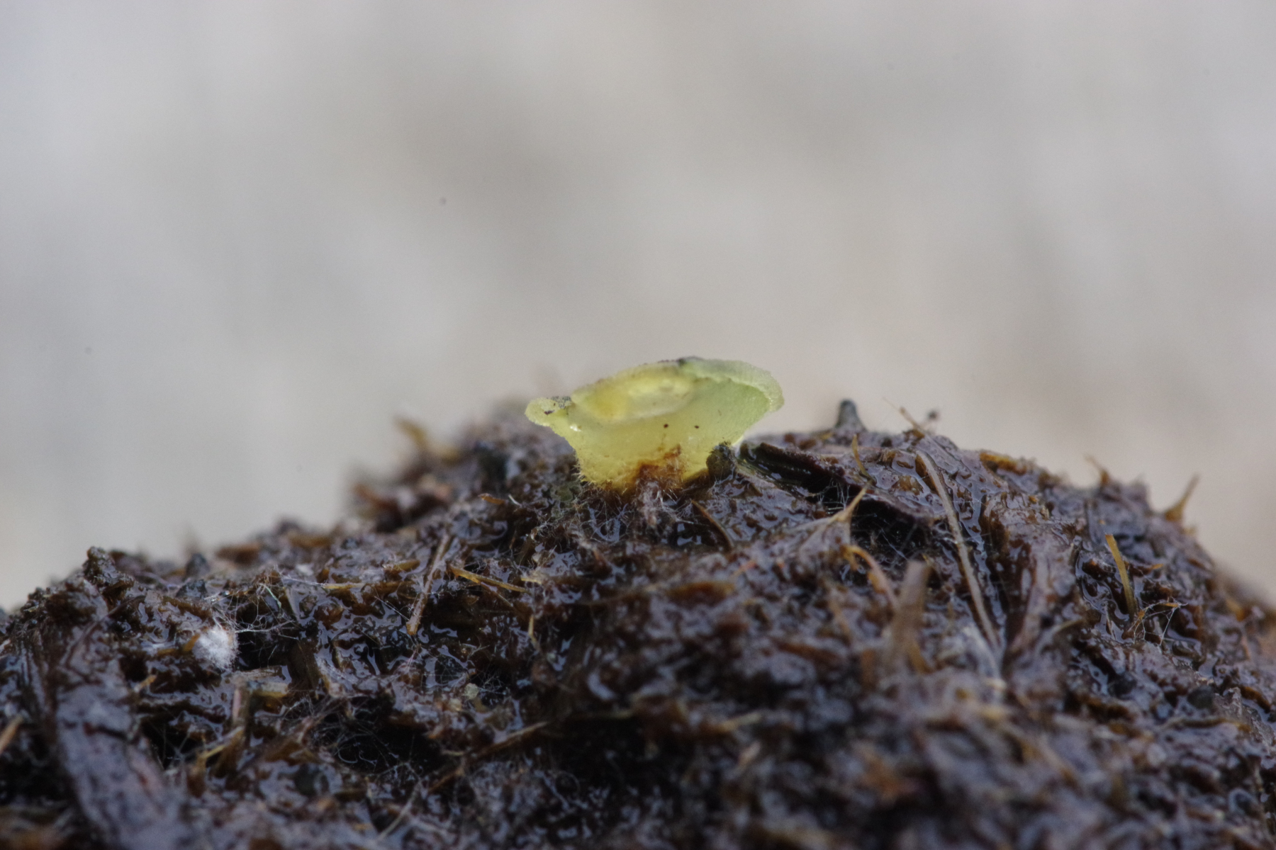 auf Kuh (das Gros der Probe geht demnächst an einen mikroskopierenden Mitforisten) habe ich diesen fast schon makroskopischen Becher gefunden. Ja ich weiß, da geht ohne Mikroskopie nichts, aber trotzdem würde ich den in der Gattung Ascobolus platzieren und da aufgrund des Substrats den Arbeitstitel A. furfuracea.