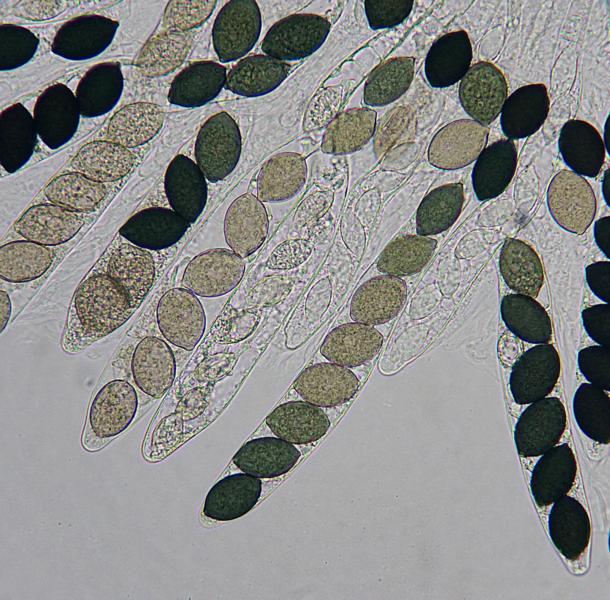 auf Mauslosung fand ich die Tage einige Fruchtkörper von Schizothecium glutinans. Da andere Schizothecium Arten oft fälschlicherweise als S. glutinans bestimmt werden, möchte ich mal ein paar Bilder vom echten S. glutinans einstellen. Die Sporenmaße schwanken von 30 - 34 x 20 - 22 µ. Der Quozient der Sporen liegt hier bei 1,5 - 1,6.