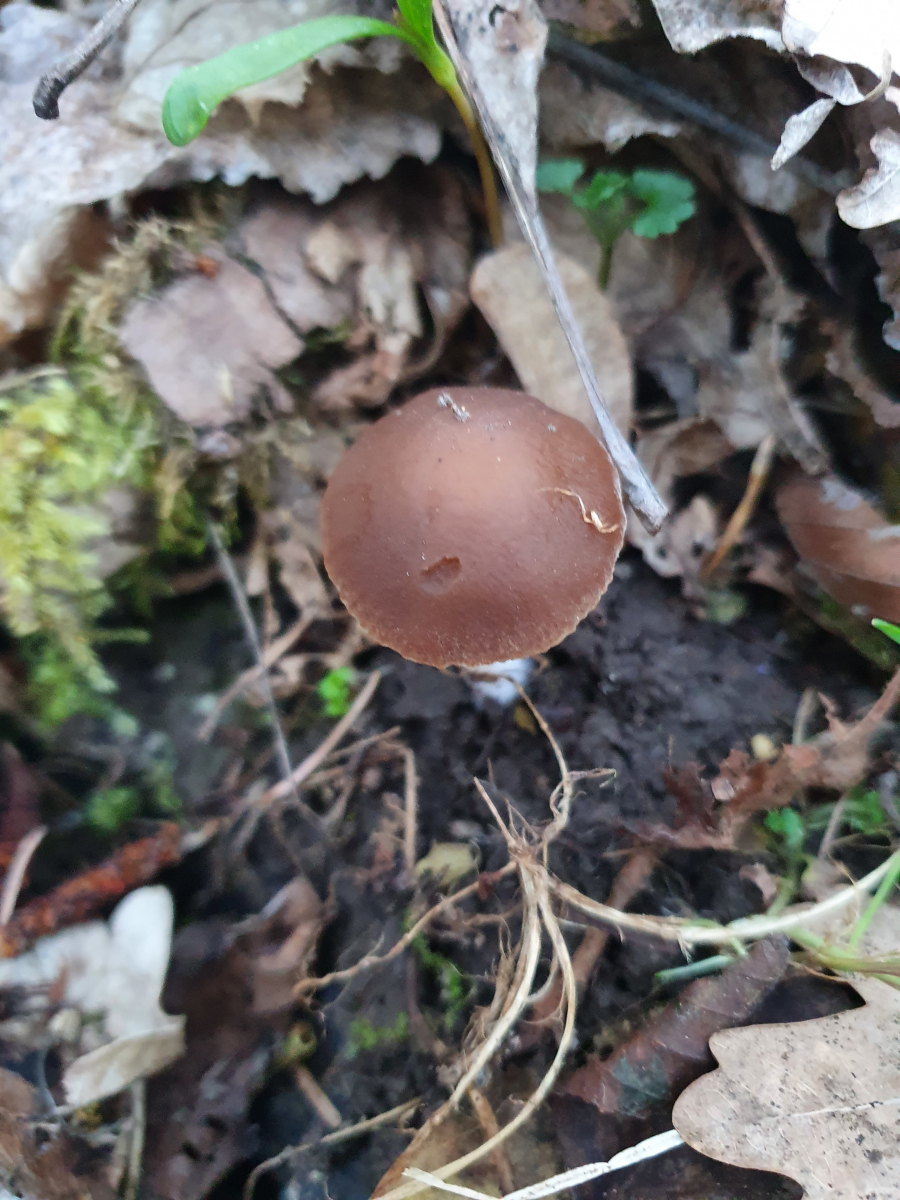 So langsam zeigen sich Pilze mit Stiel und Hut. Folgender sollte P. niveobadia sein. Gefunden an einem Bachlauf unter Erle, Esche und vereinzelt Buche, teresstrisch auf feuchter Erde. Einzeln. Hut kräftig Kastanienbraun mit deutlichem Velum. Rand gelb. Hygrophan. Keine Riefung.